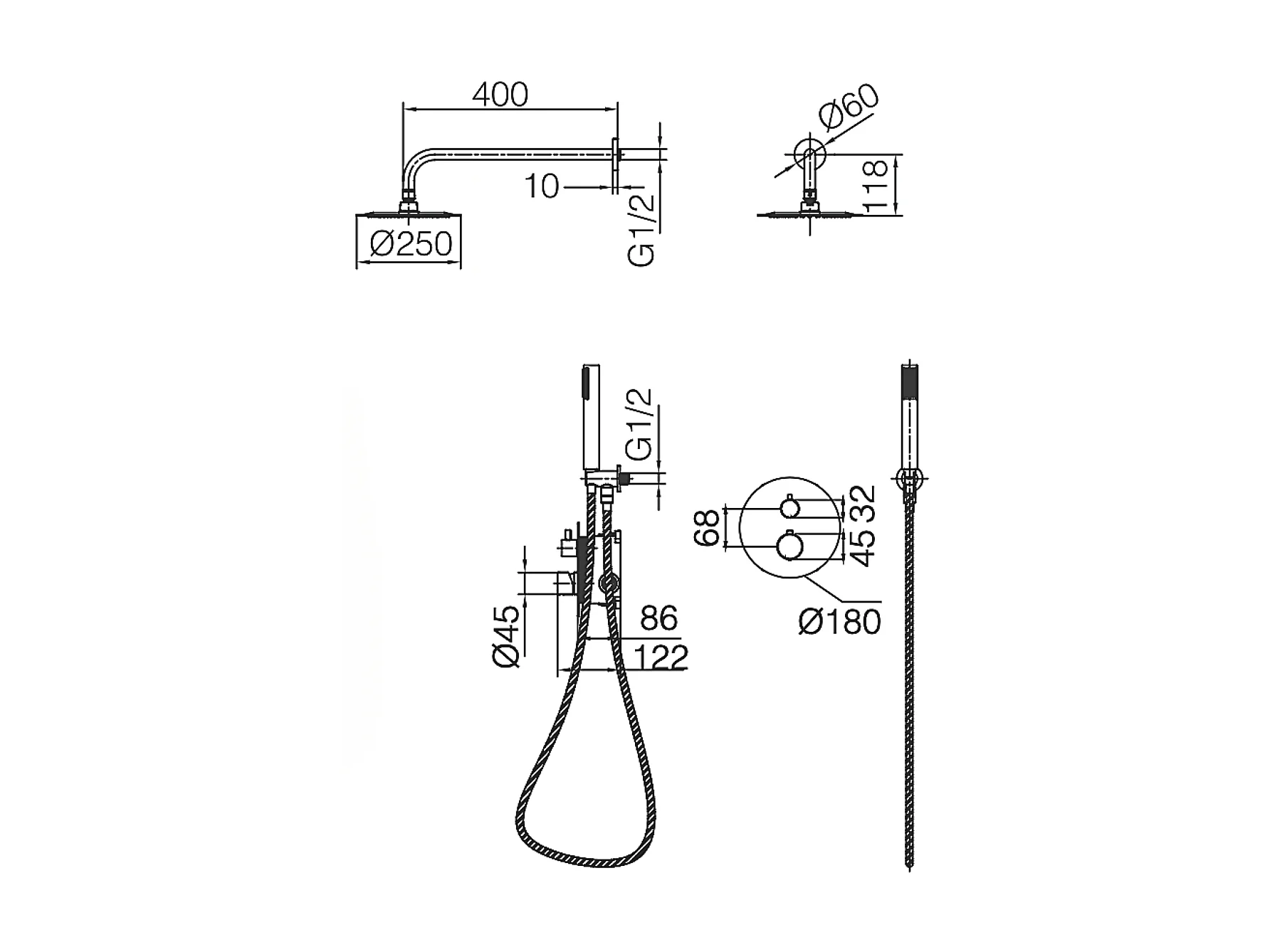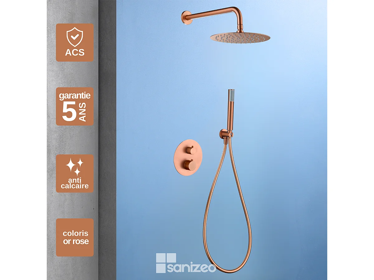 Colonne de Douche Encastrée Thermostatique Anti-Calcaire Or Rose Cuivré GENOVA GTG053/ORC