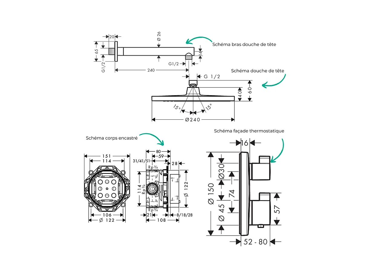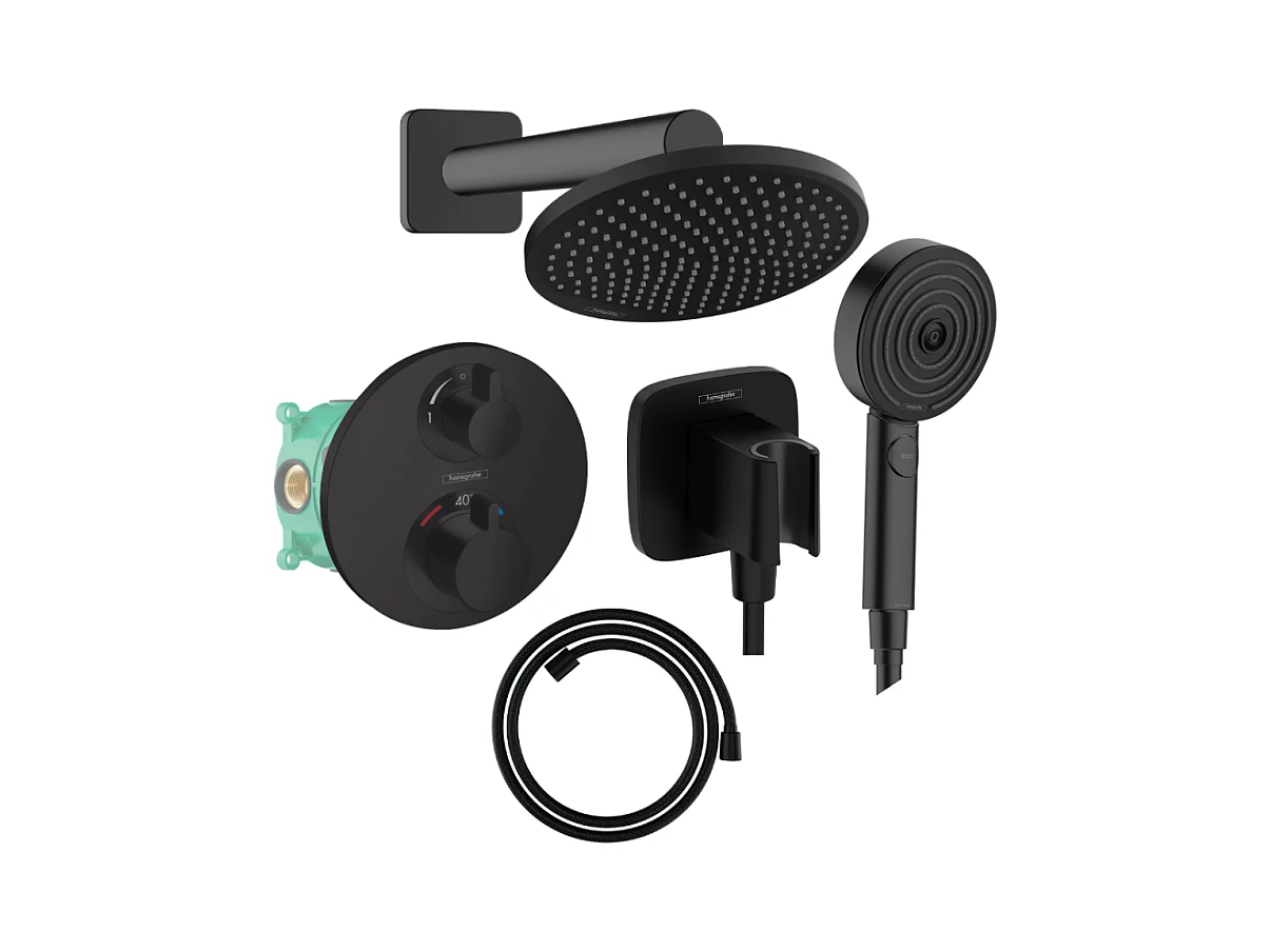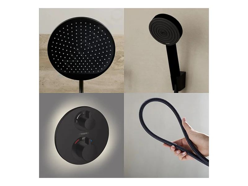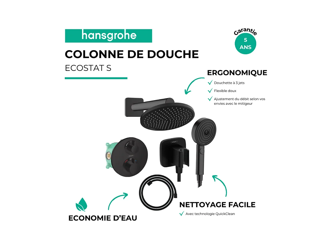Colonne de douche thermostatique HANSGROHE Ecostat S Douche de tête Crometta S Flexible Designflex Douchette Pulsify noir mat
