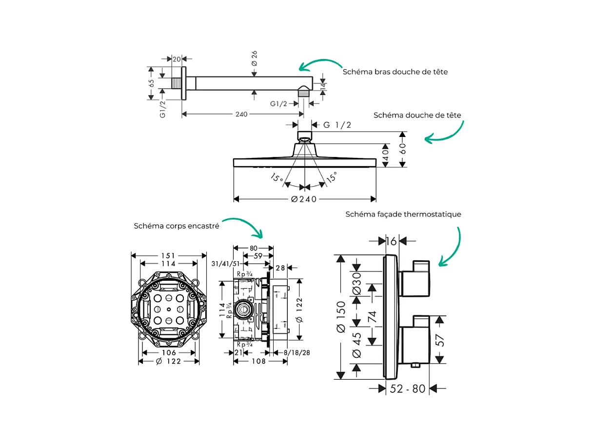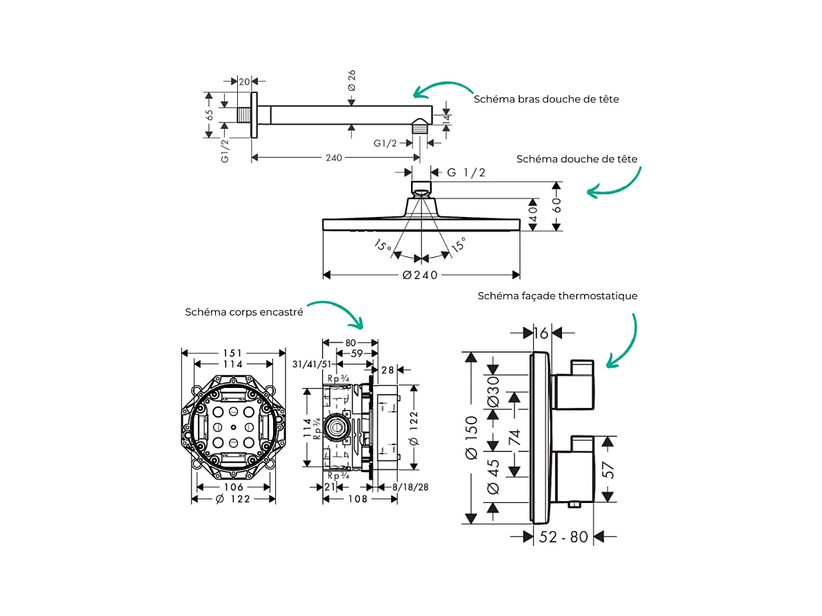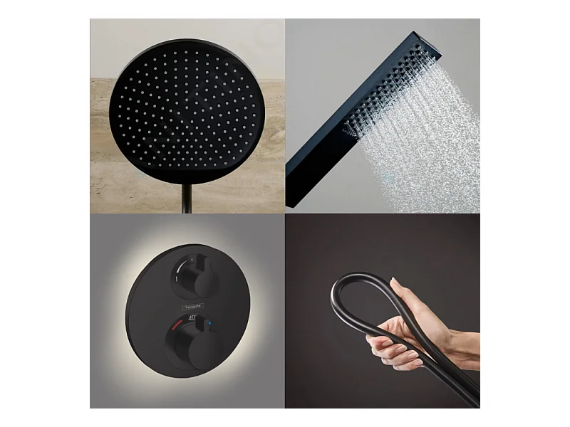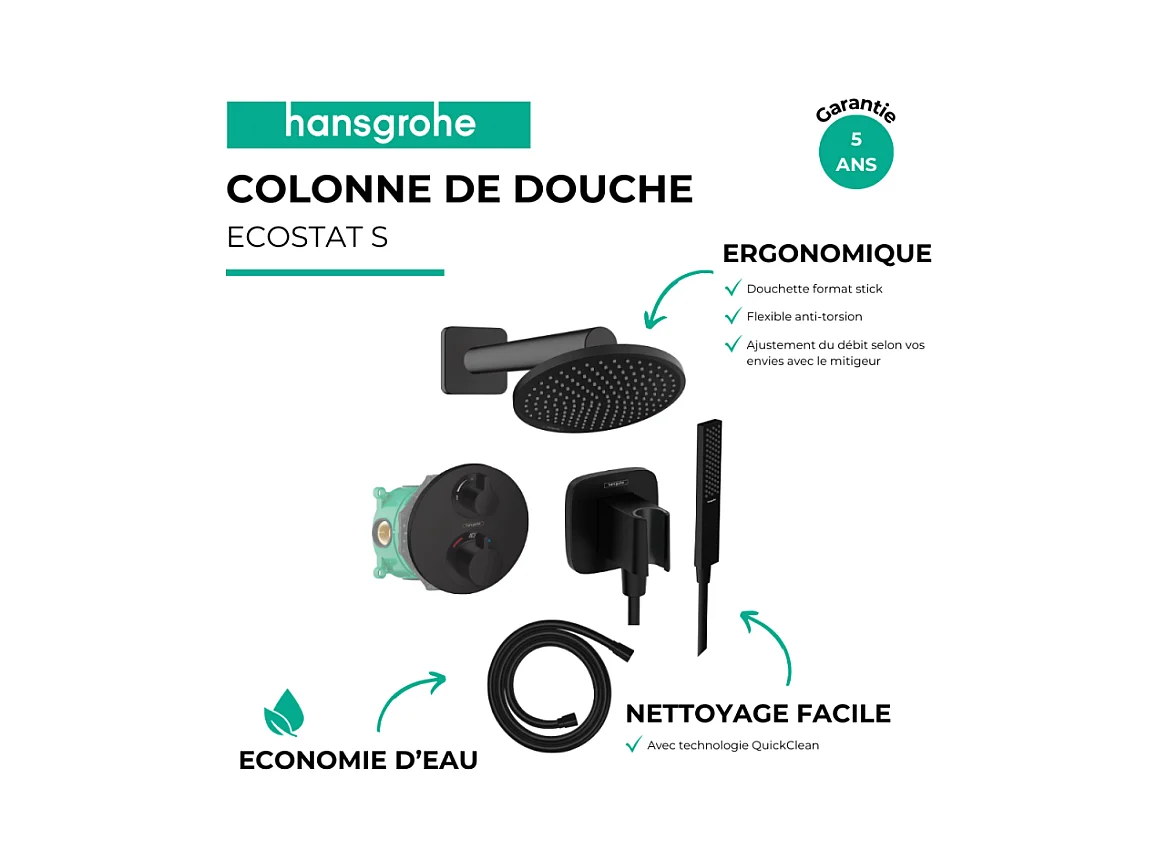 Colonne de douche thermostatique HANSGROHE Ecostat S Douche de tête Crometta S Flexible Isiflex Douchette Pulsify E noir mat