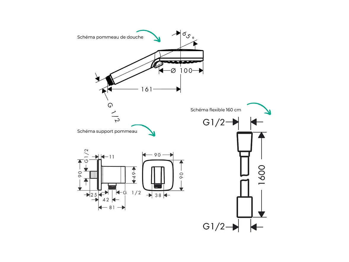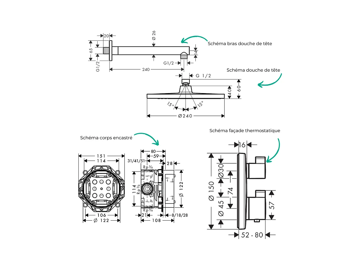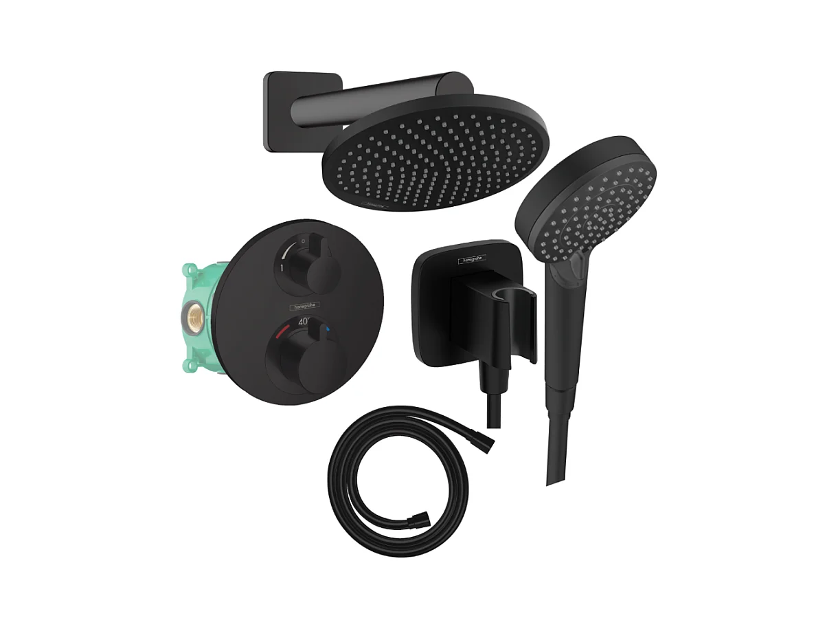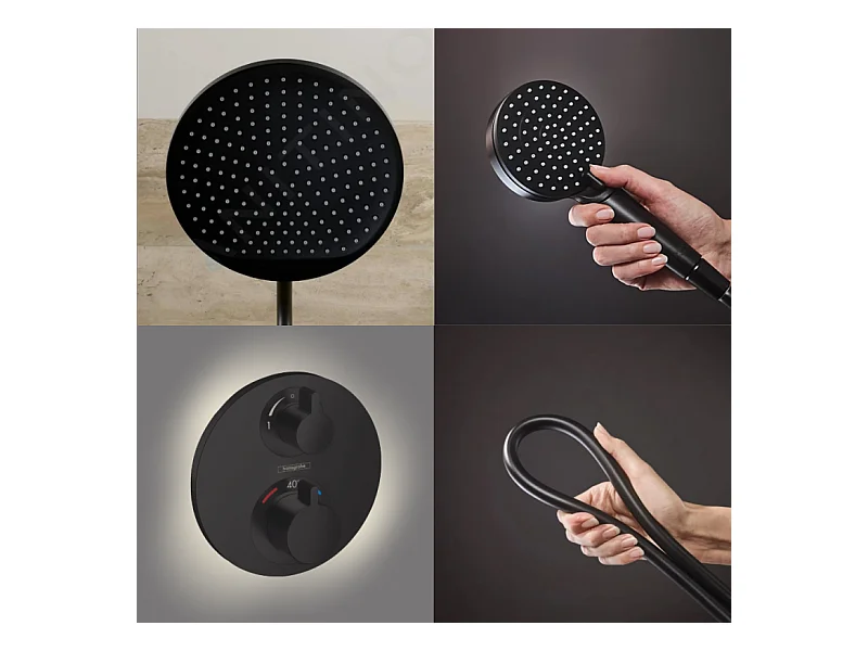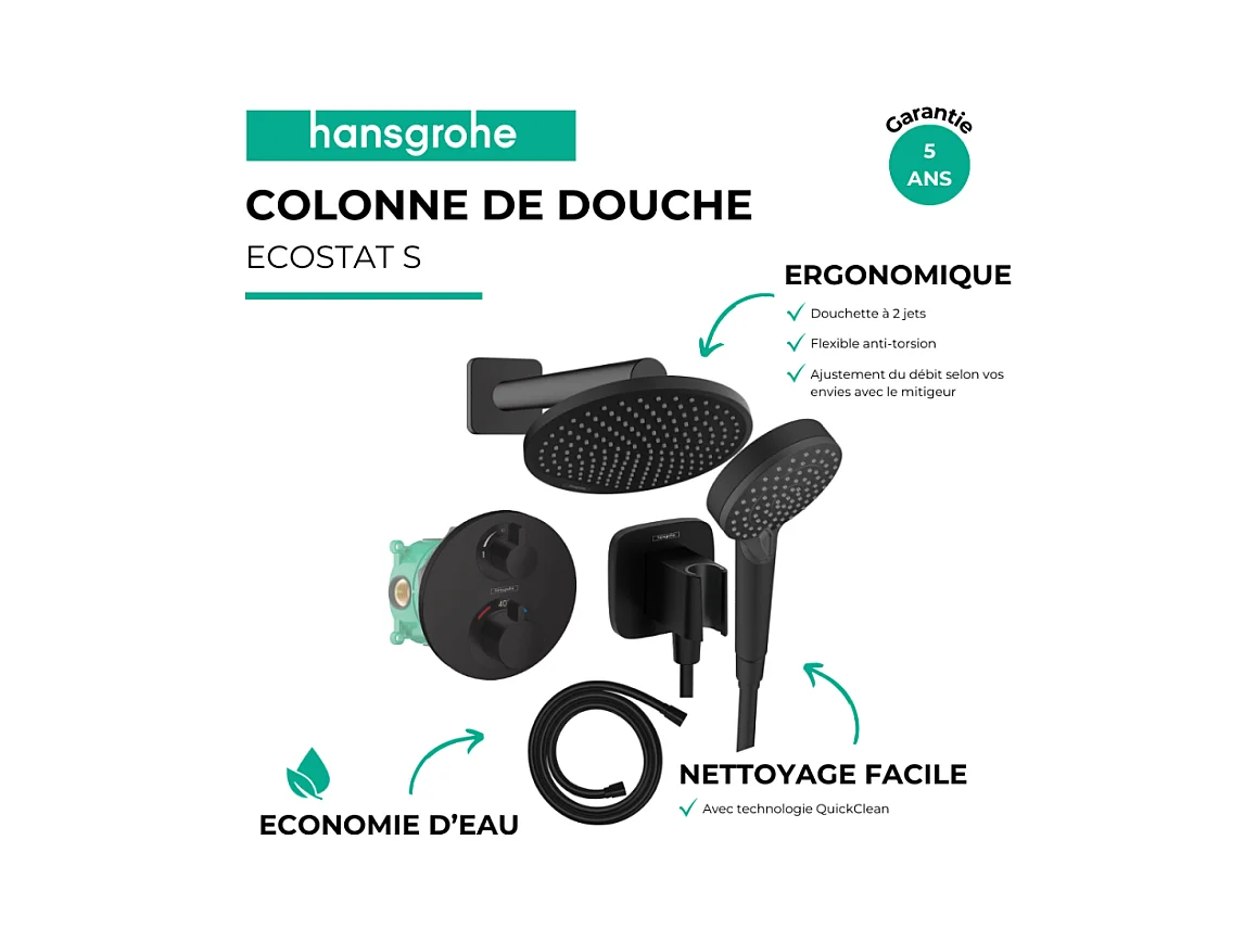 Colonne de douche thermostatique HANSGROHE Ecostat S Douche de tête Crometta S Flexible Isiflex Douchette Vernis Blend noir mat