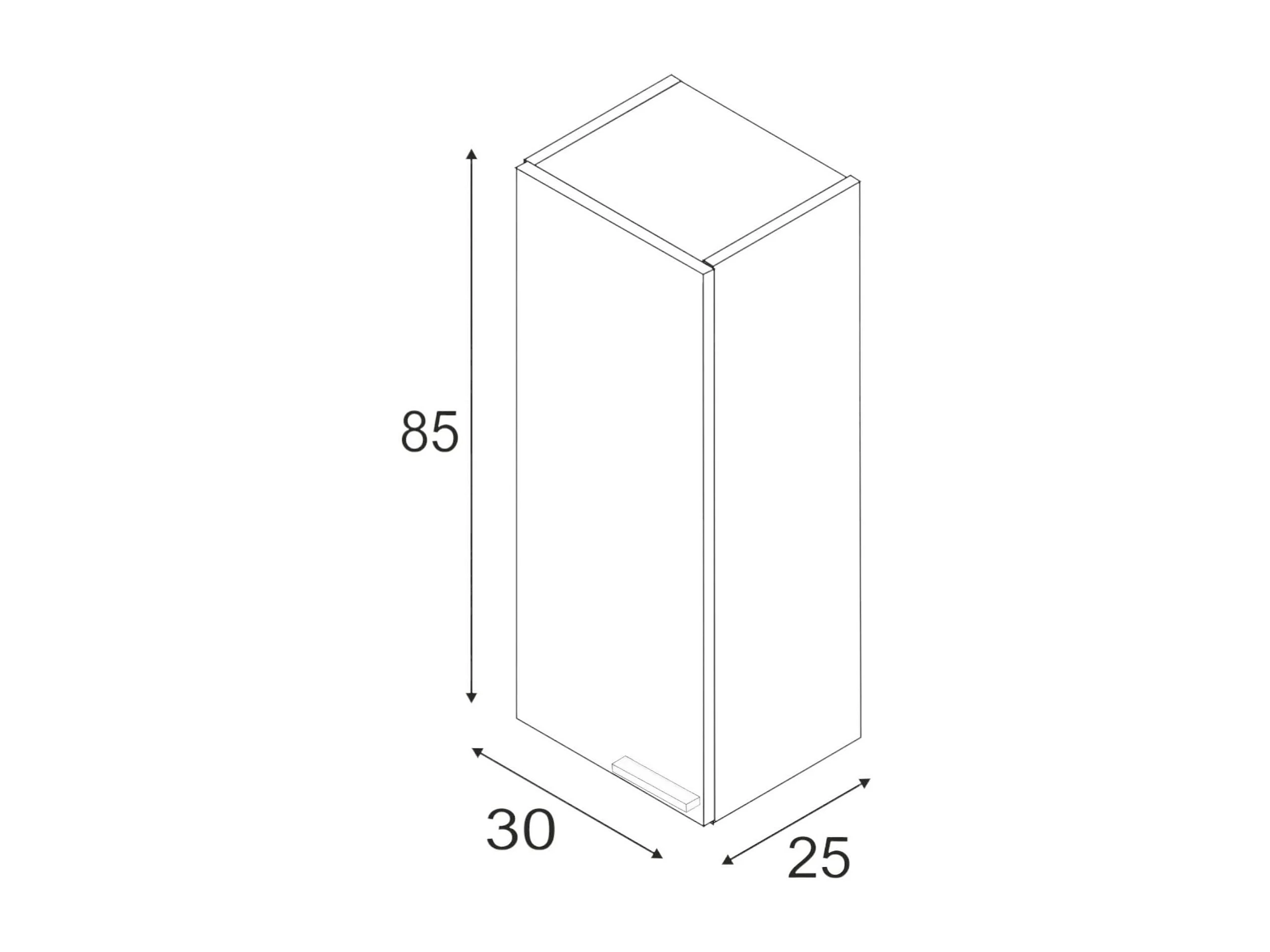 Armoire murale Dmonald, Armoire colonne de salle de bain avec 1 porte, Armoire murale suspendue avec 1 étagère, 30x25h85 cm, Blanc brillant