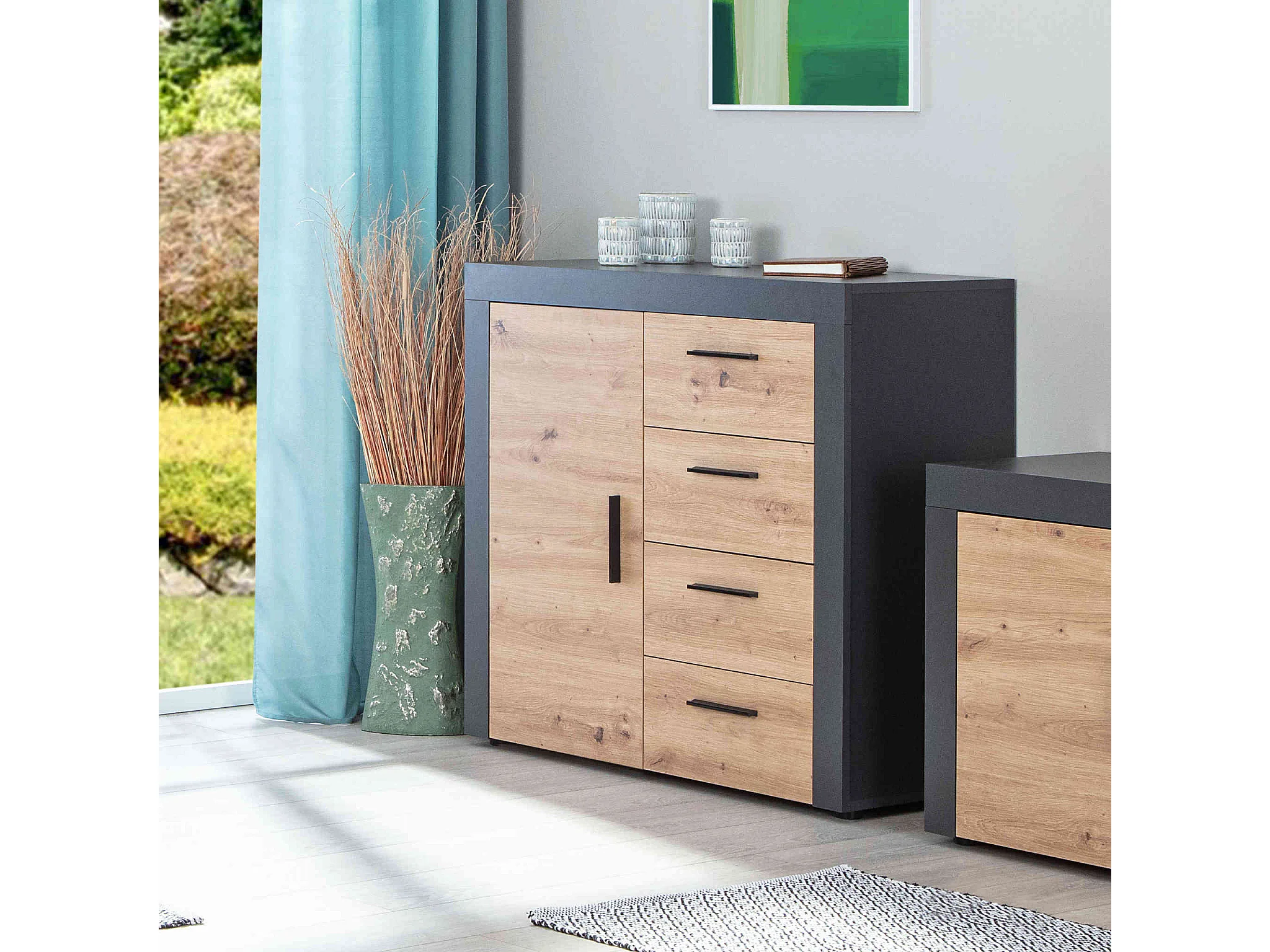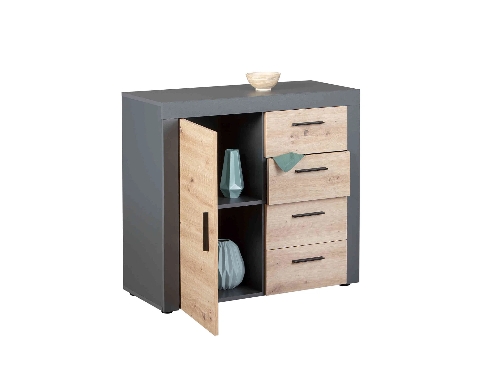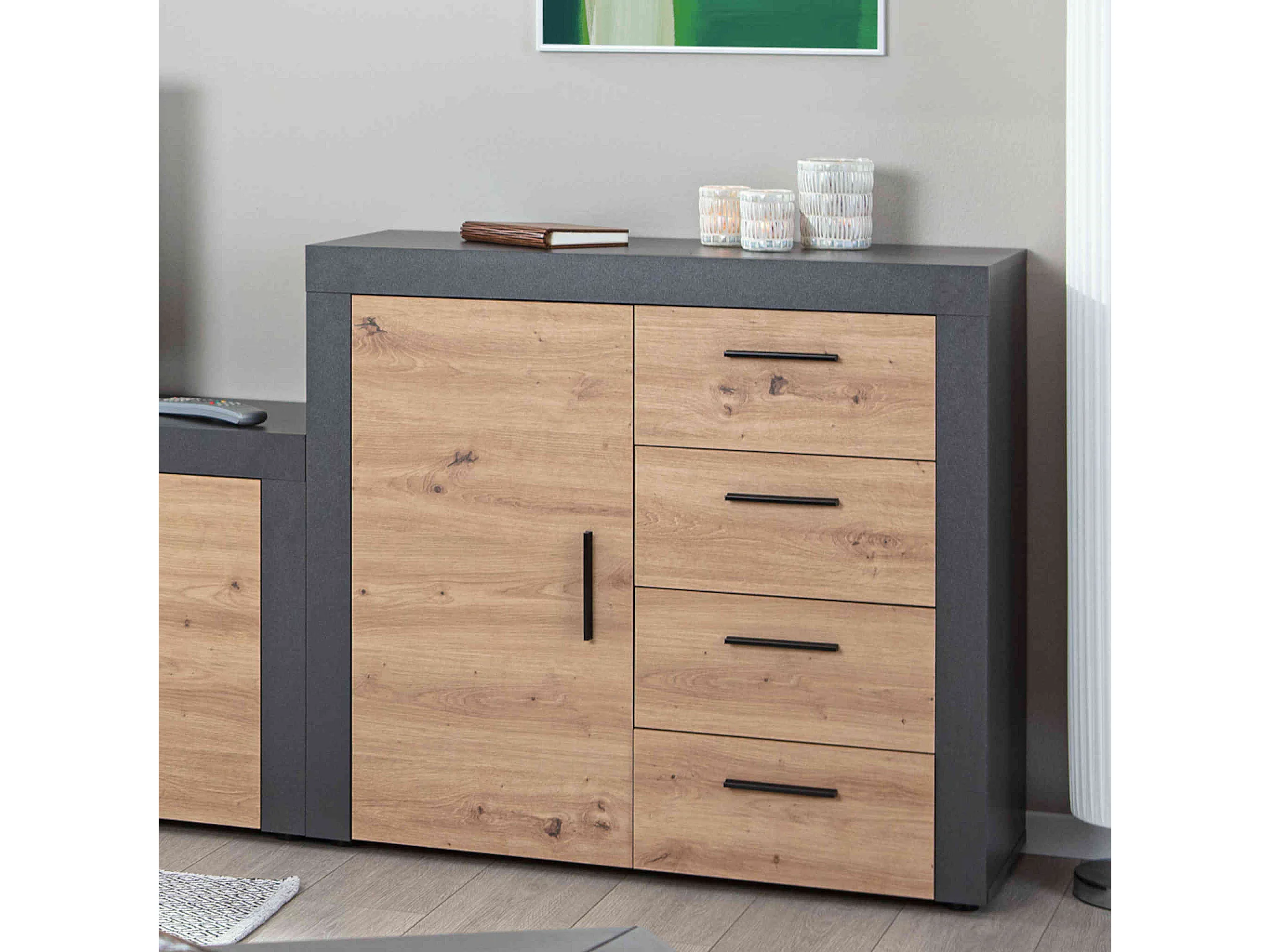Commode 1 porte 4 tiroirs en bois imitation chêne et anthracite - CO12086