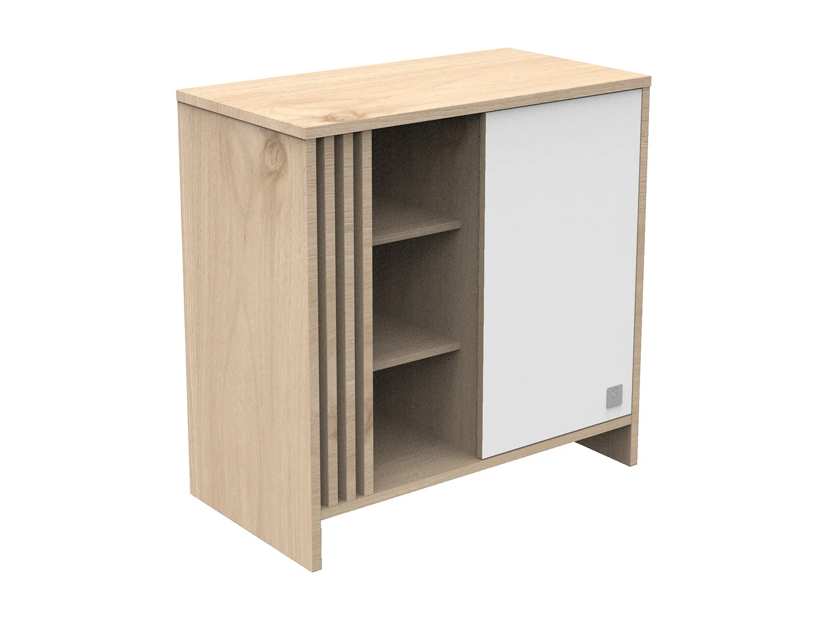 Commode 1 porte colorée et 3 niches avec claustra en bois décor chêne Suave TOKYO - Sauthon