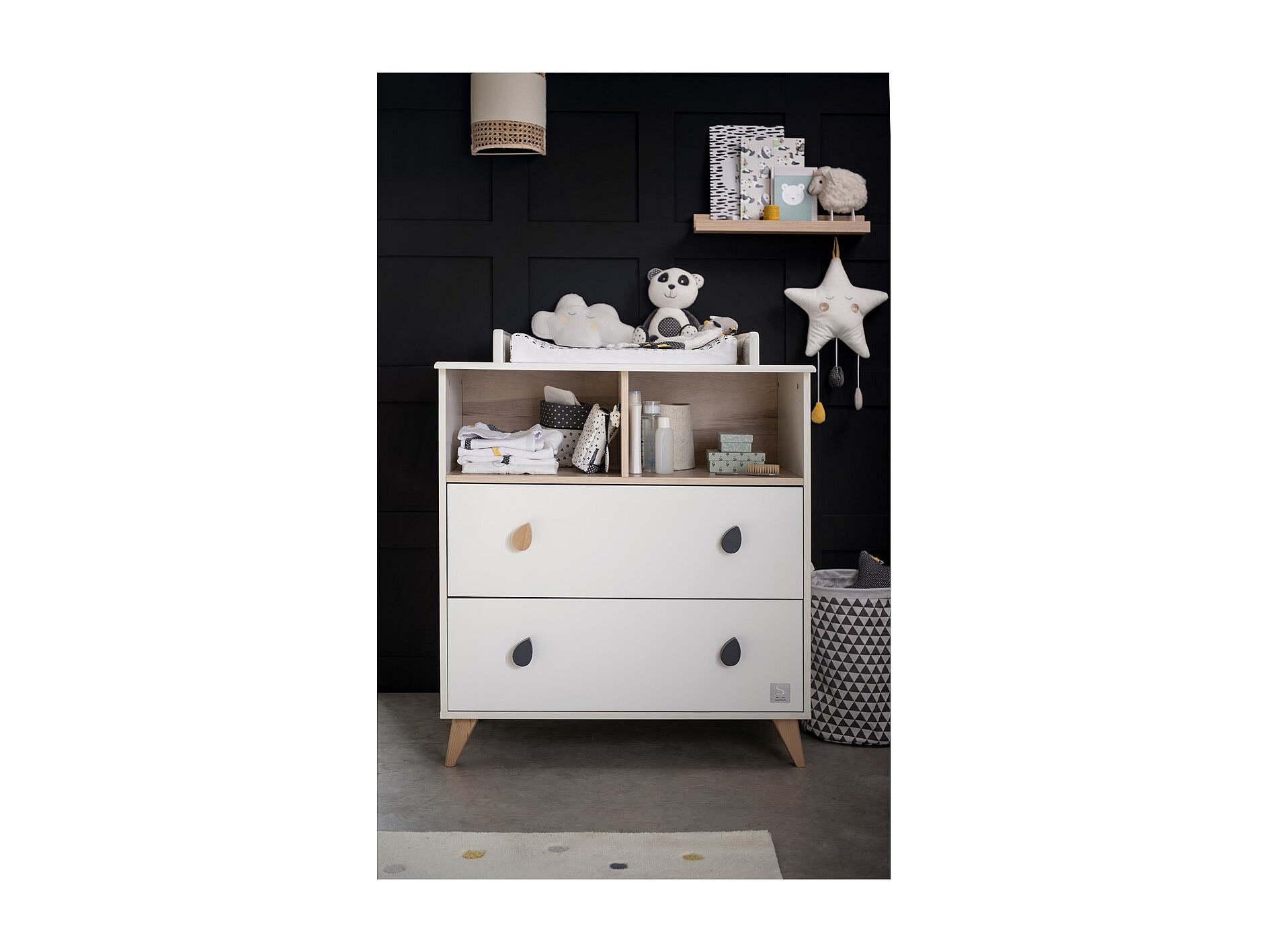 Commode 2 tiroirs 2 niches boutons goutte OSLO - Sauthon
