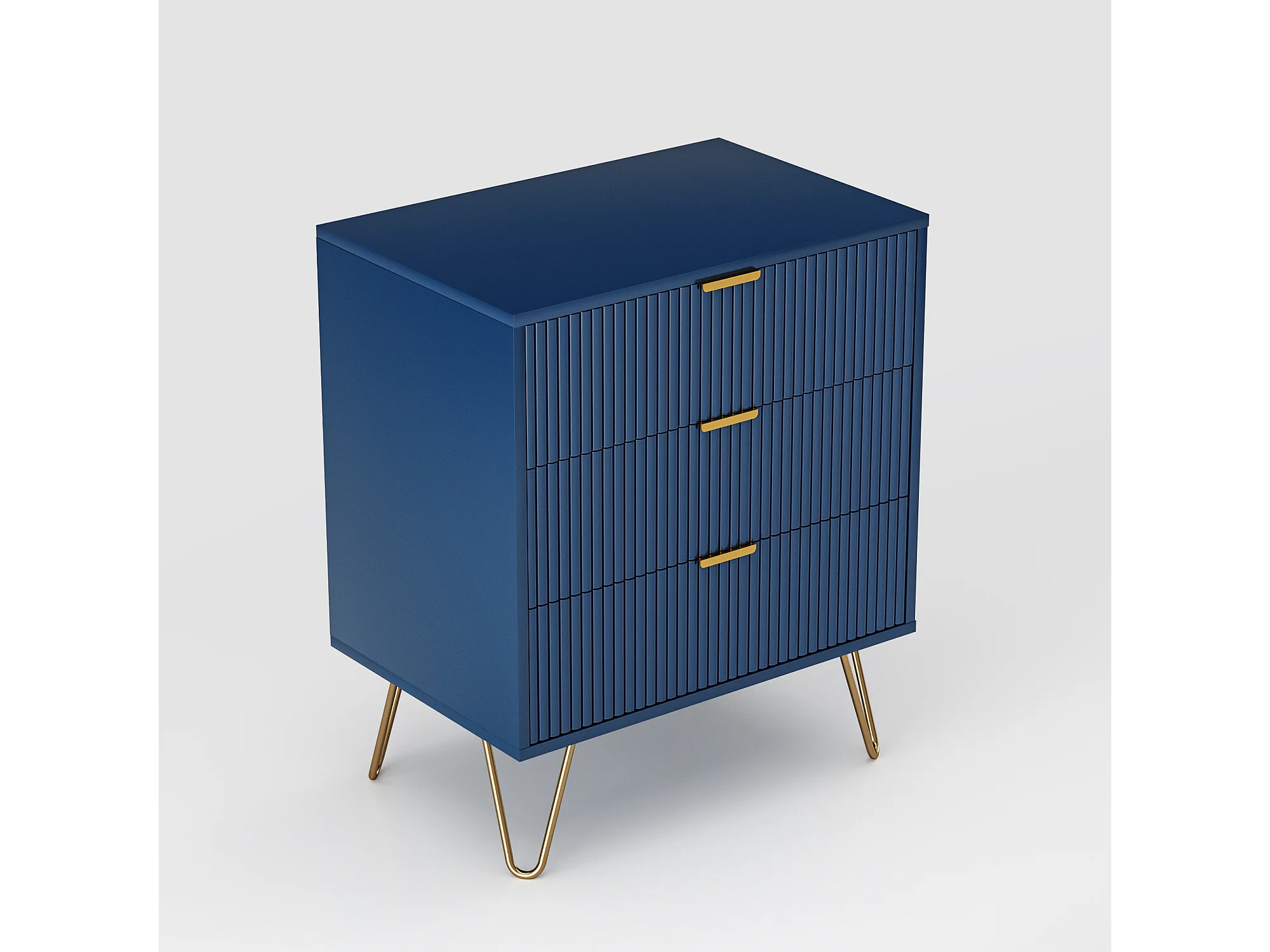 Commode, 3 tiroirs, Armoires de rangement, table de chevet, salon, chambre - Bleu