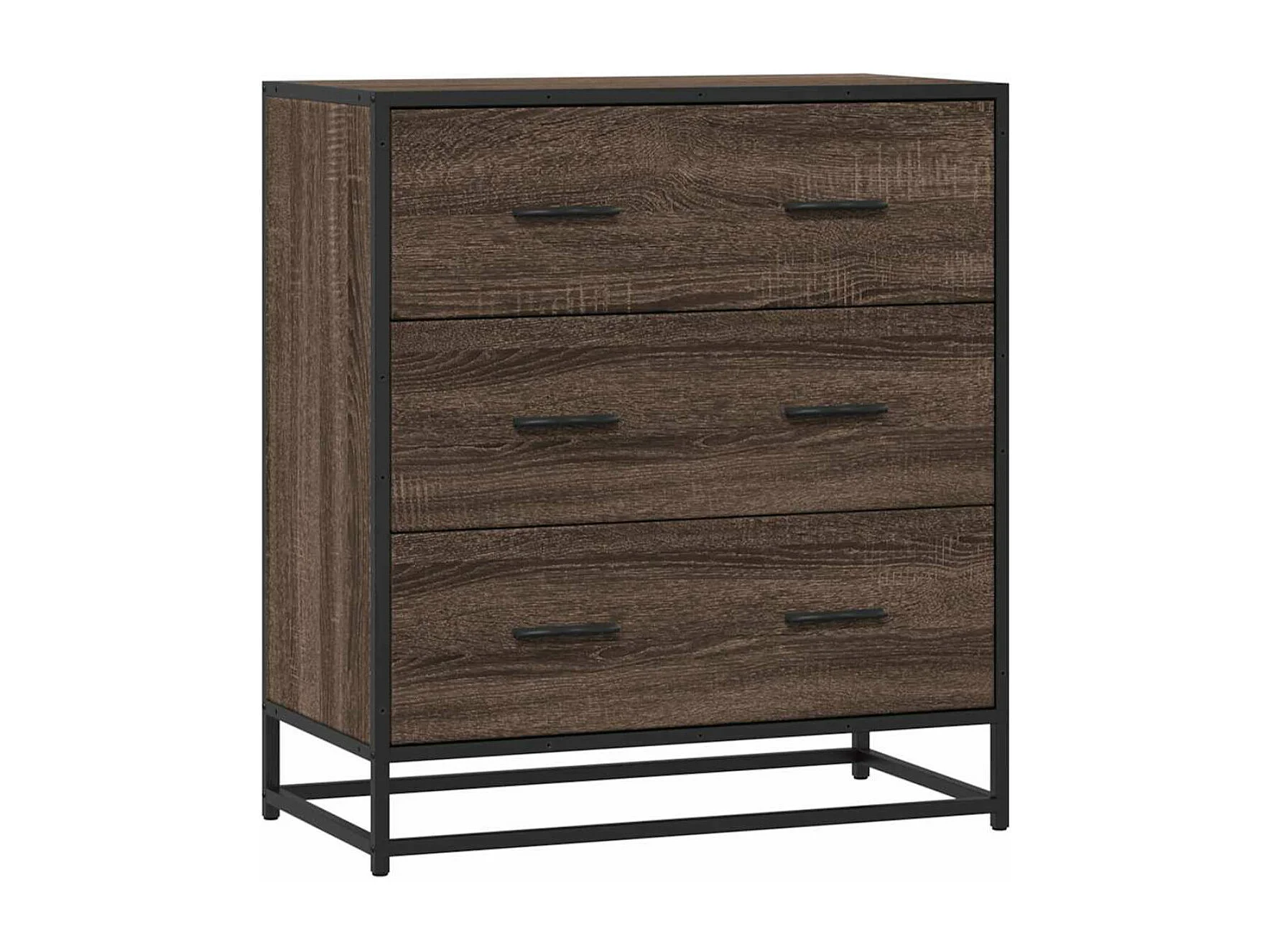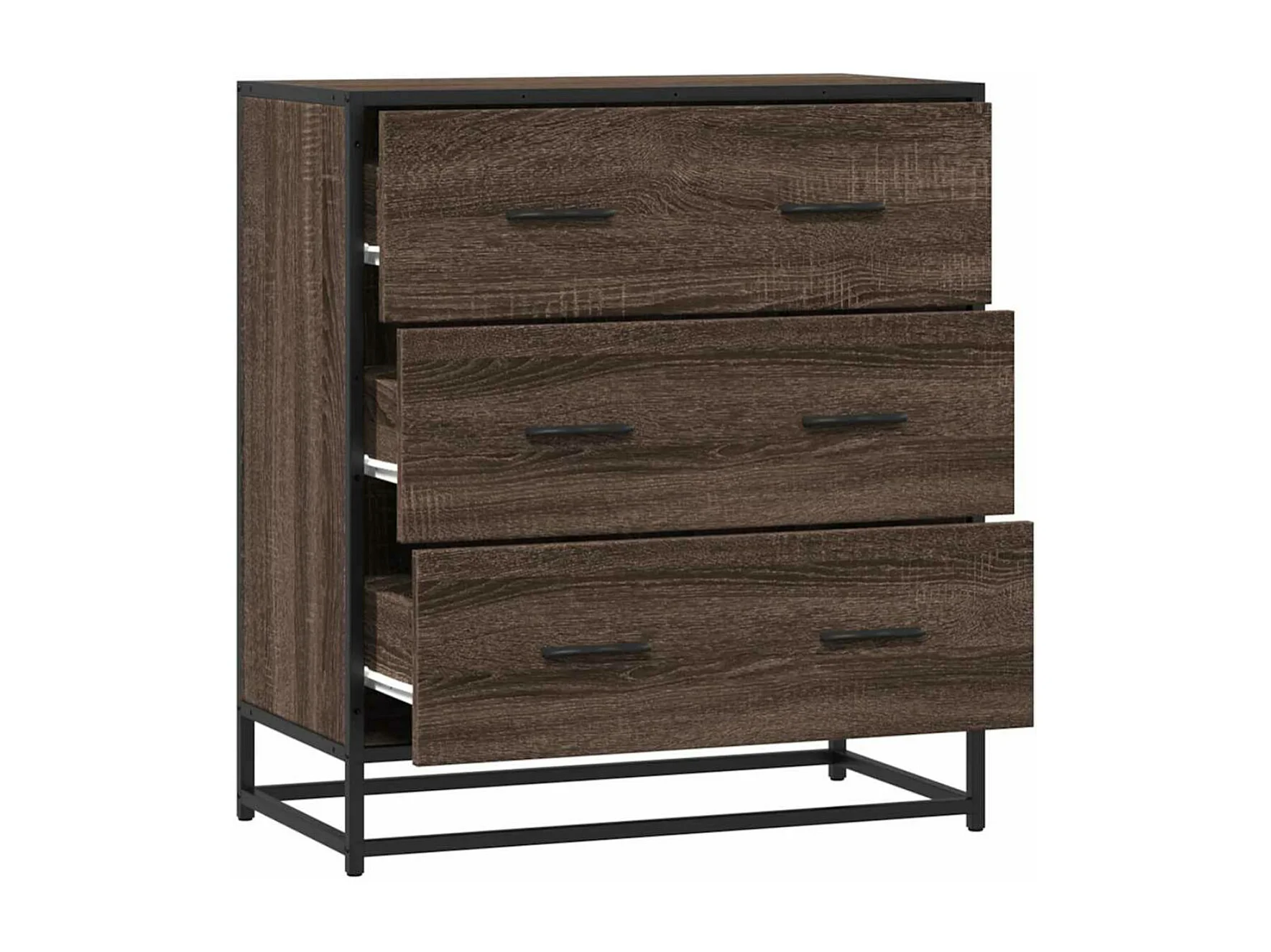 Commode 3 tiroirs finition bois clair chêne et métal noir L100 cm LOVATO
