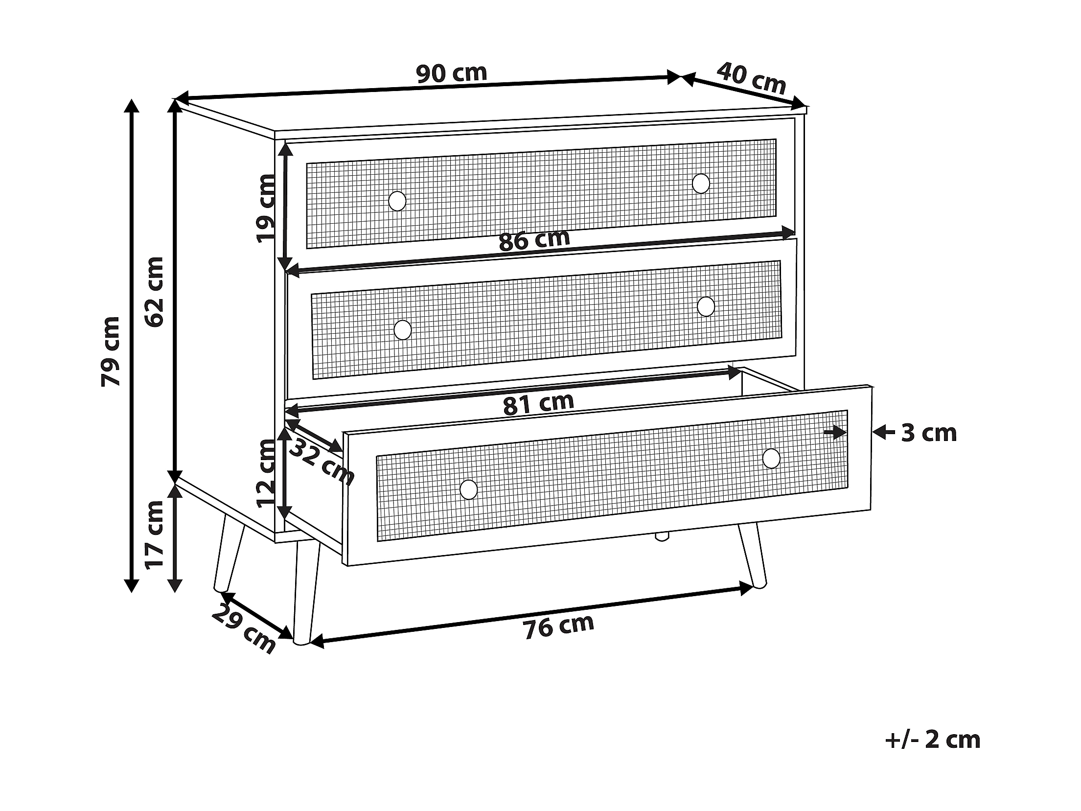 Commode à 3 tiroirs PONCA Marron clair
