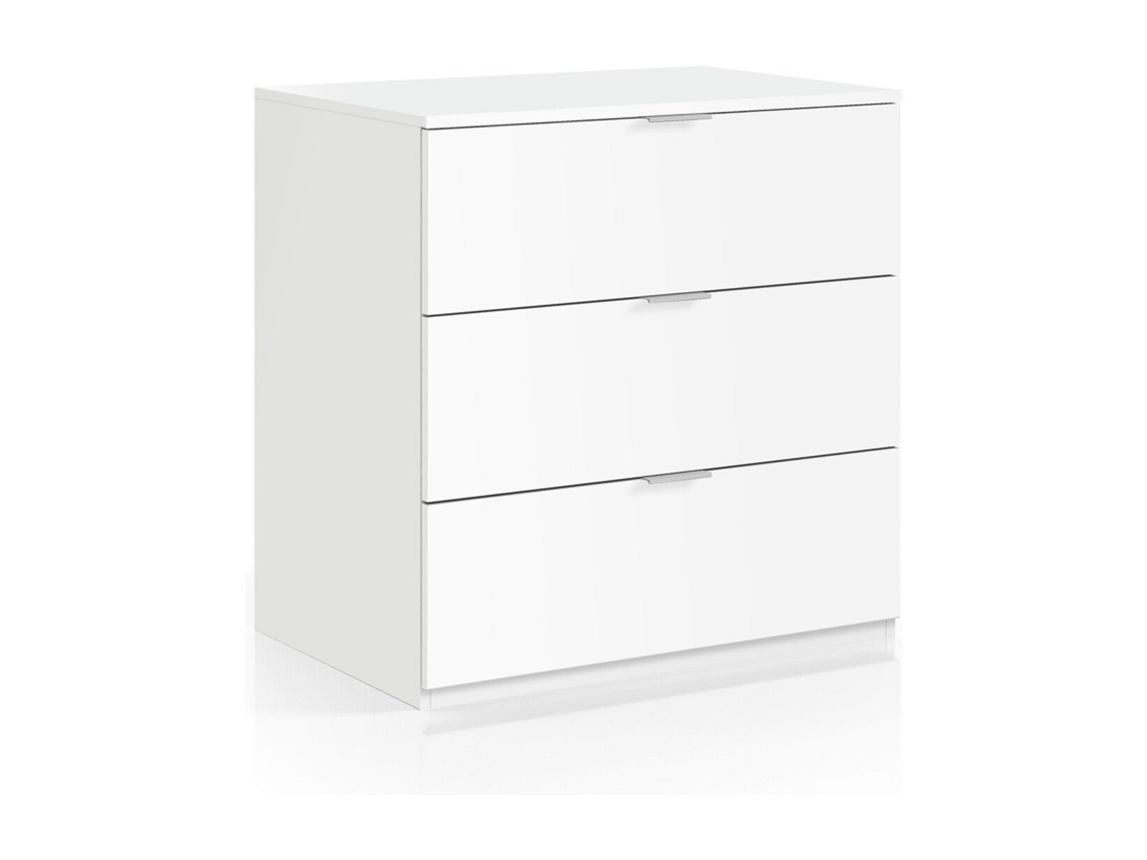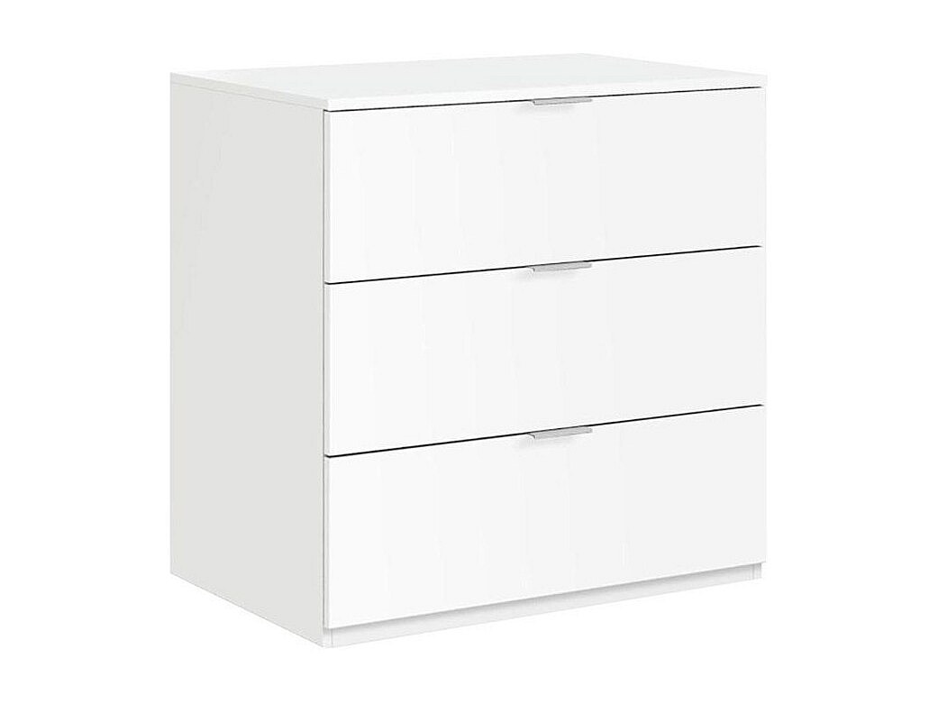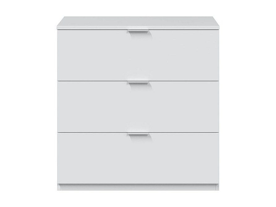 Commode Austin en mélamine avec trois tiroirs sur rail métallique, 80 cm X 85 cm X 42 cm , Blanc