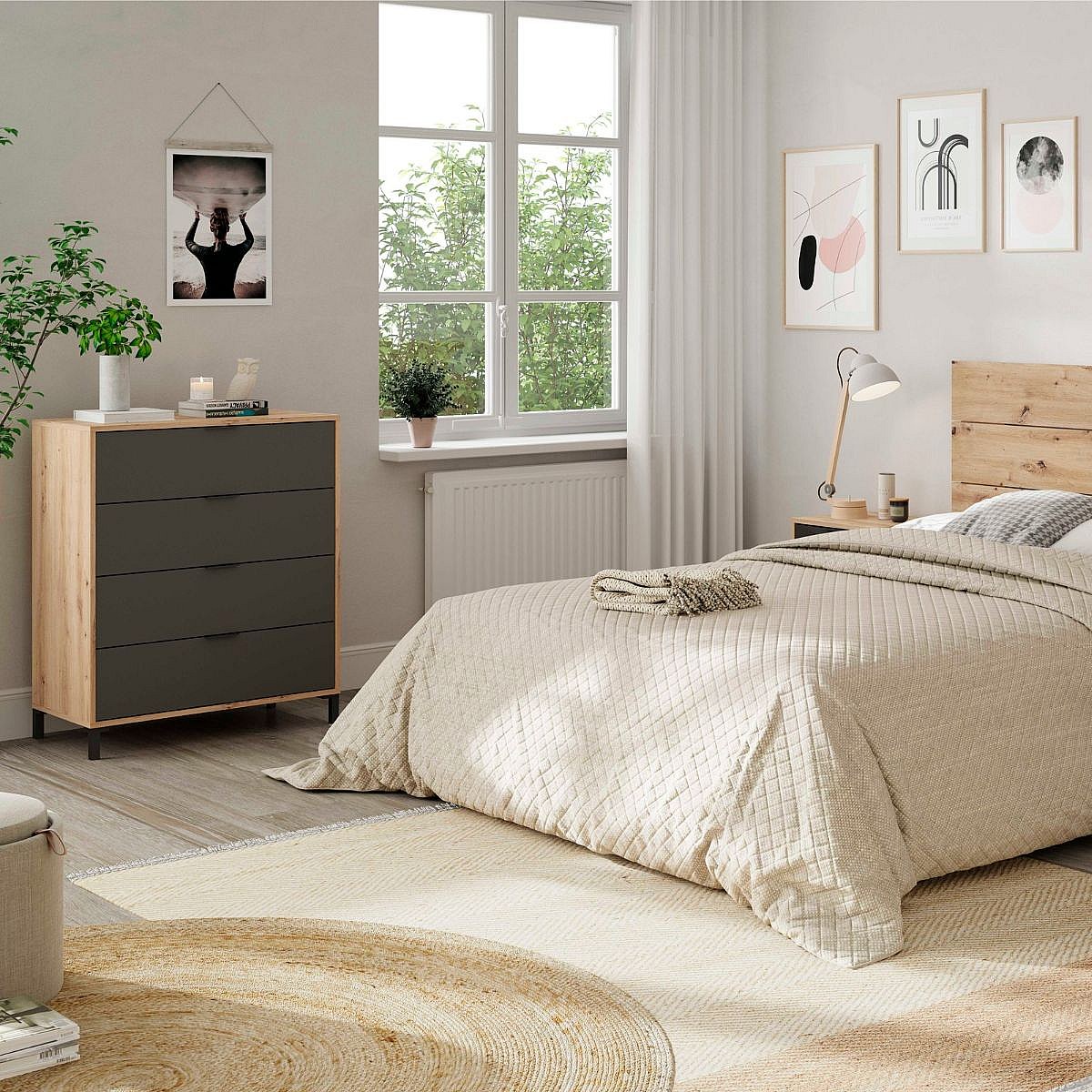 Commode 4 tiroirs décor chêne noueux et gris anthracite - L77,5 cm