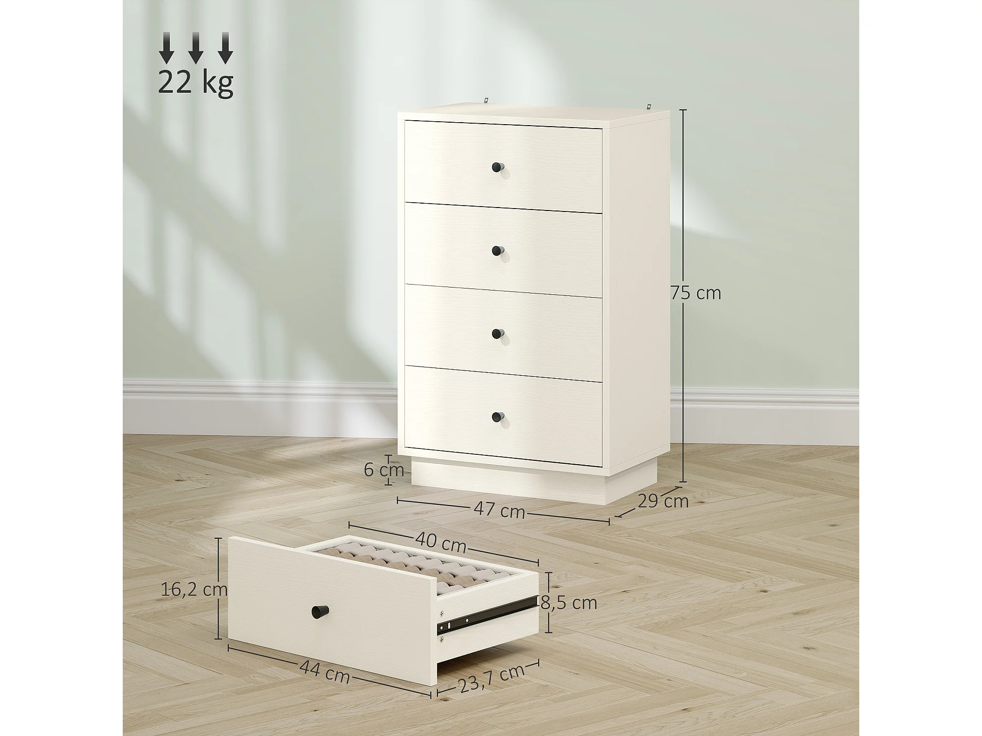 Commode 4 tiroirs dim. 60L x 40l x 80H cm blanc