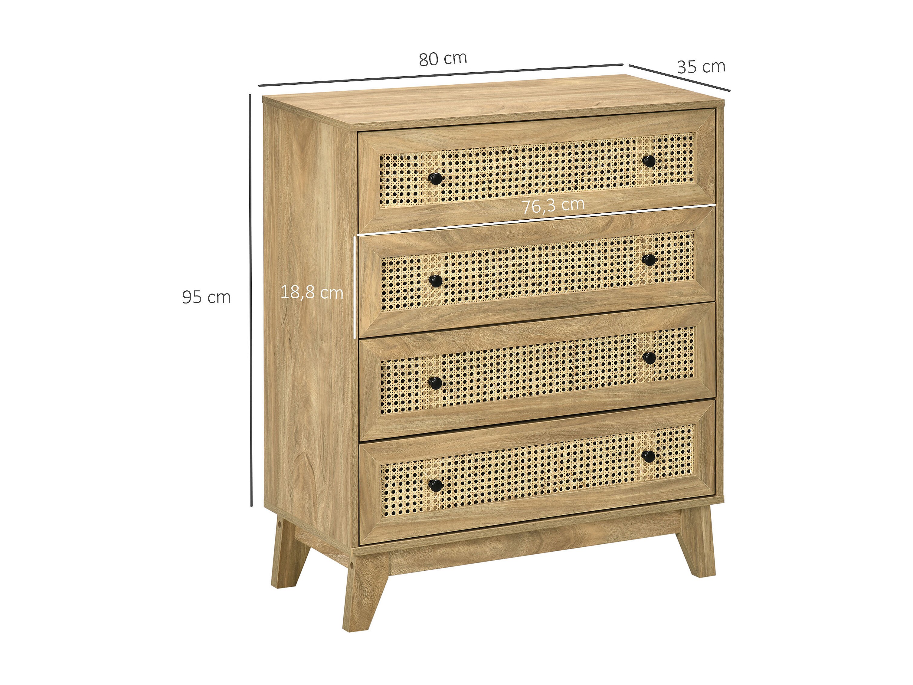 Commode 4 tiroirs style bohème chic cannage en rotin aspect bois de manguier
