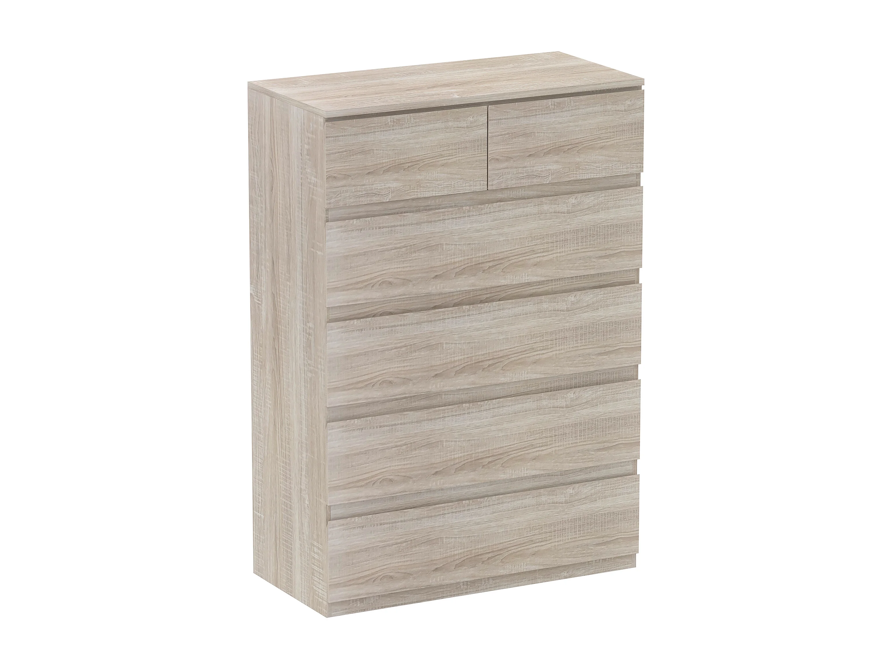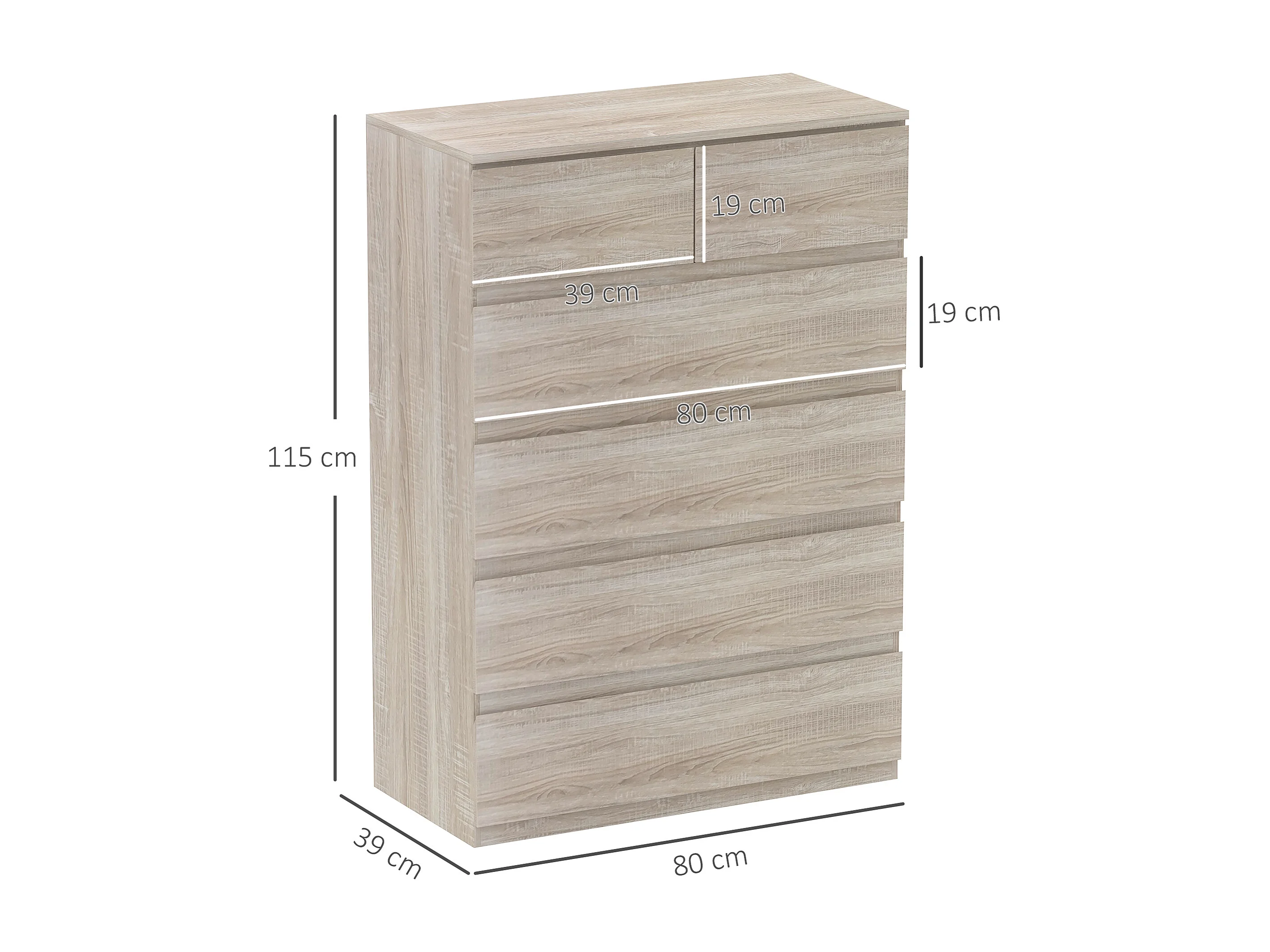 Commode 6 tiroirs style contemporain dim. 80L x 39l x 115H cm poignées invisibles effet bois naturel