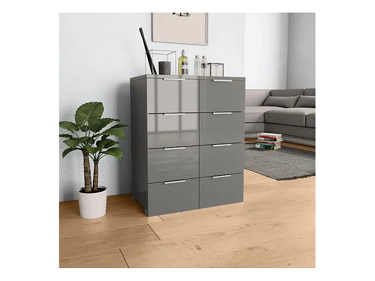 Commode 8 tiroirs bois gris brillant Bella