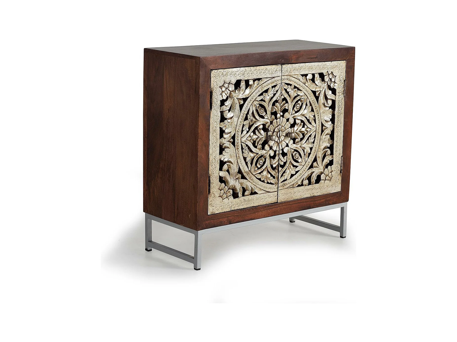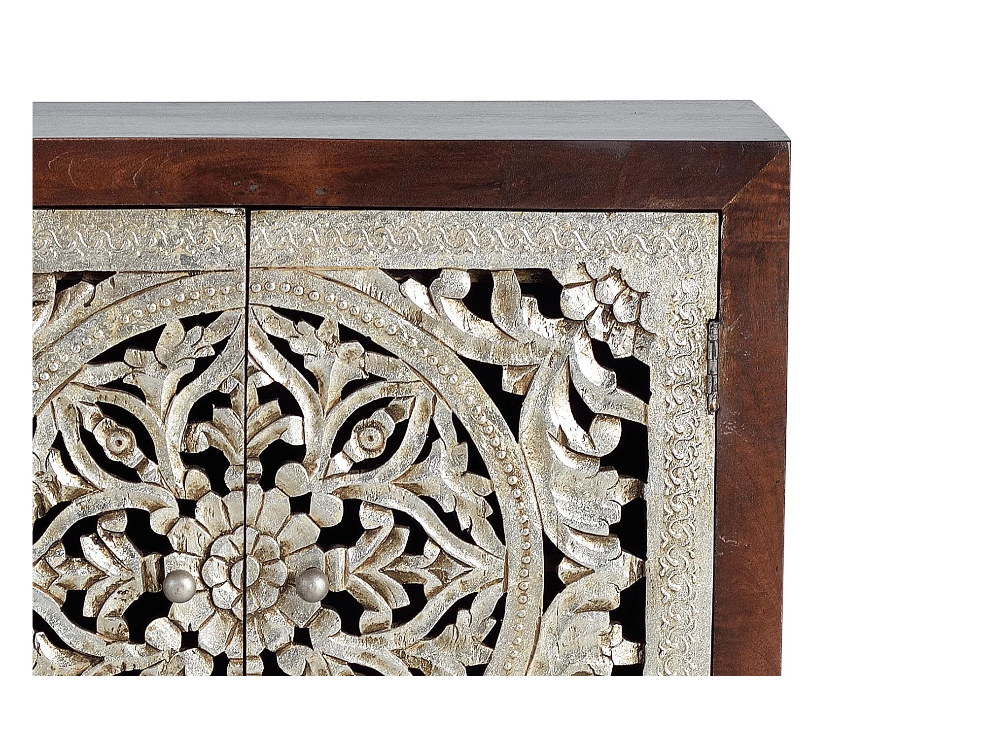 Buffet 2 portes en bois de manguier sculptée et feuille d'argent