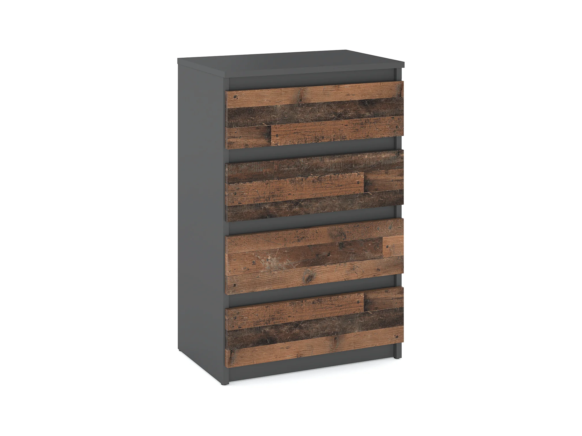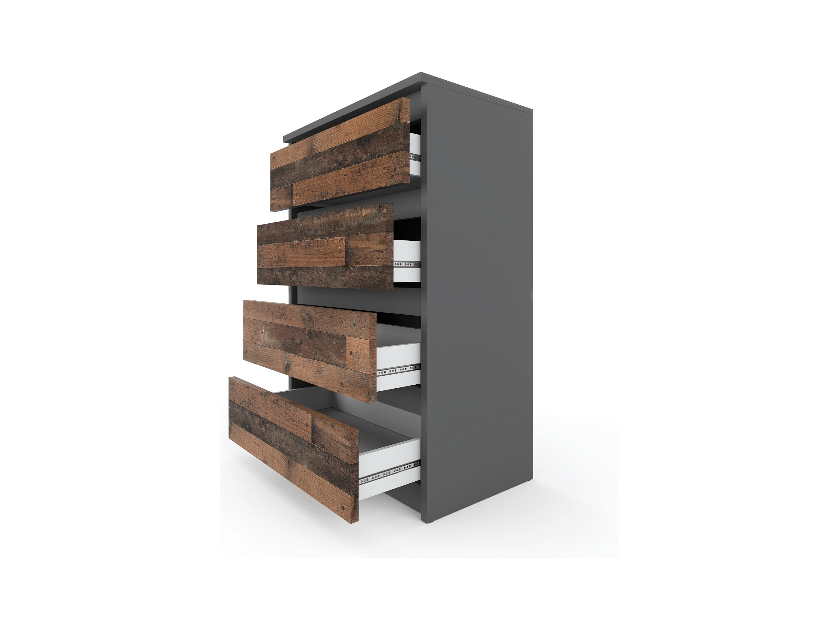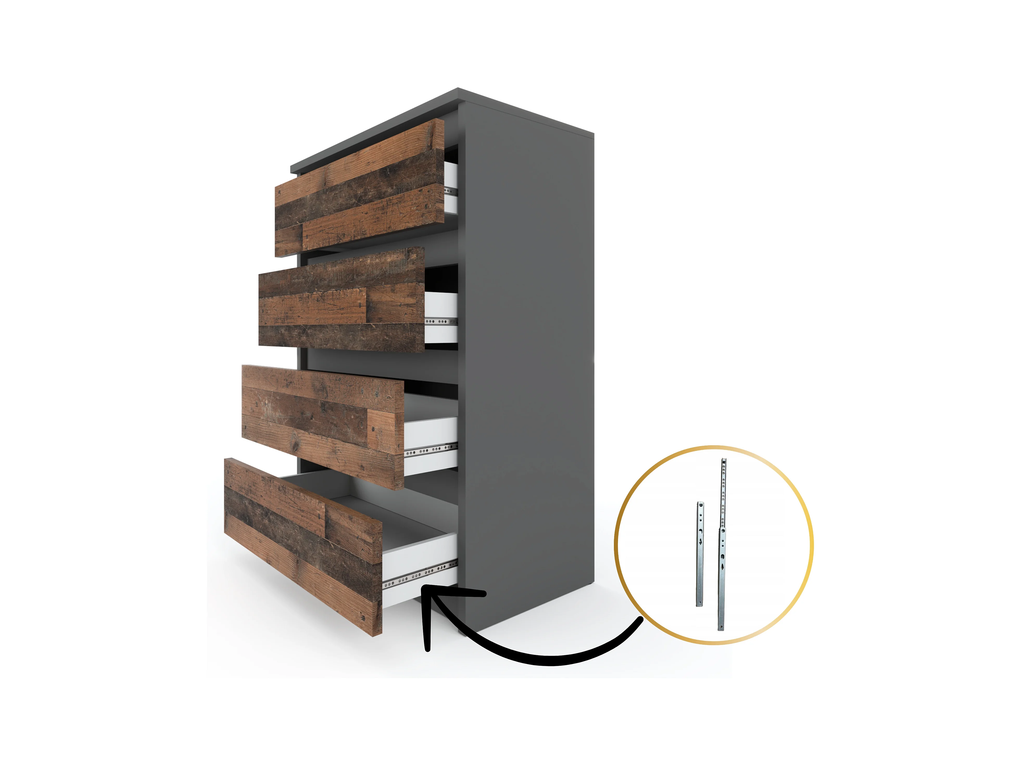 Commode AKORD K120 Blanche 120 cm 4 tiroirs façade Gris Graphite 120x40x55 cm