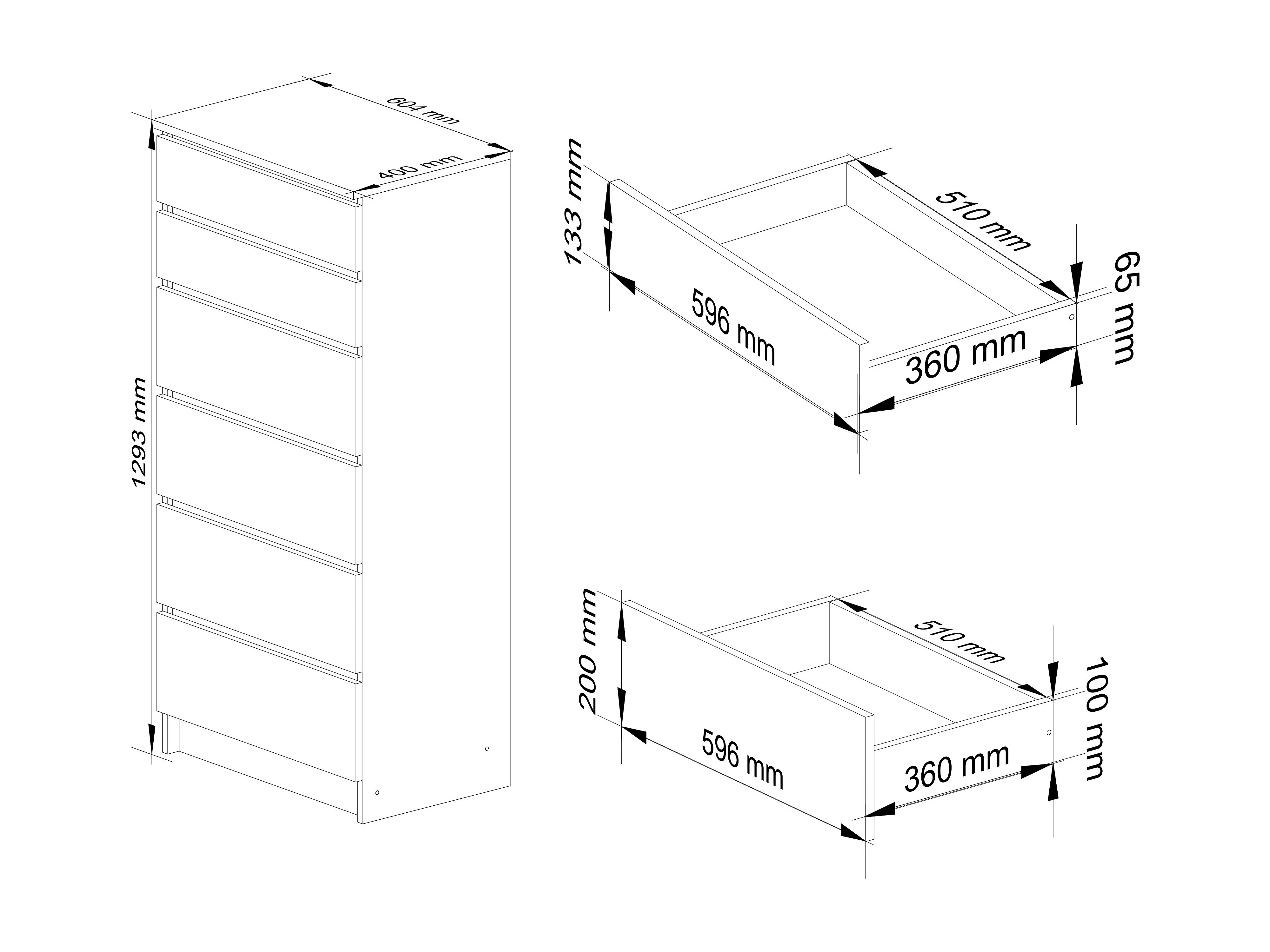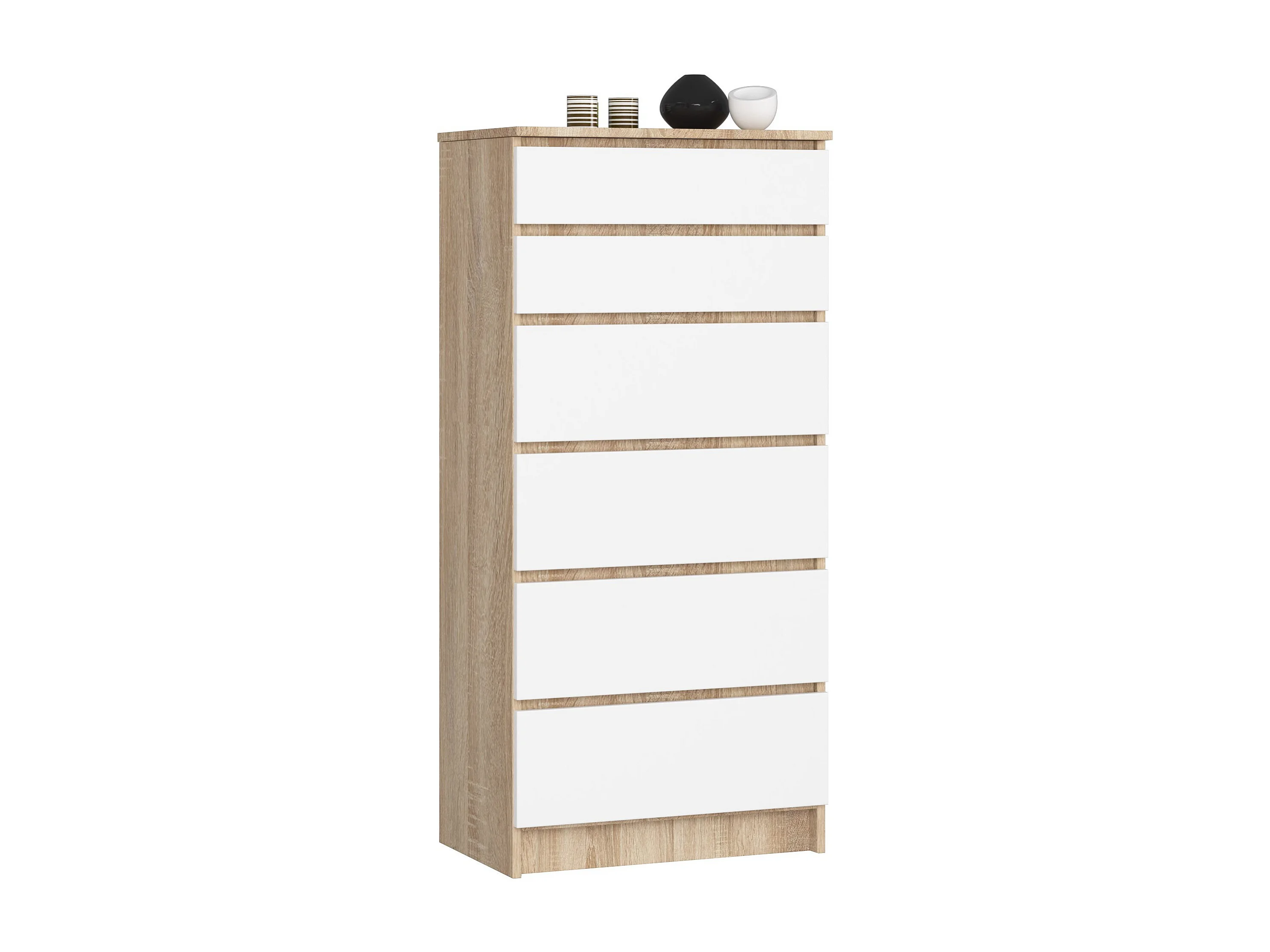Commode AKORD K60 Chêne Sonoma 60 cm 6 tiroirs façade Blanche 60x40x130 cm