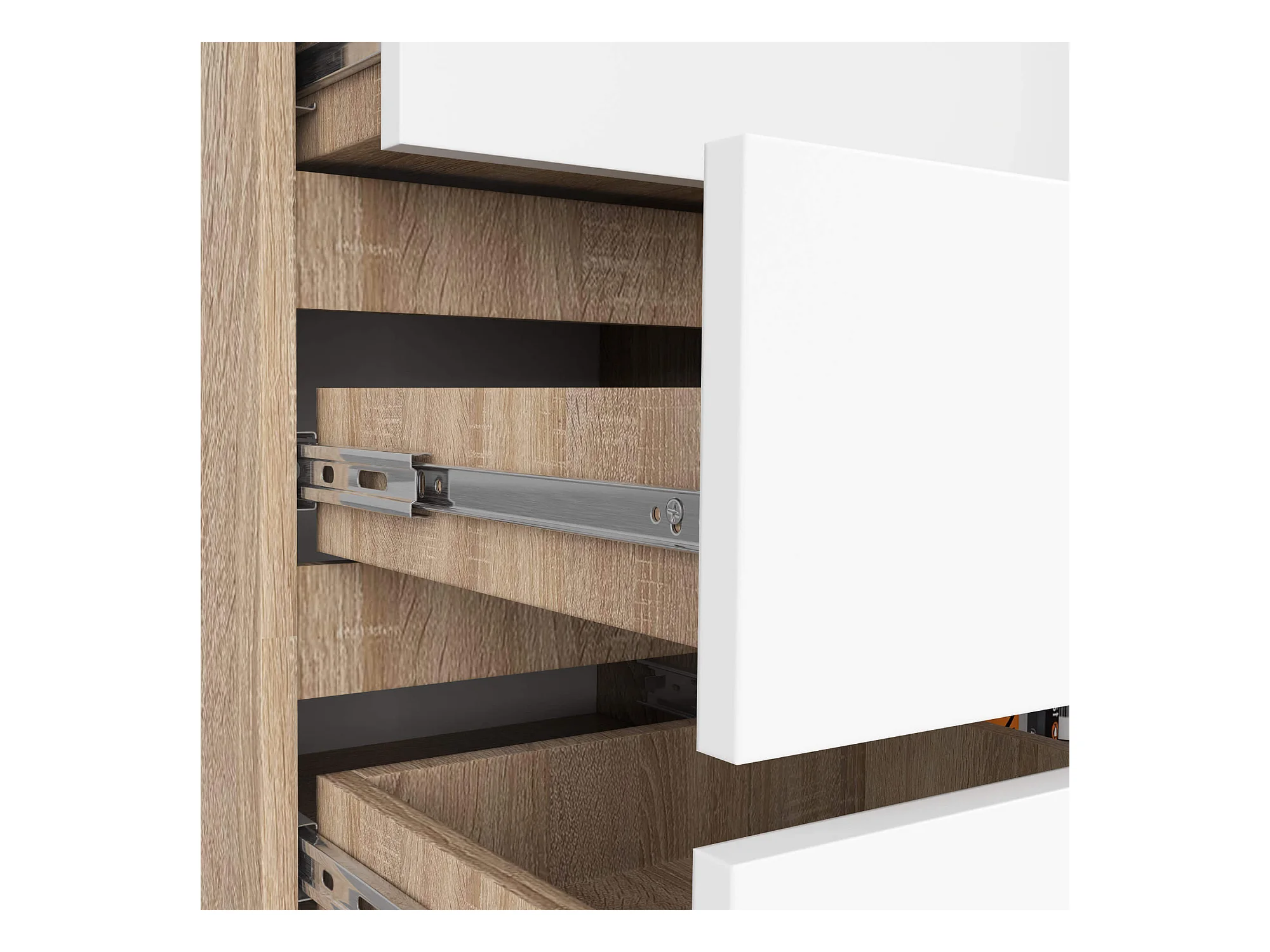 Commode AKORD K80 Chêne Sonoma 80 cm 1 porte 5 tiroirs façade Blanche 3 étagères 80x35x97 cm