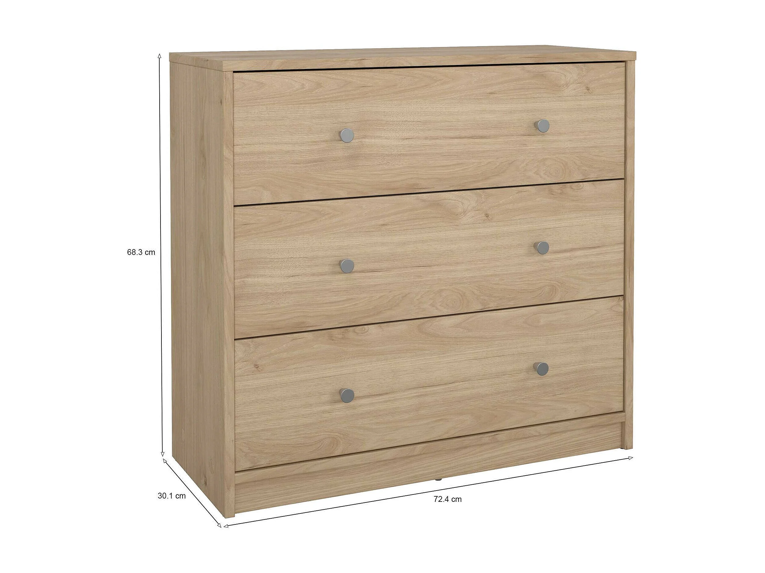 Commode Alert, Commode polyvalente, Commode de chambre, Meuble avec tiroirs, 72x30 h68 cm, Chêne clair