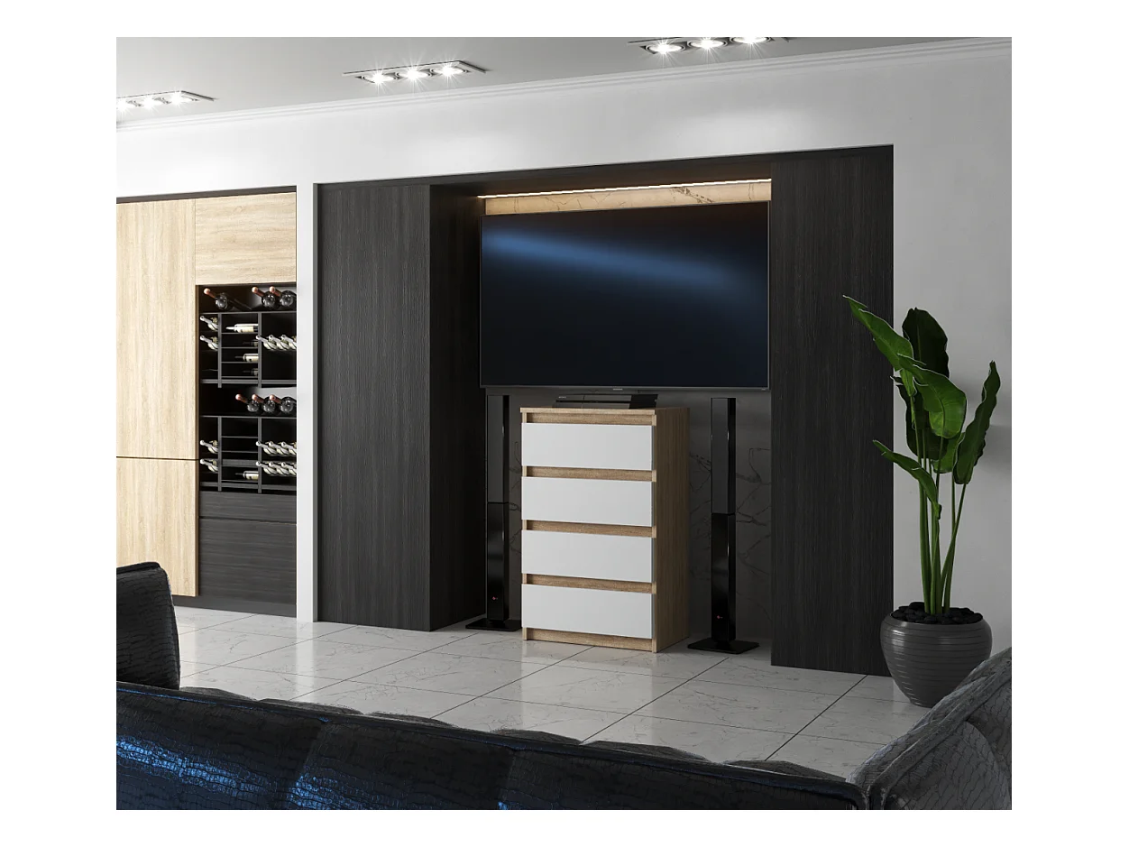 Commode avec 4 tiroirs 60cm Chêne Sonoma Blanc Meubles de salon -TV-Chambre
