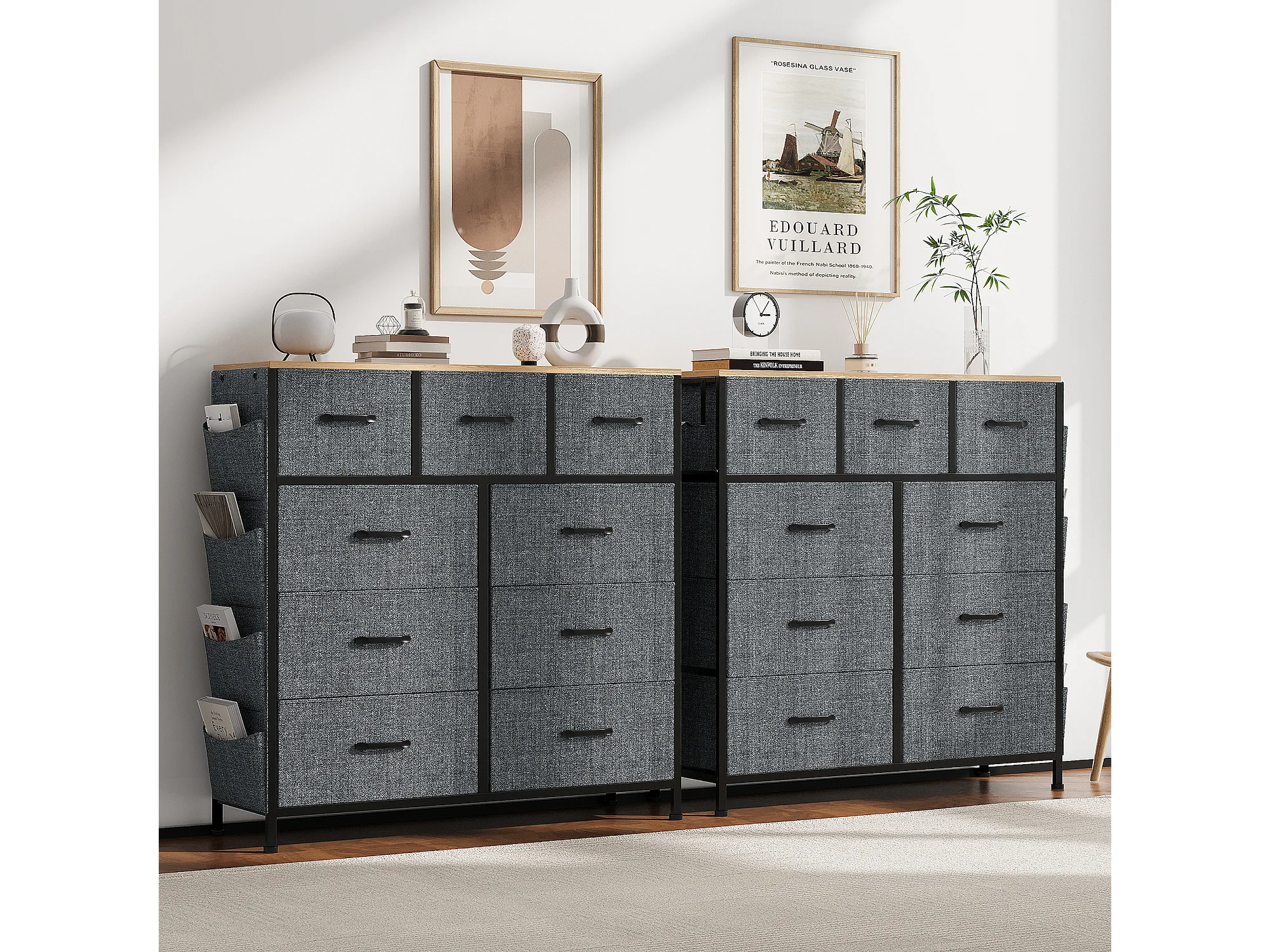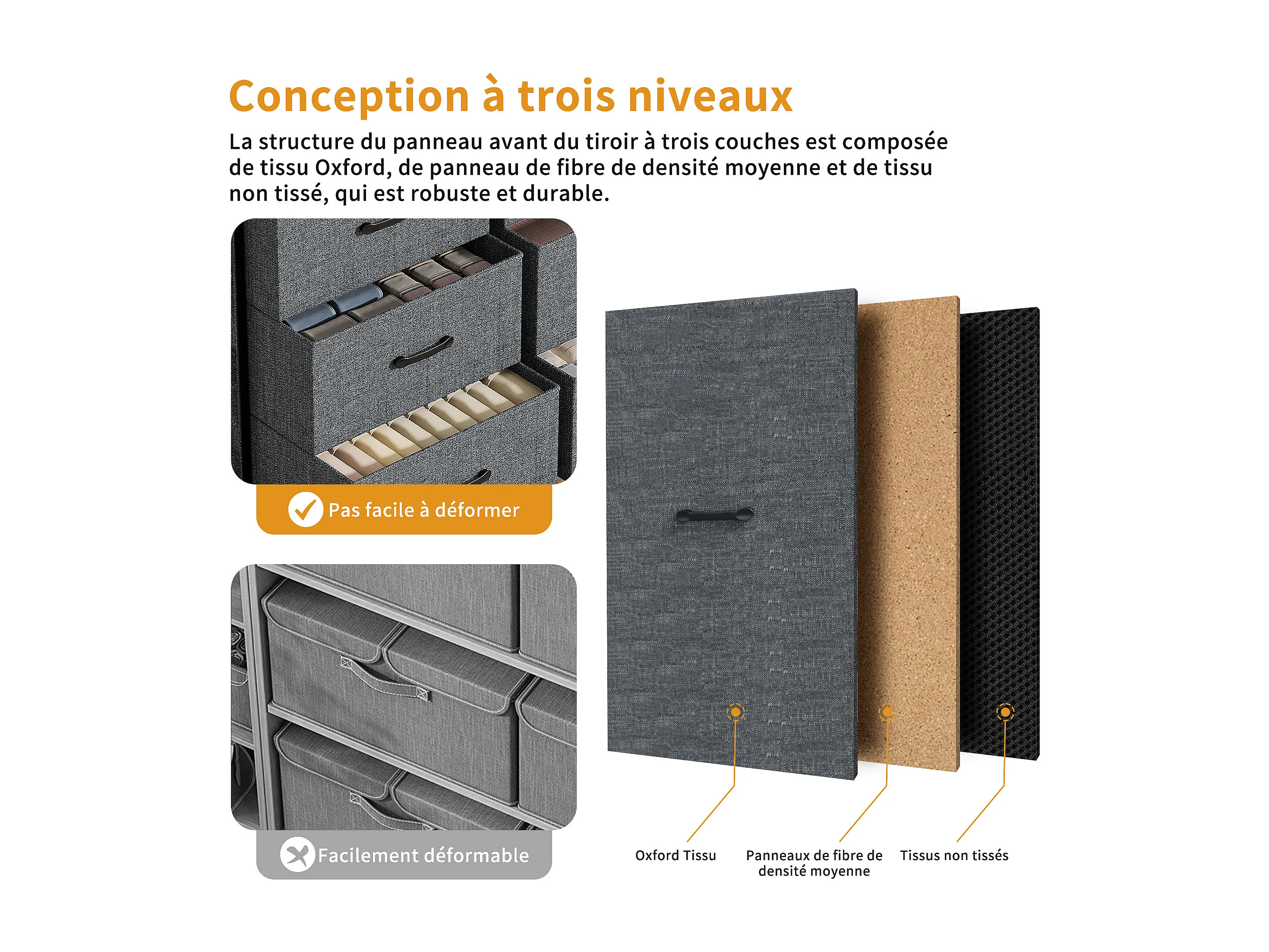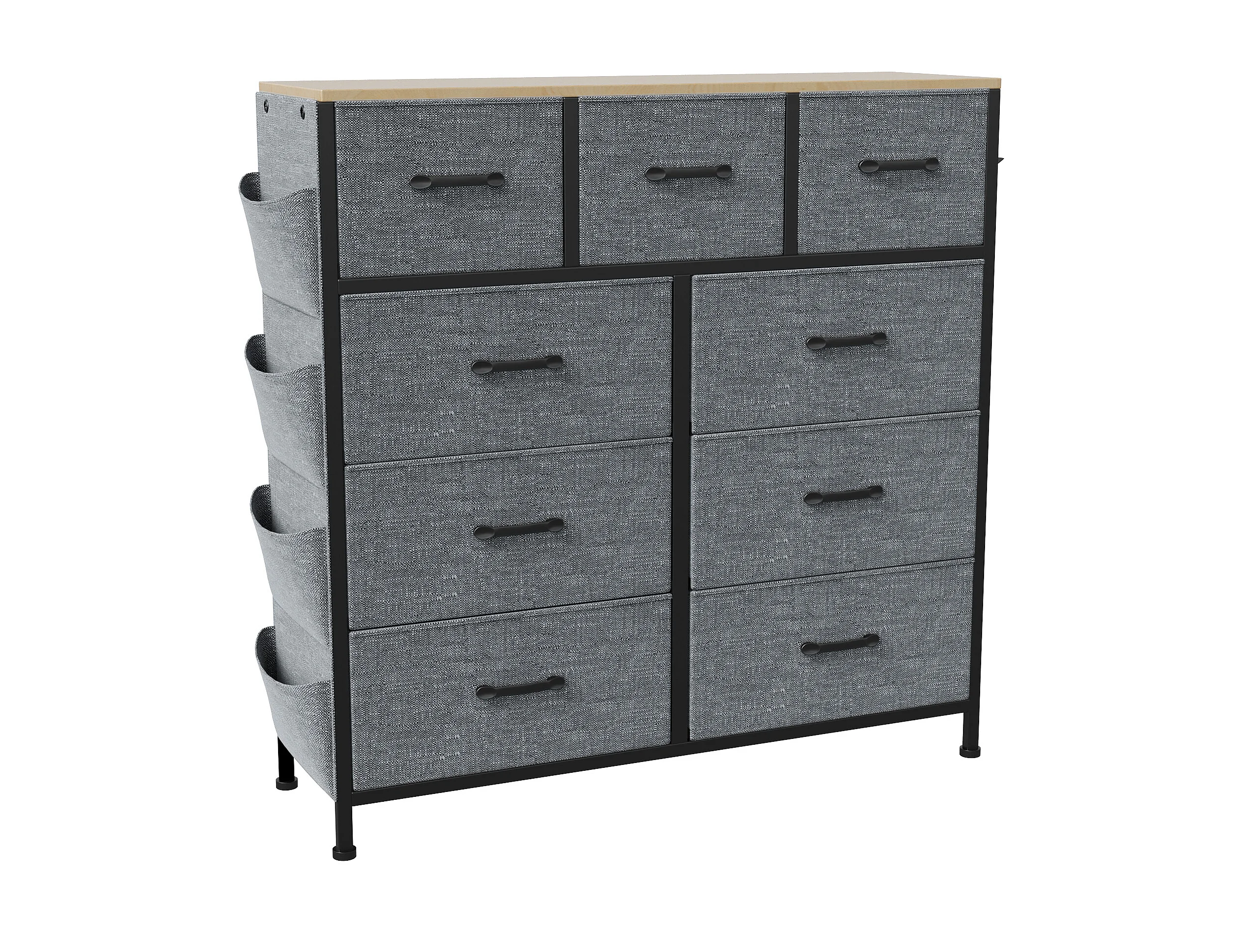 Commode avec 9 tiroirs en tissu, buffet avec tiroirs en tissu, commode, avec structure en acier robuste et plateau en bois,98,8 x 30 x 100cm