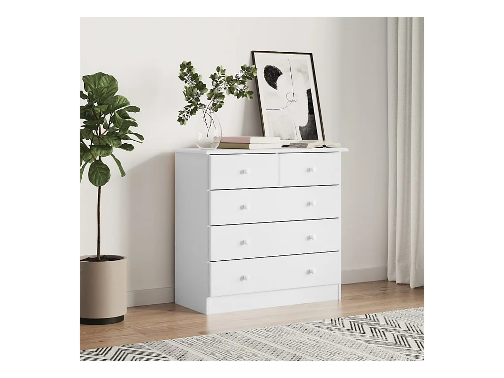 Commode basse ALTA blanc 77x35x73 cm bois massif de pin SBC1051