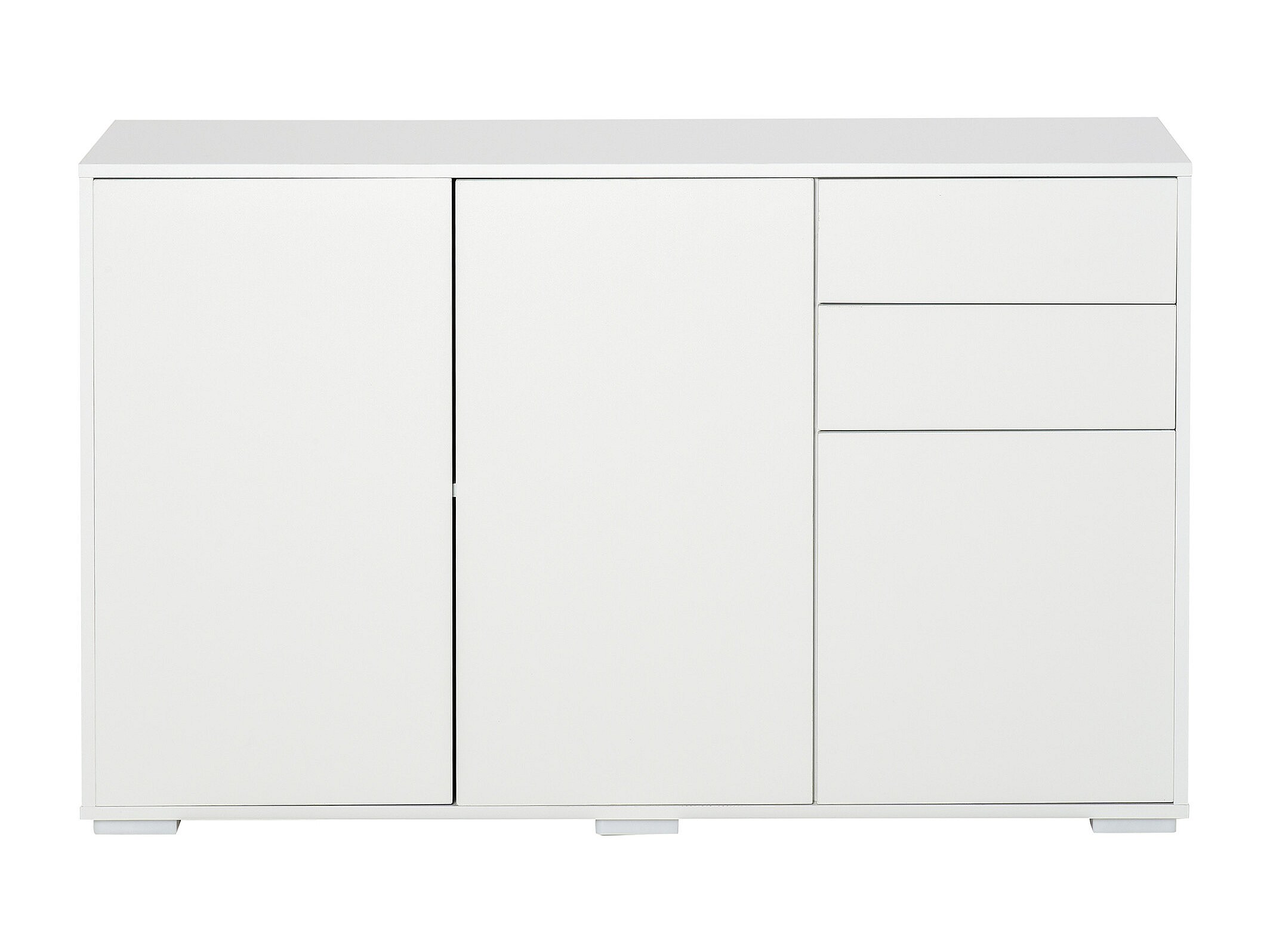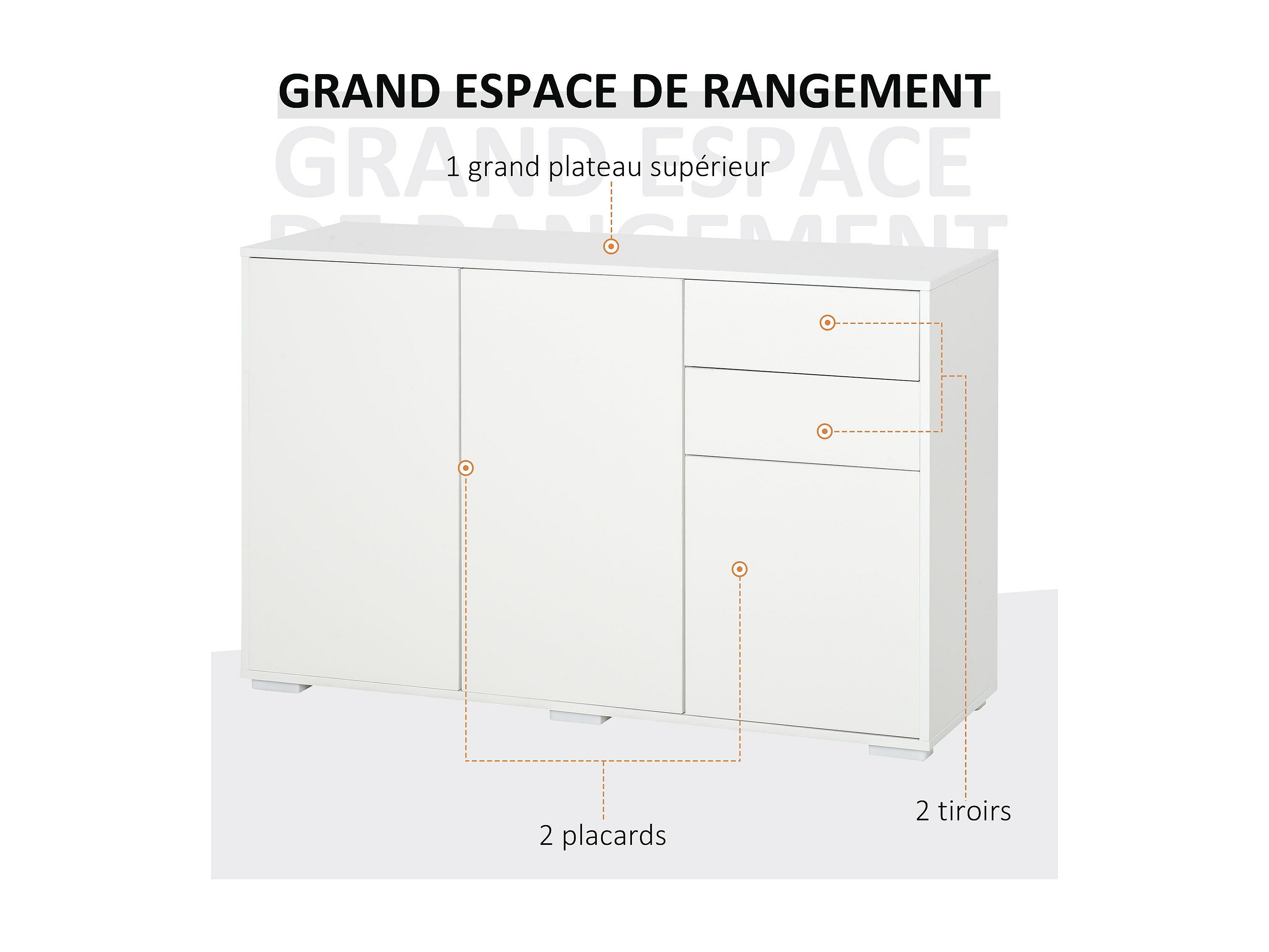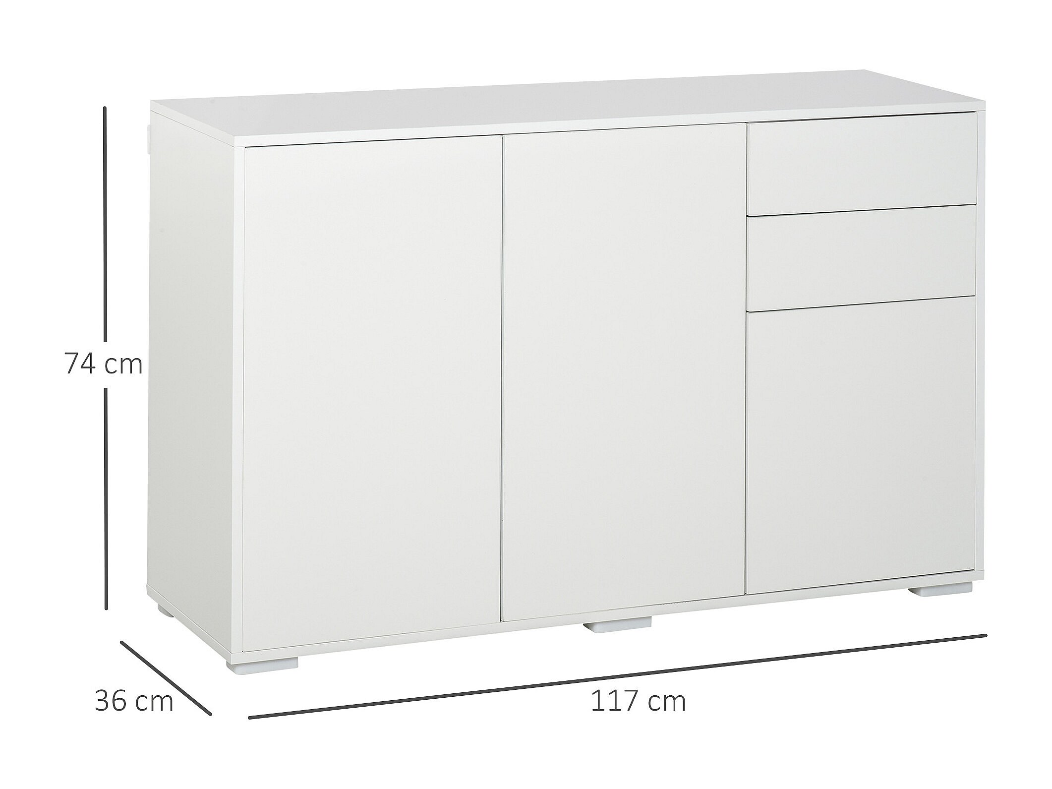 Commode buffet de rangement 2 tiroirs coulissants 3 portes étagère réglable panneaux de particules 117 x 36 x 74 cm blanc
