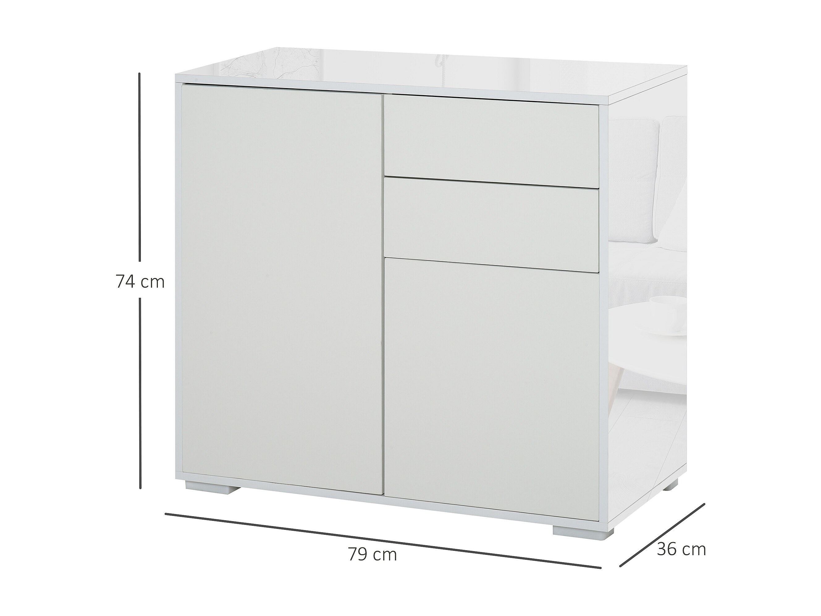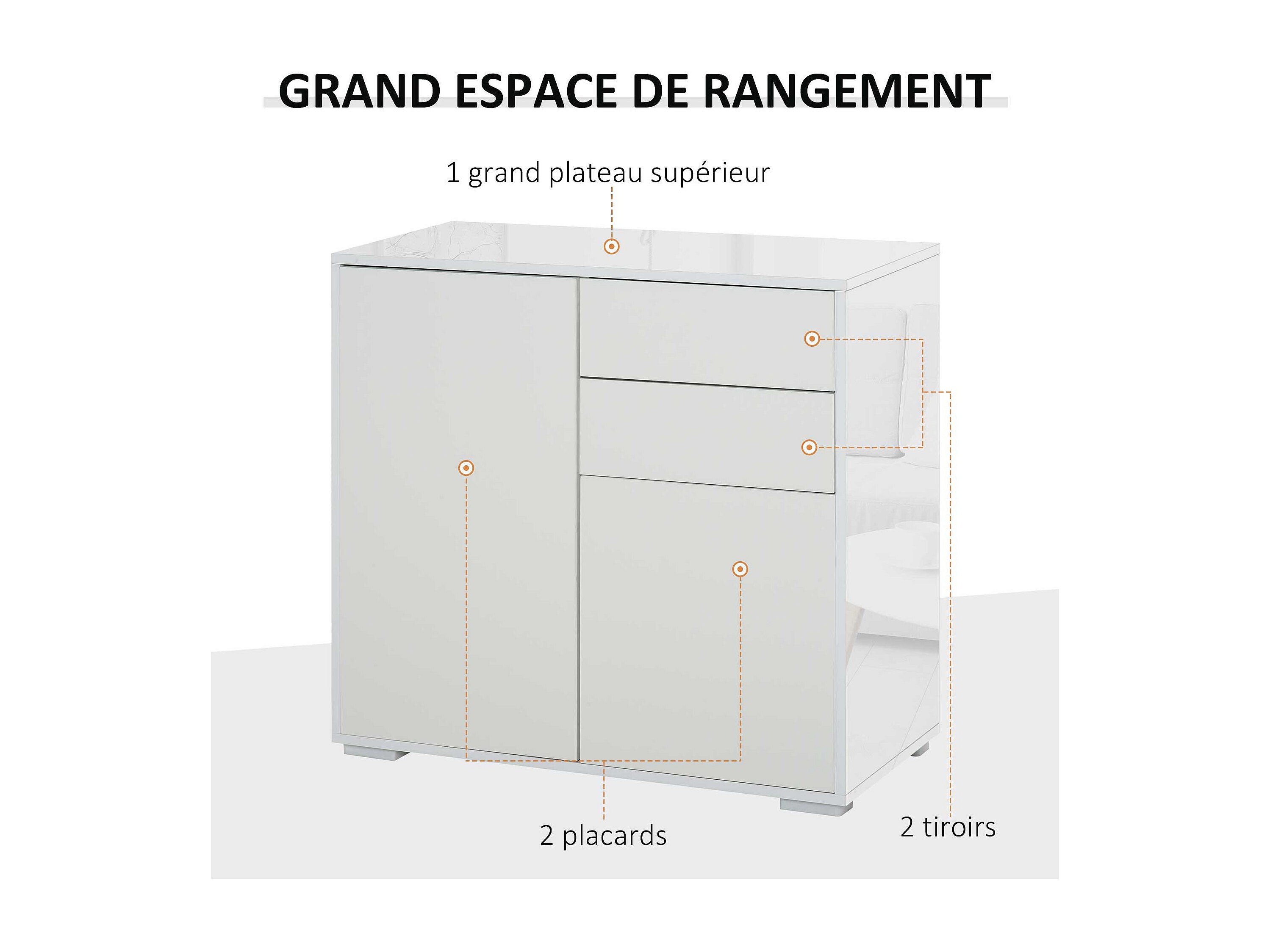 HOMCOM Buffet meuble de rangement 2 tiroirs coulissants 2 placards étagère réglable panneaux particules blanc