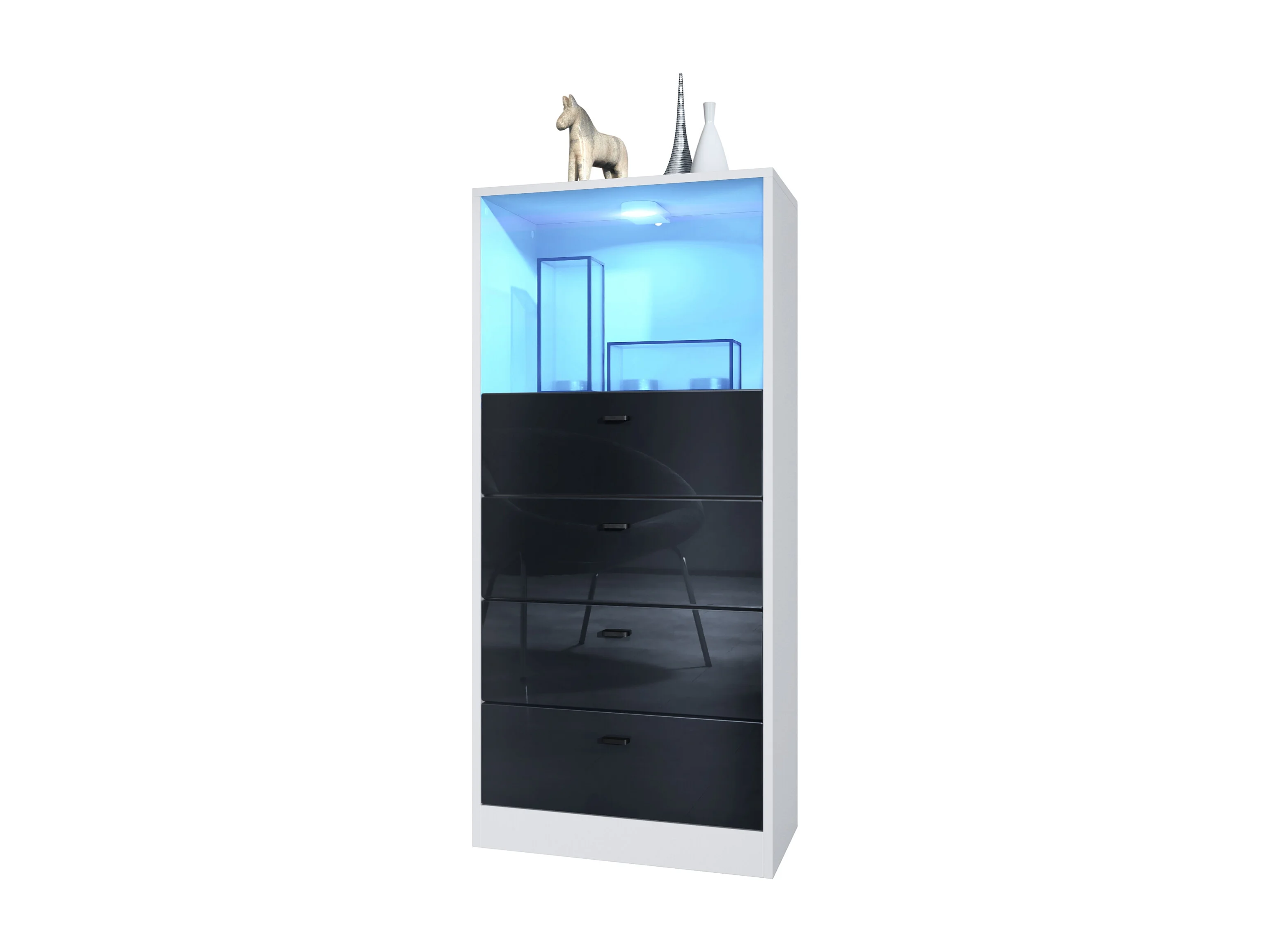 Commode Buffet Pino V3, avec 4 tiroirs & 1 compartiment ouvert, Anthracite mat/Noir haute brillance avec éclairage LED RVB (56 x 125 x 36 cm)