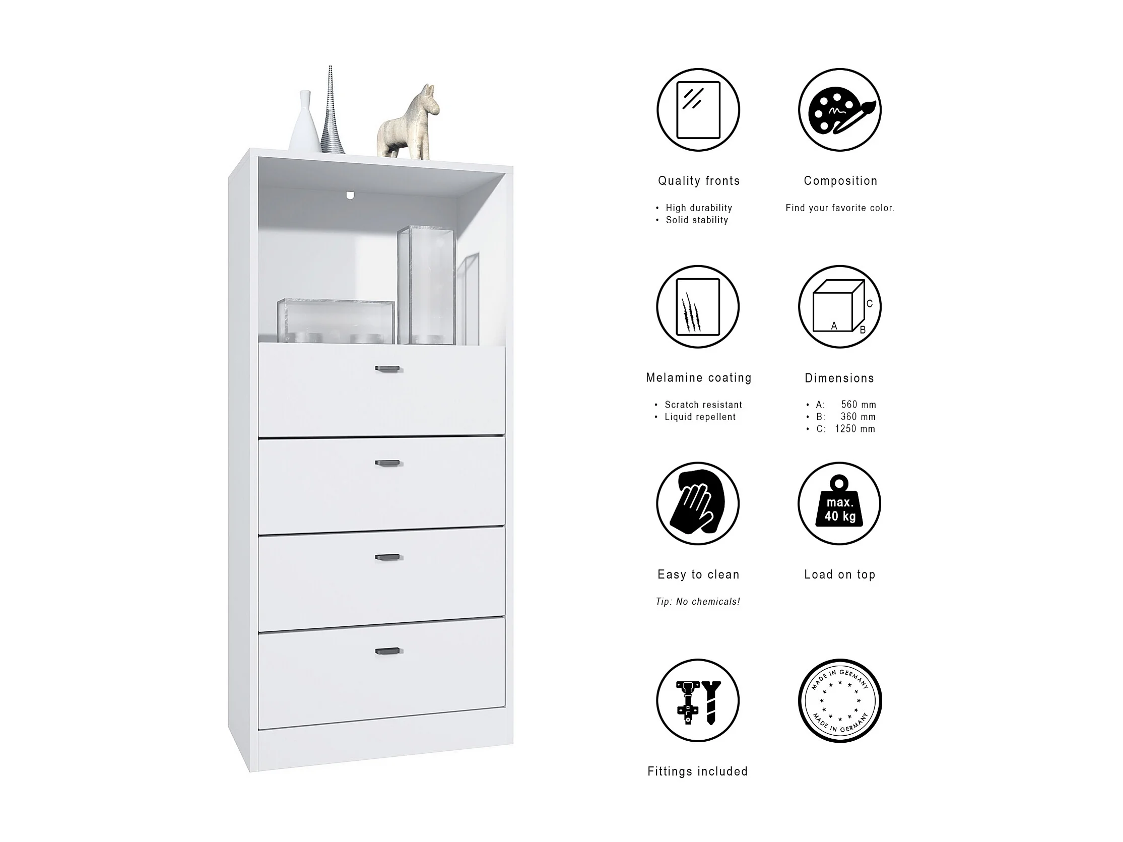 Commode Buffet Pino V3, avec 4 tiroirs & 1 compartiment ouvert, Anthracite mat/undefined avec éclairage LED RVB (56 x 125 x 36 cm)