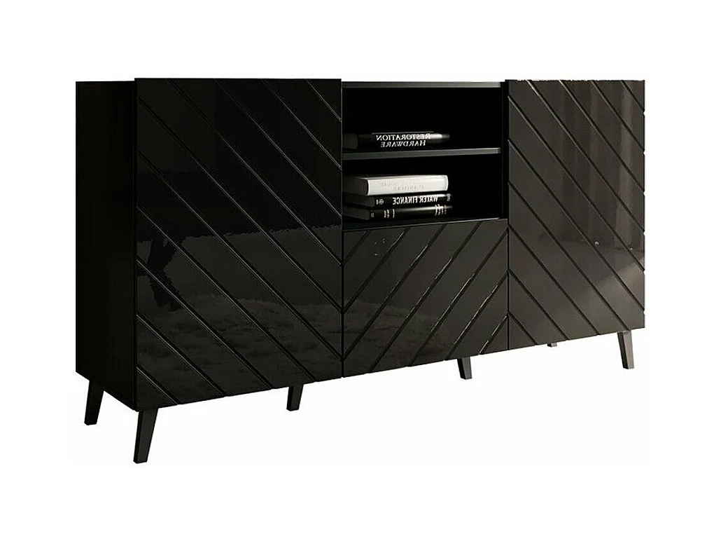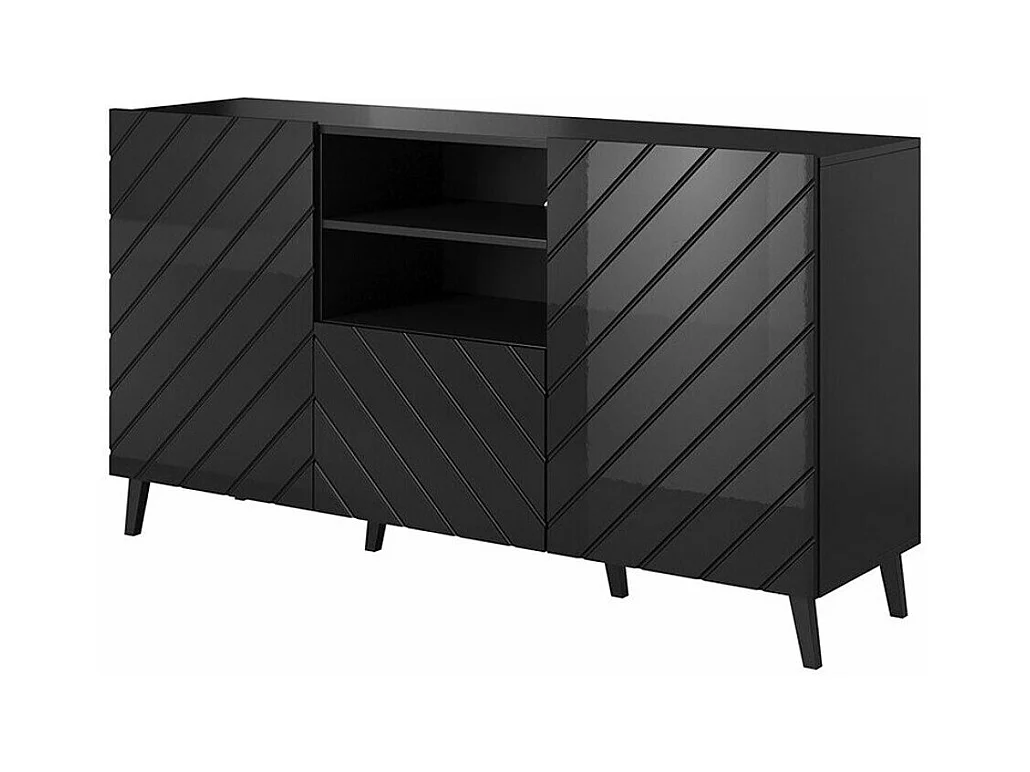 Commode Charlotte 143, Noir brillant|Noir, Avec tiroirs et portes, Nombre de tiroirs: 1,