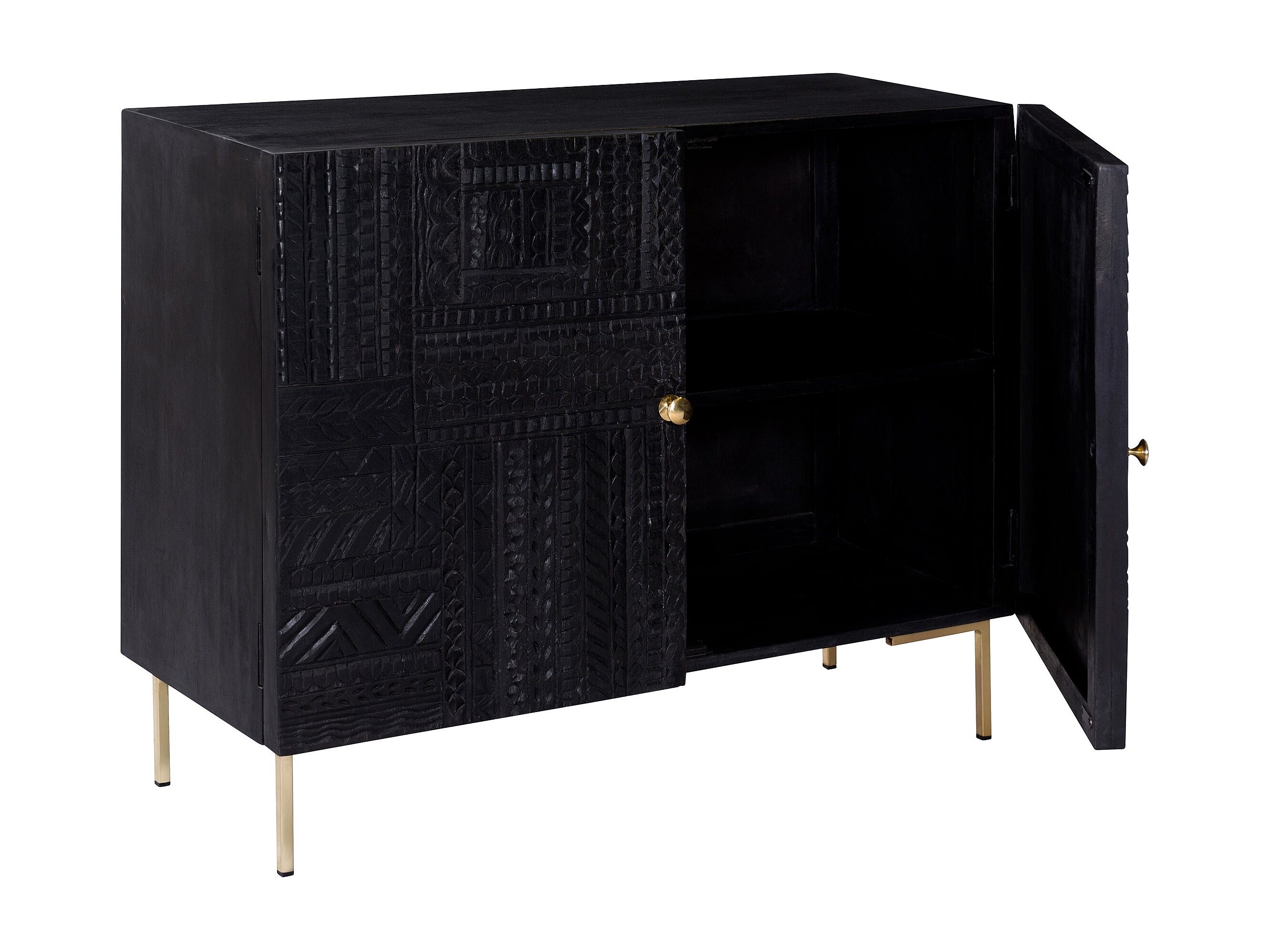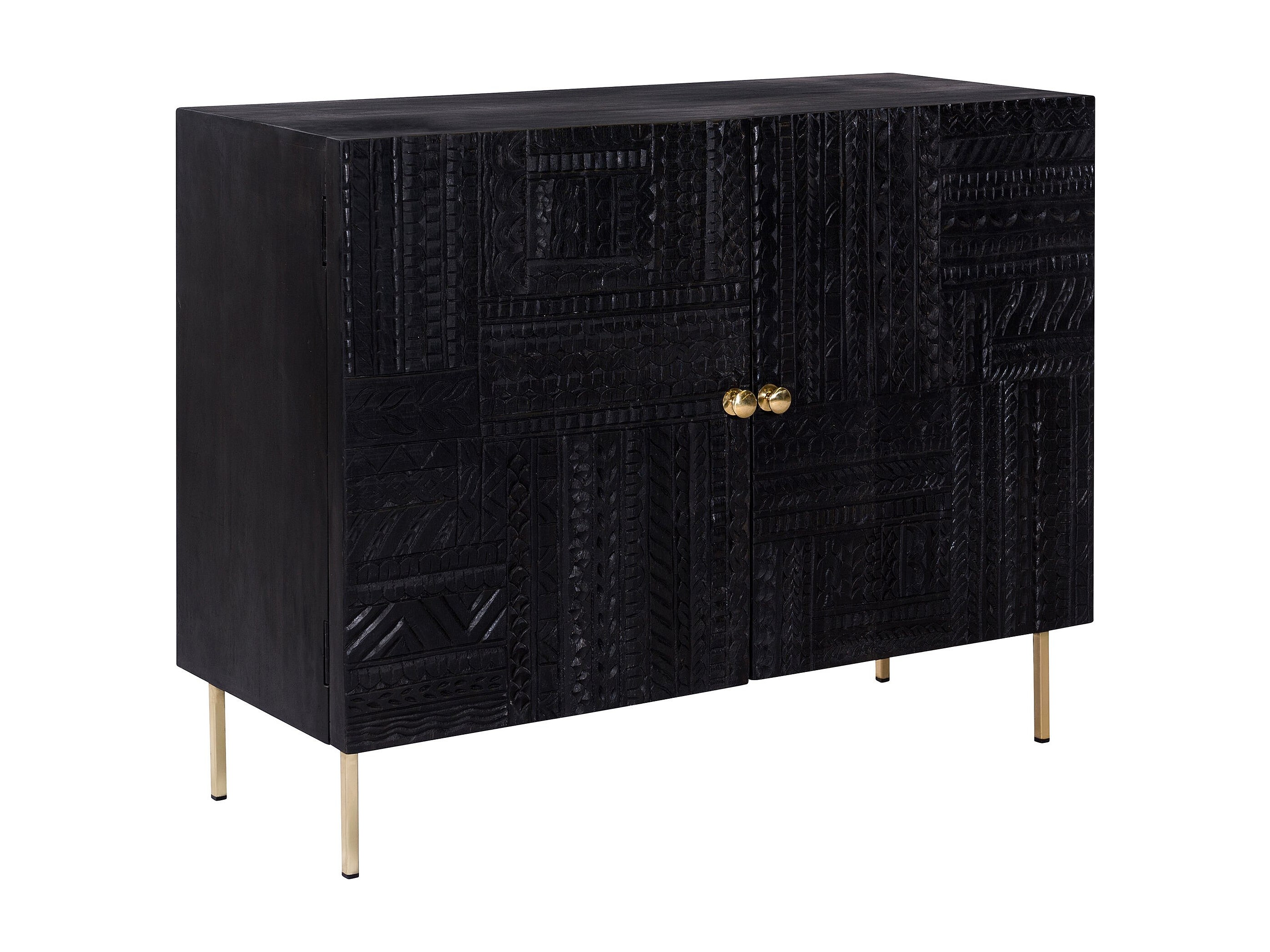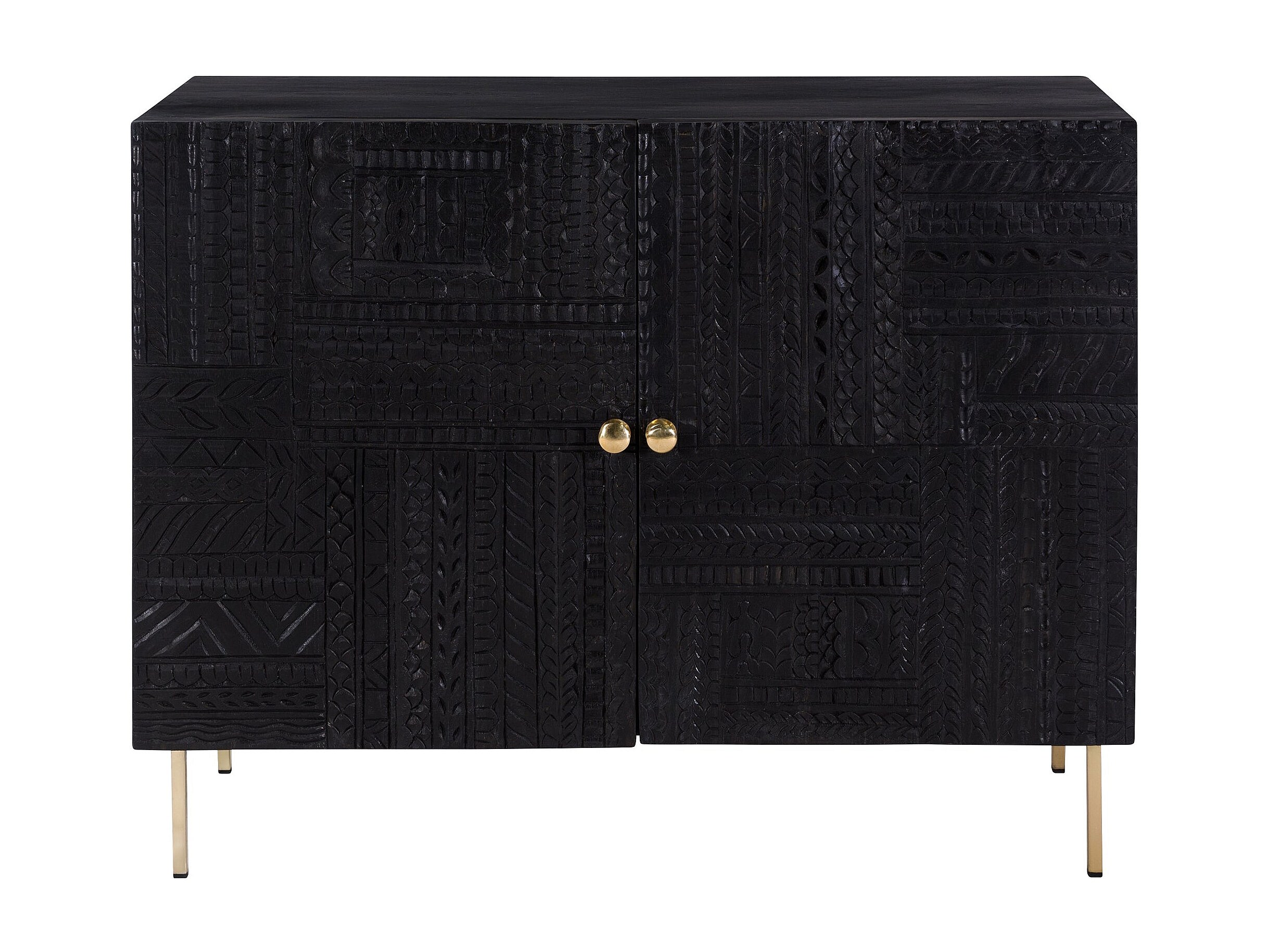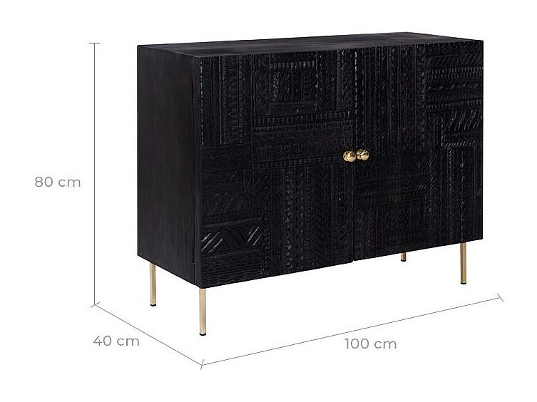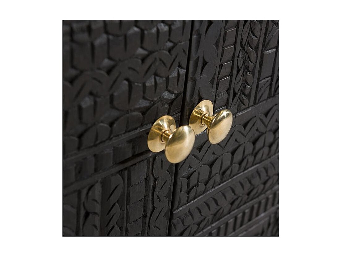 Commode 2 portes en bois gravé noir et métal doré - Chimane