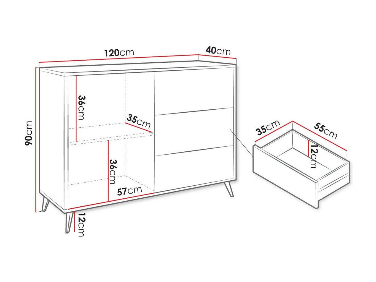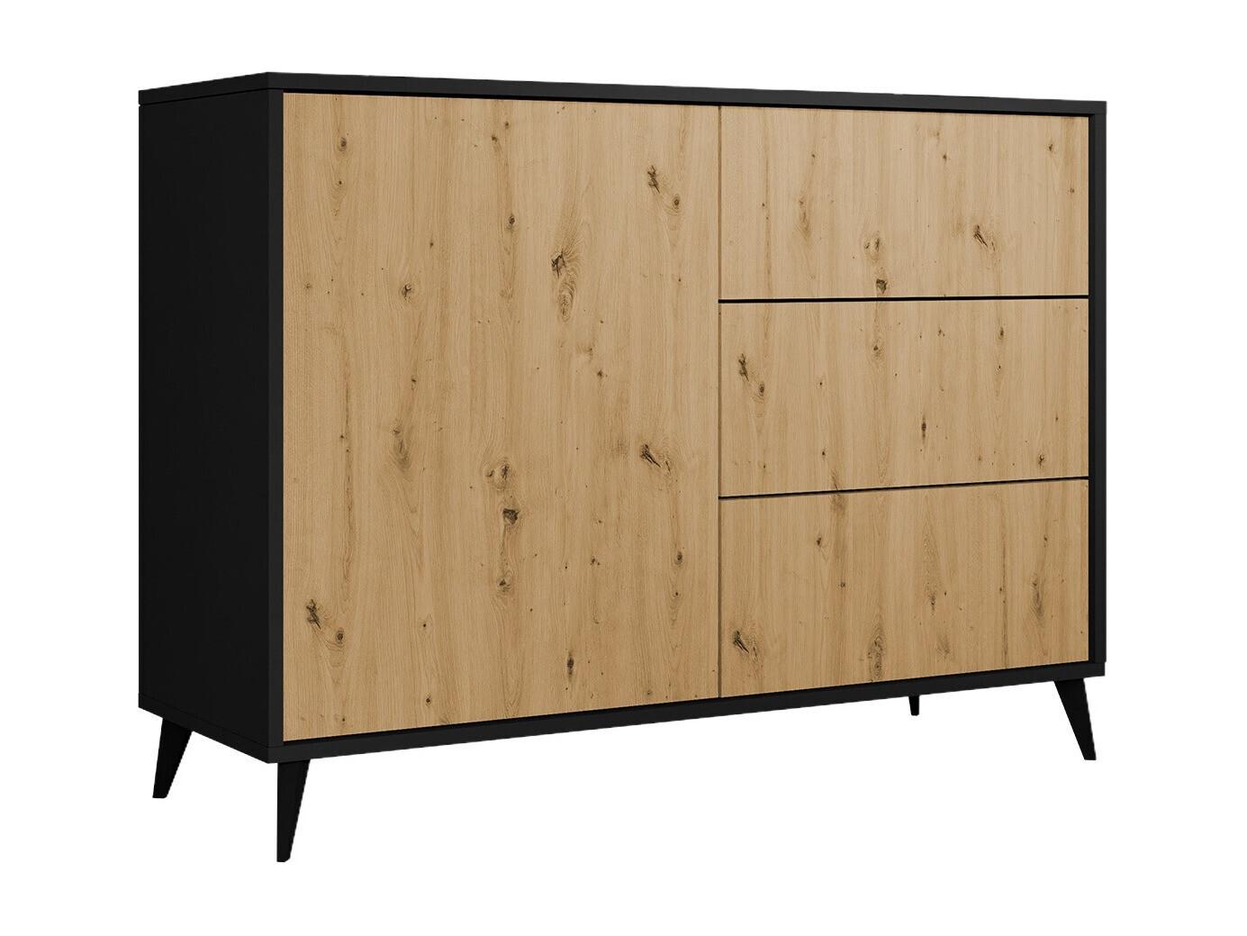 Commode Comfivo Lomcali 100, Noir|Chêne Artisan, Avec tiroirs et portes, 90x120x40cm