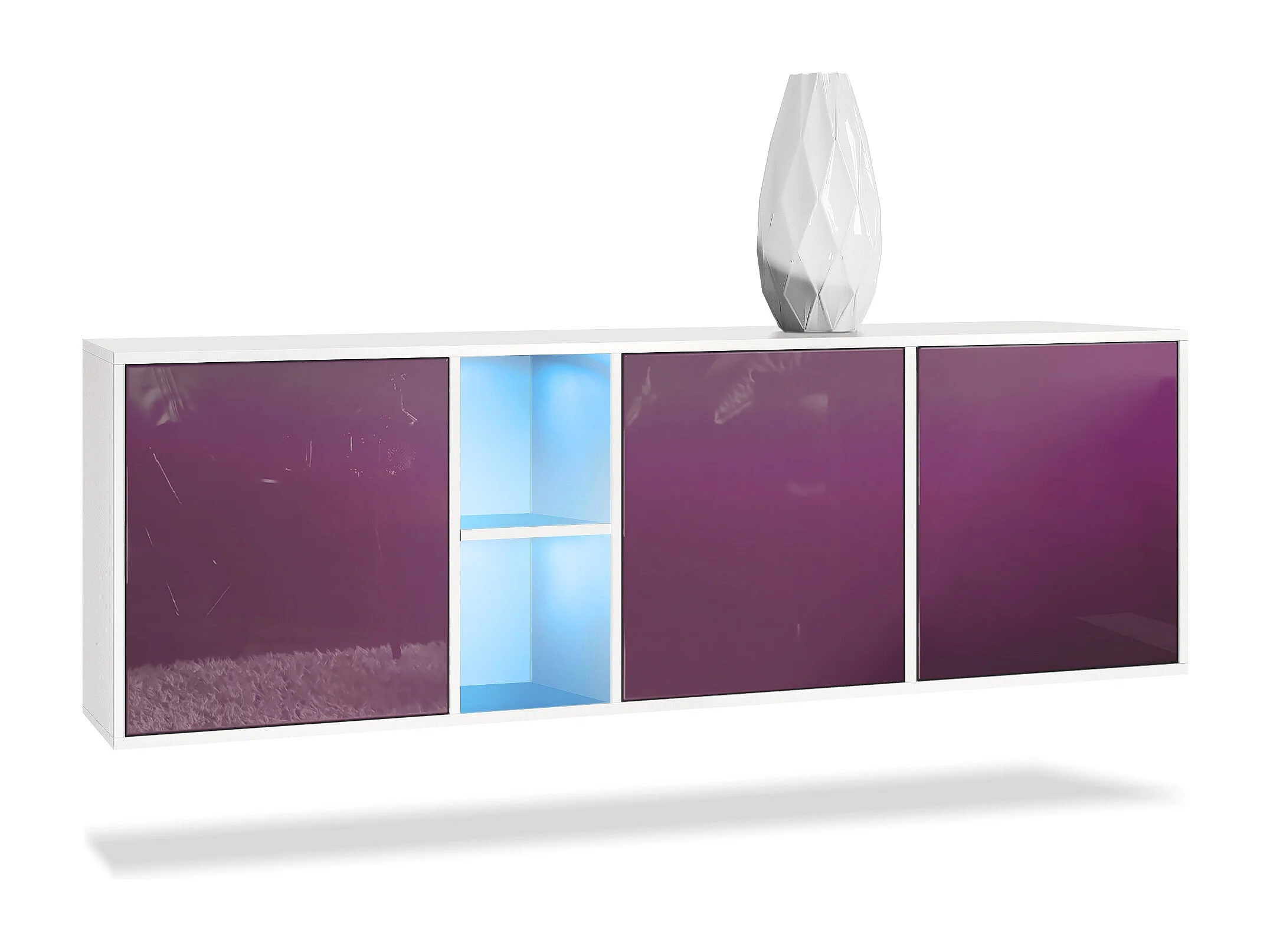 Commode Cuba - blanc mat/mûre haute brillance y compris LED - Buffet moderne pour votre salon - (LxHxP) 182x53x35 cm
