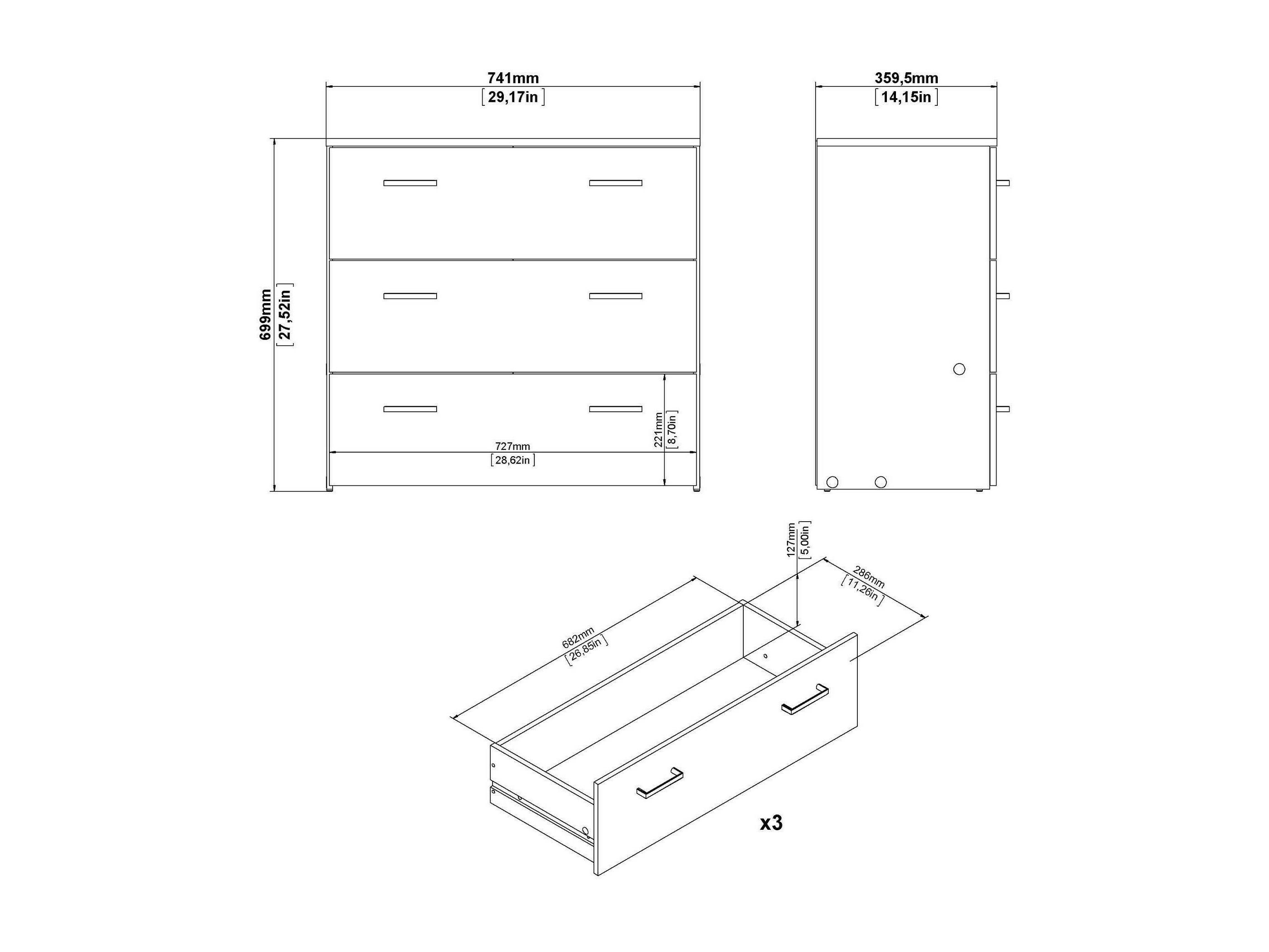 Commode Drenaul, Commode polyvalente, Commode de chambre, Meuble avec tiroirs, 74x36 h70 cm, Chêne