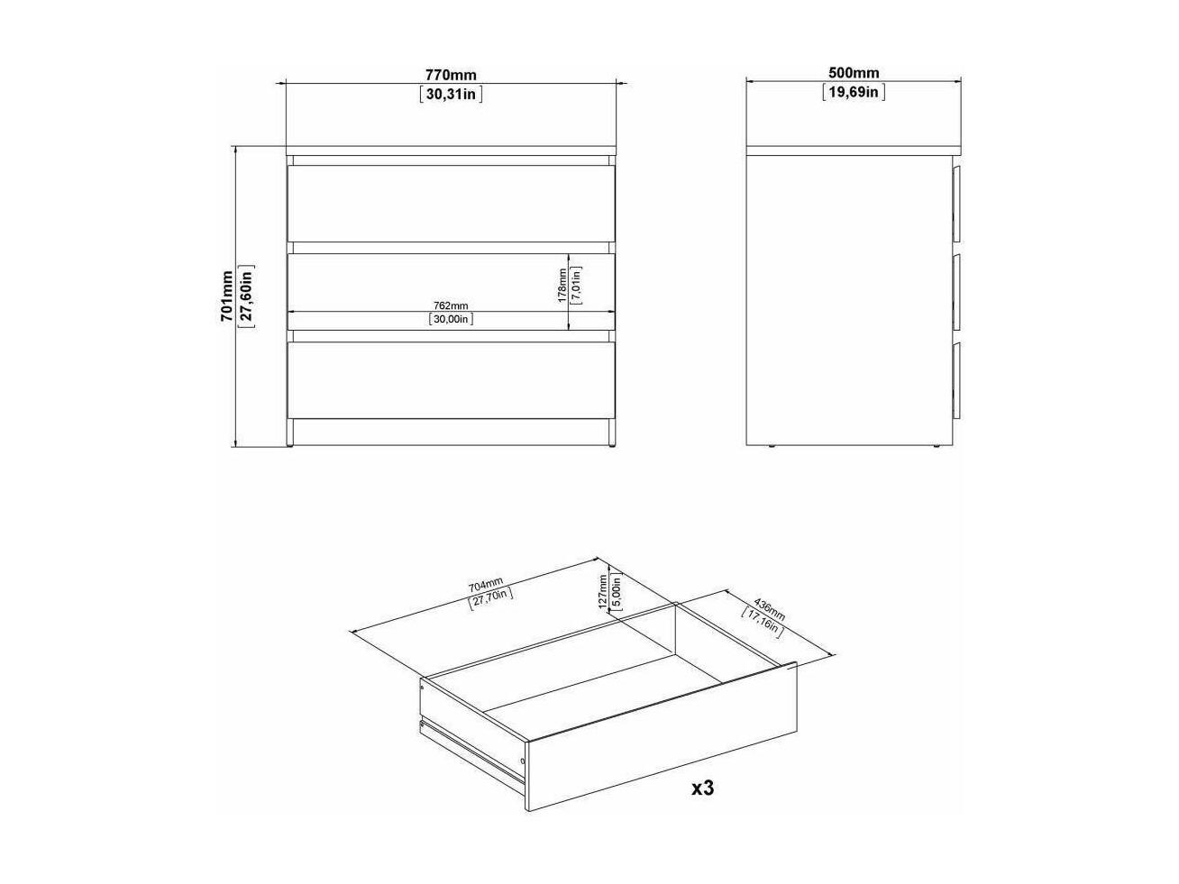 Commode Drenold, Commode polyvalente, Commode de chambre, Meuble avec tiroirs, 77x50 h70 cm, Blanc