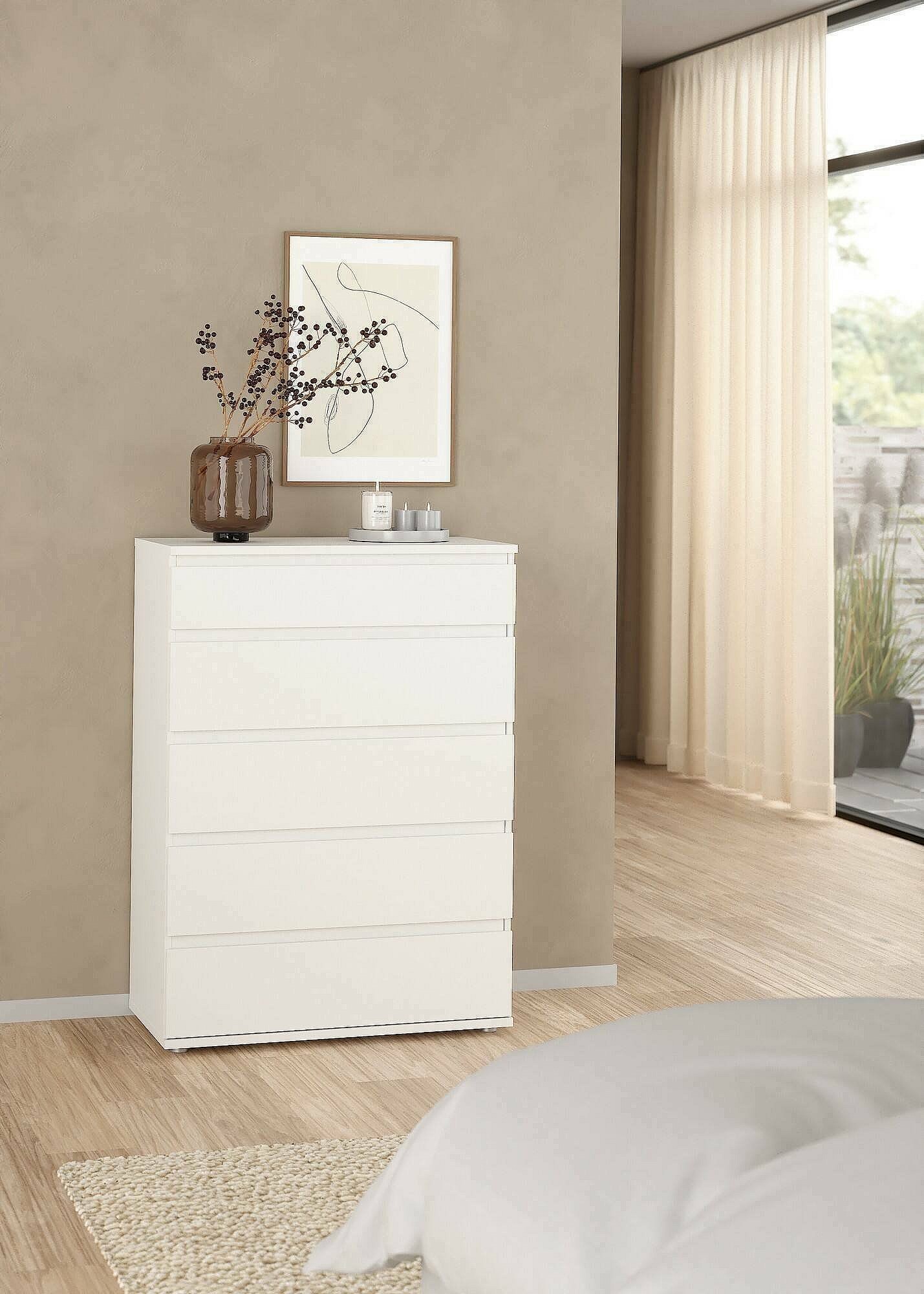 Commode Dricc, Commode polyvalente, Commode de chambre, Meuble avec tiroirs, 77x40 h107 cm, Blanc