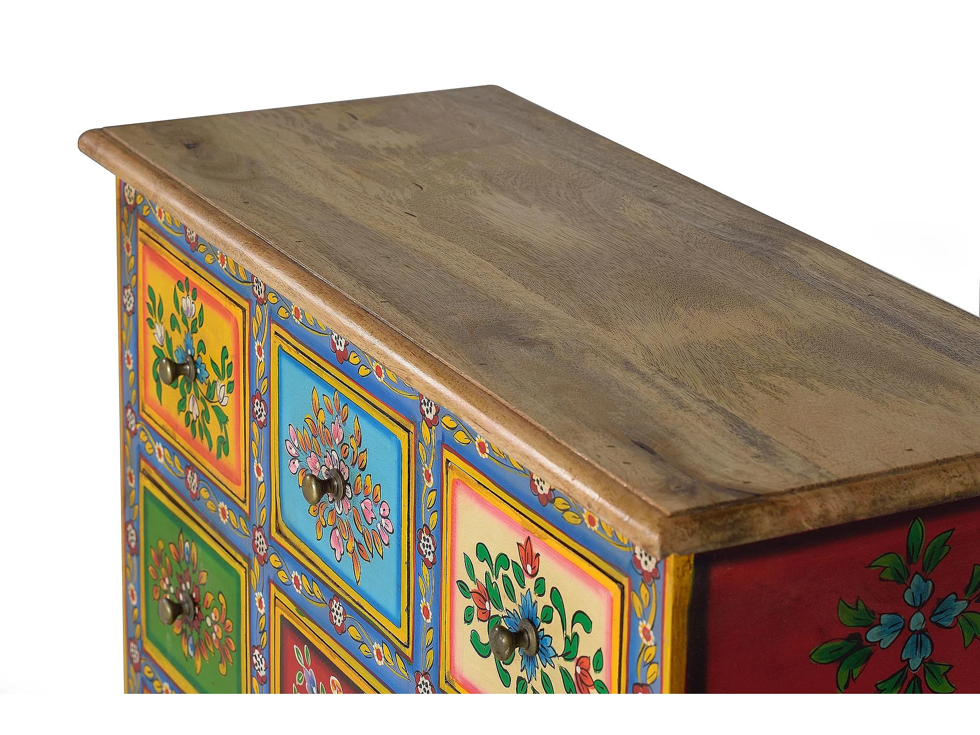 Commode en bois de manguier avec détails multicolores peints à la main