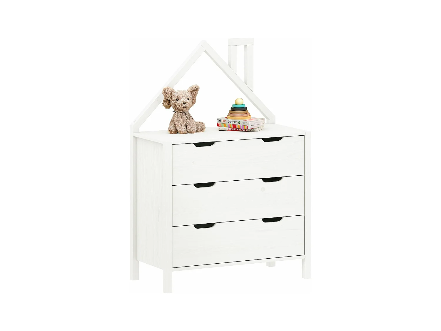 Commode Enfant ELANO en Bois Massif blanc avec 3 Tiroirs de Rangement, 84 x 120 x 41 cm, Meuble Chambre