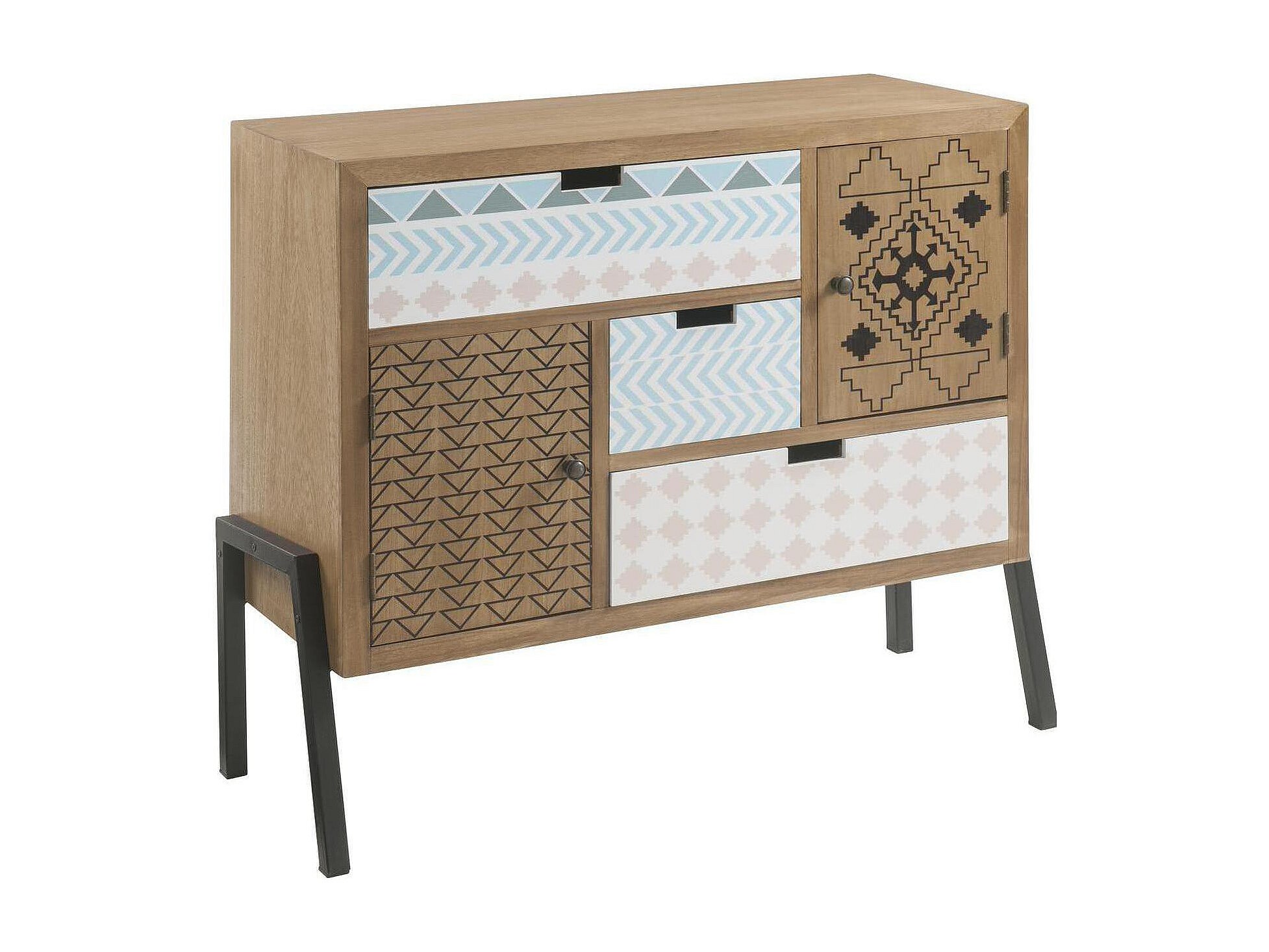 Console 2 Portes & 3 Tiroirs "Damayo" 85cm Marron