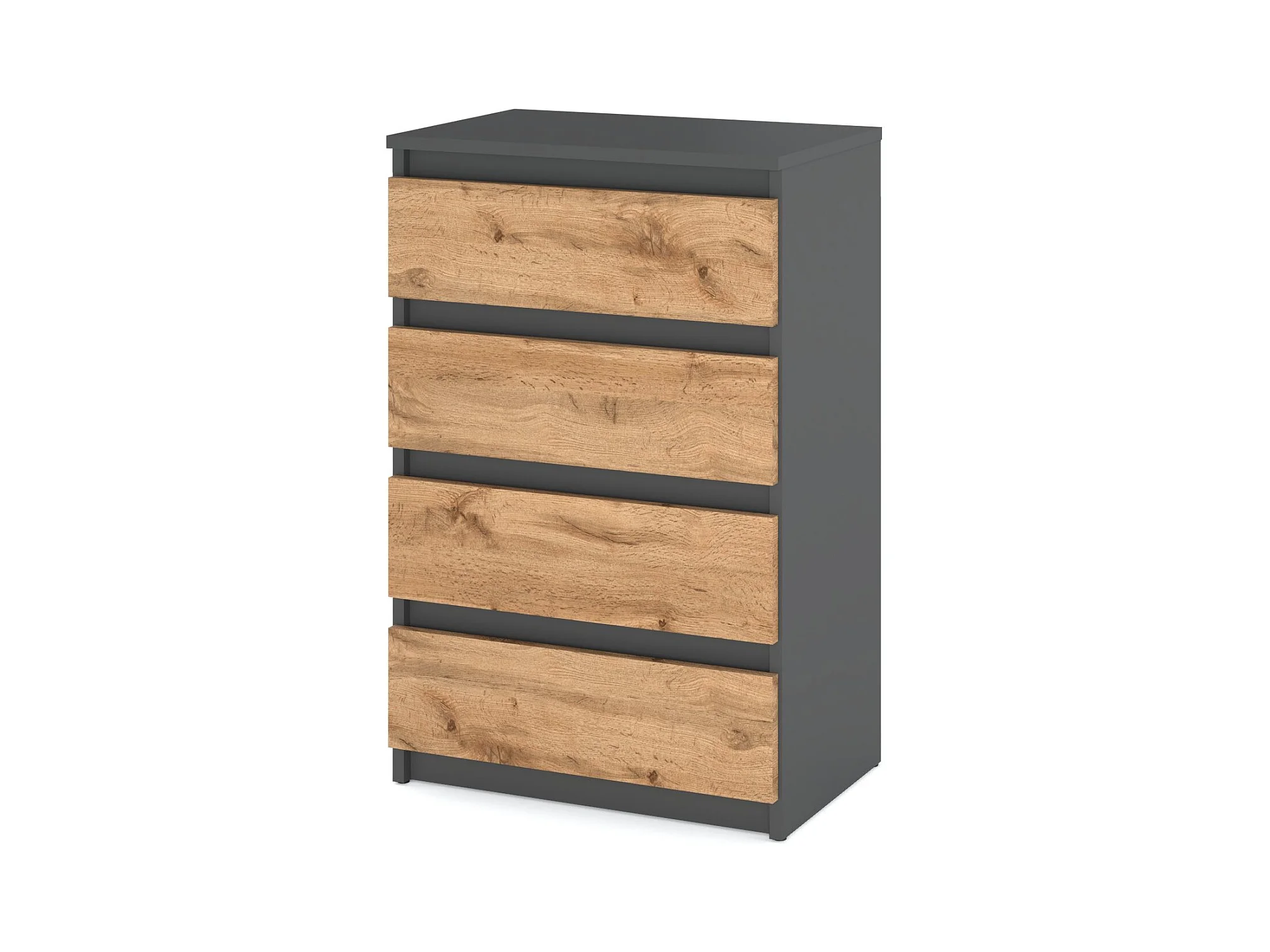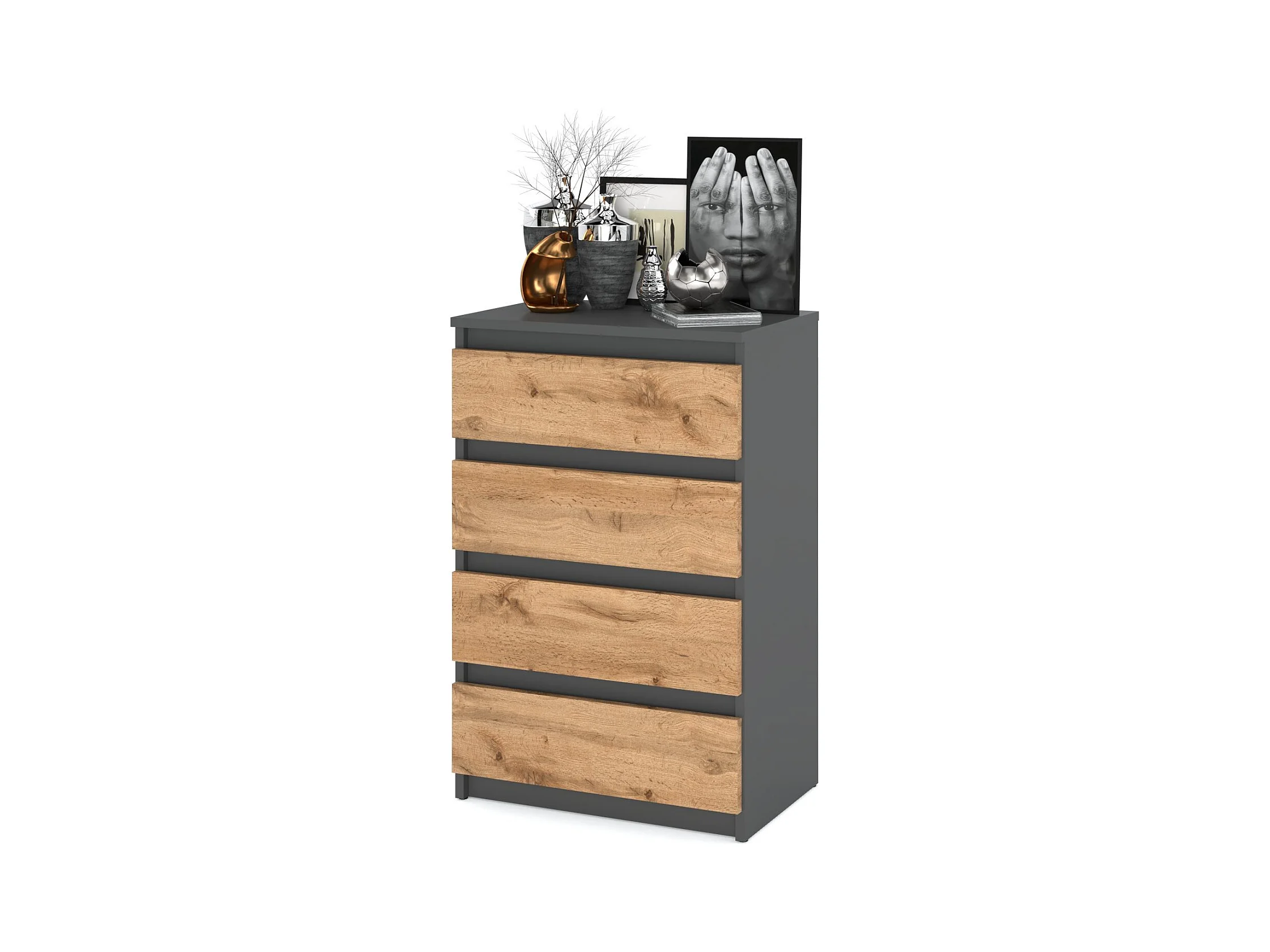 Commode AKORD K120 Chêne Artisan 120 cm 4 tiroirs façade Gris Graphite 120x40x55 cm