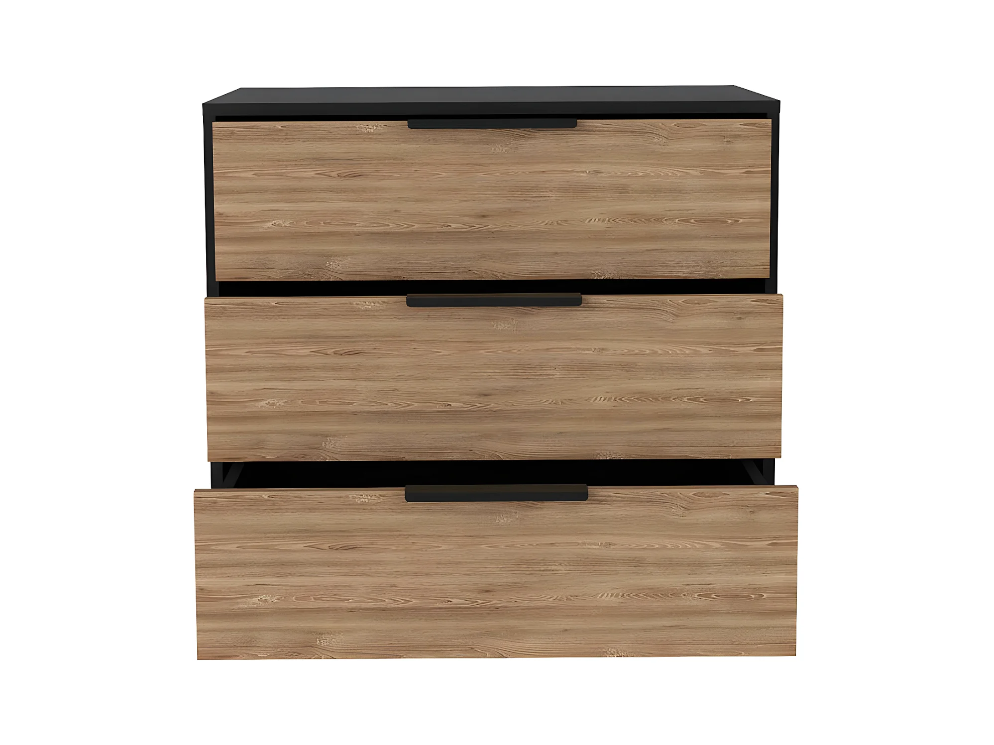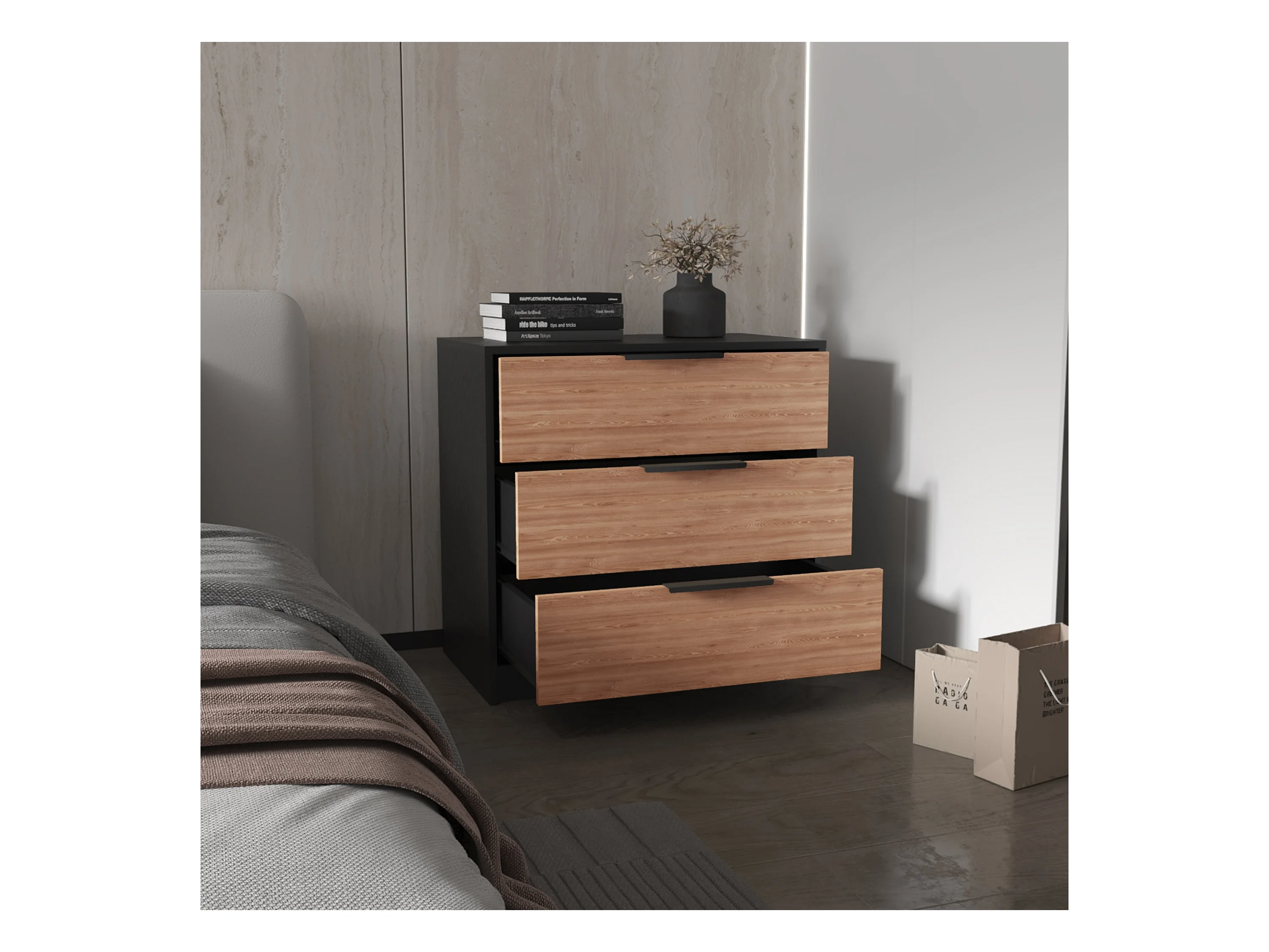 Commode Melia en mélamine avec 3 tiroirs avec rails métalliques, multicolore, 75.7 cm X 80 cm X 39.8 cm