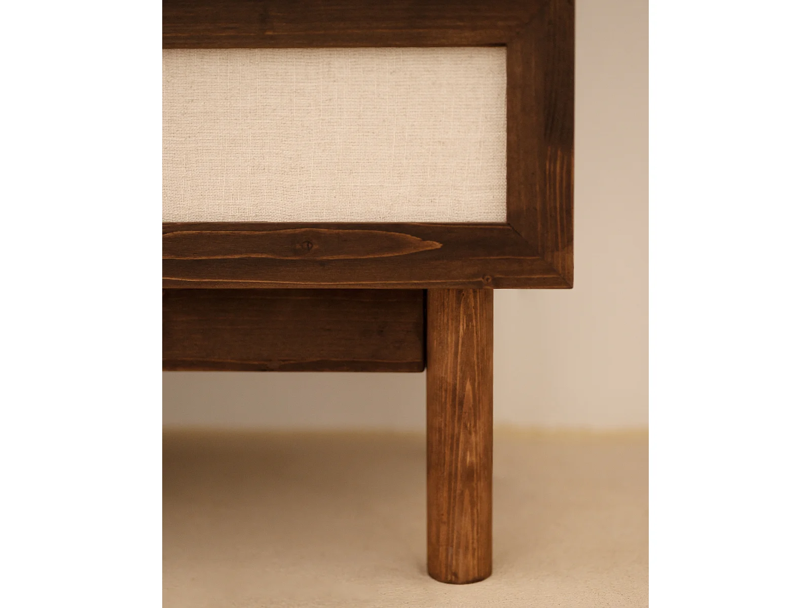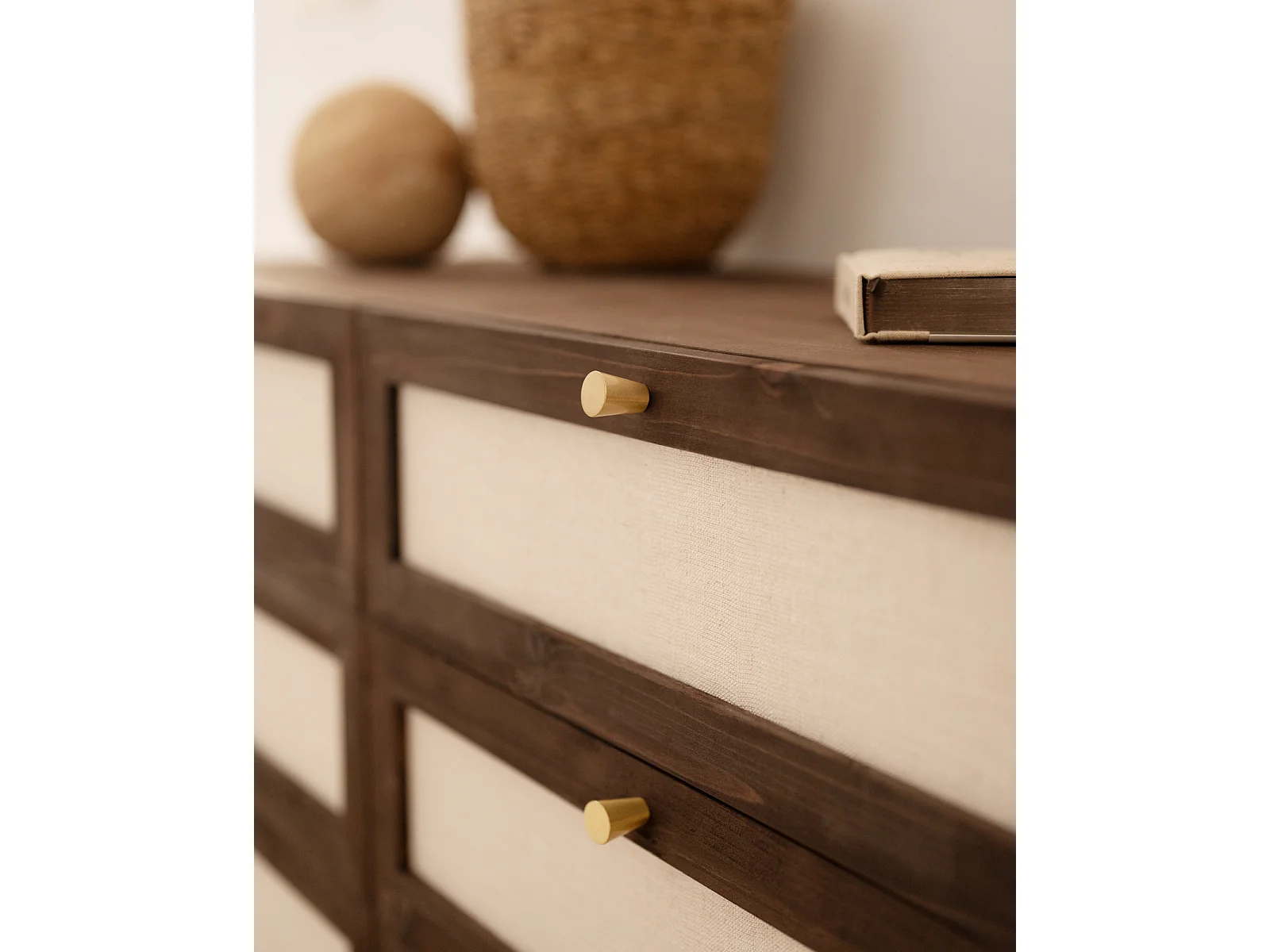 Commode en bois de sapin et lin à six tiroirs marron 76x120cm - LINEN - DECOWOOD