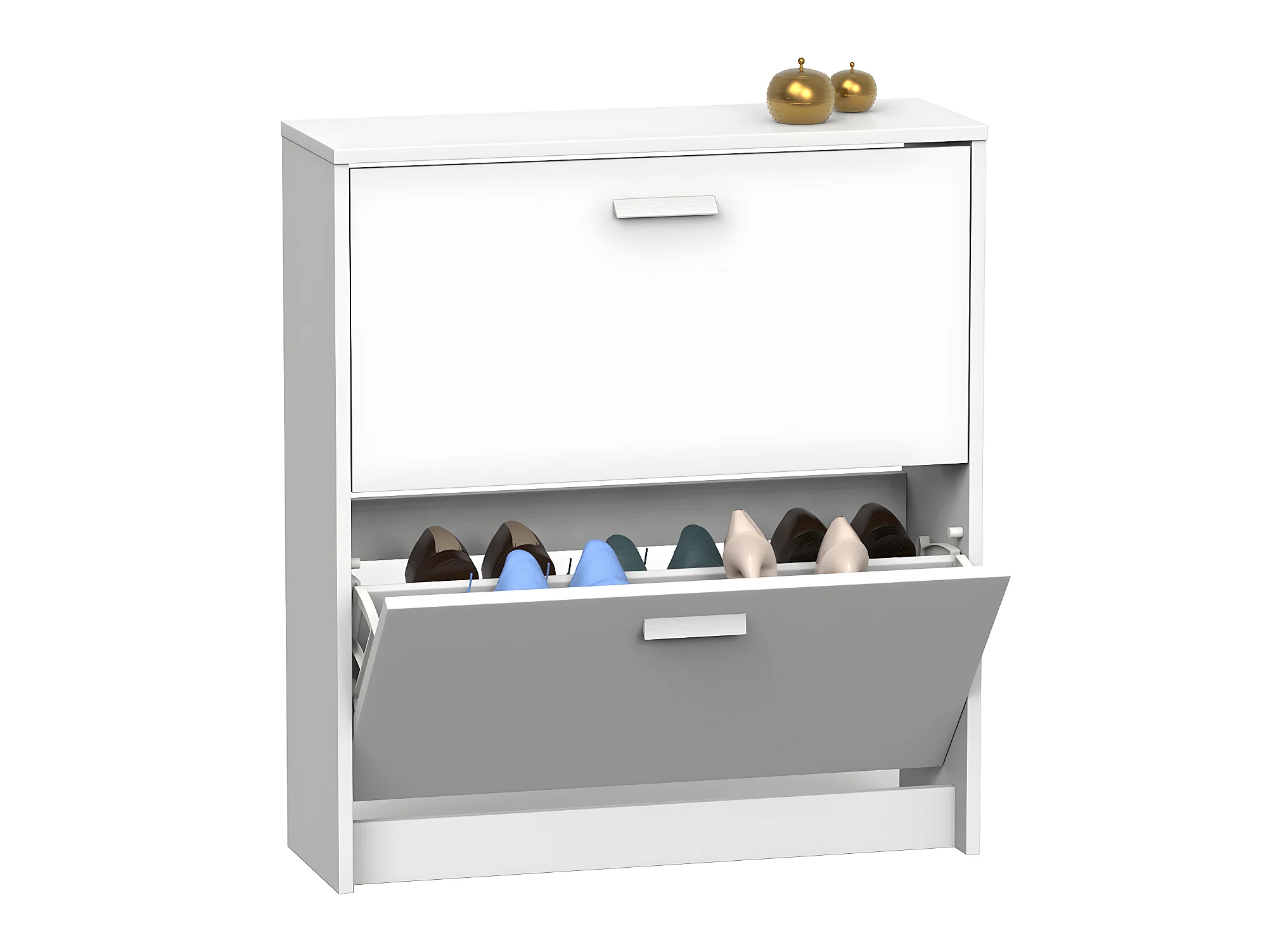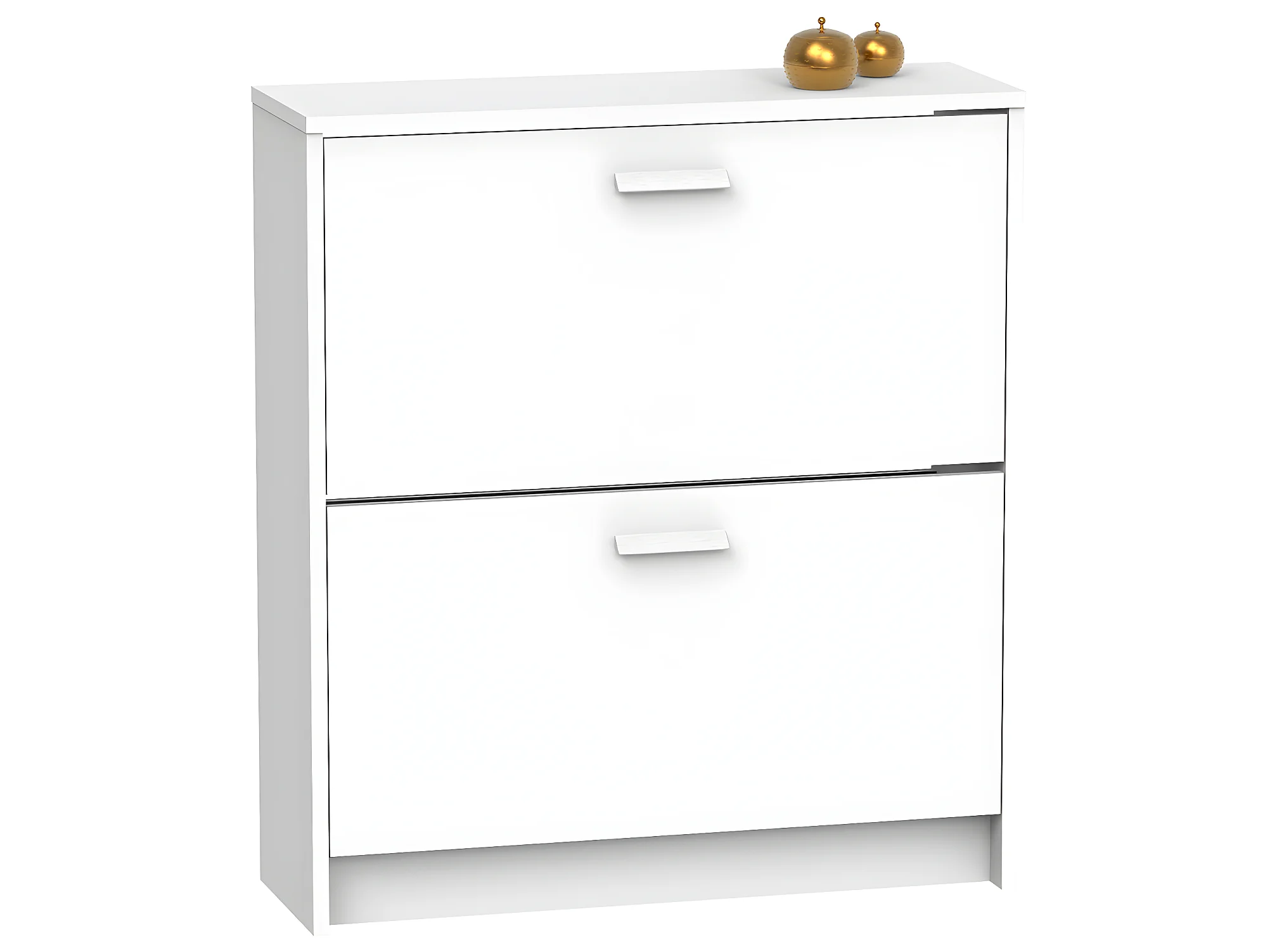 Commode Meuble à chaussures 2 portes coloris blanc - Hauteur 82 x Longueur 74 x Profondeur 25 cm