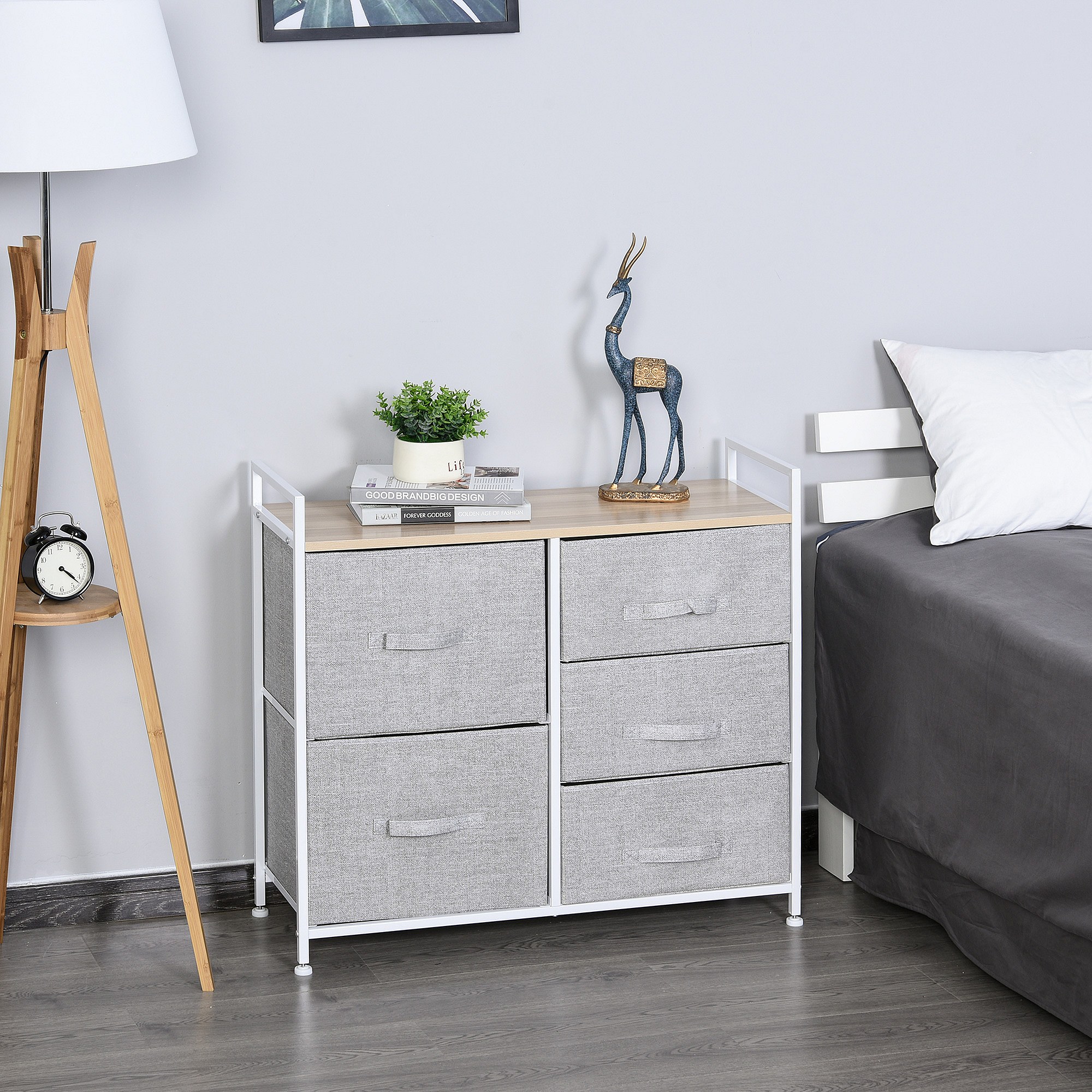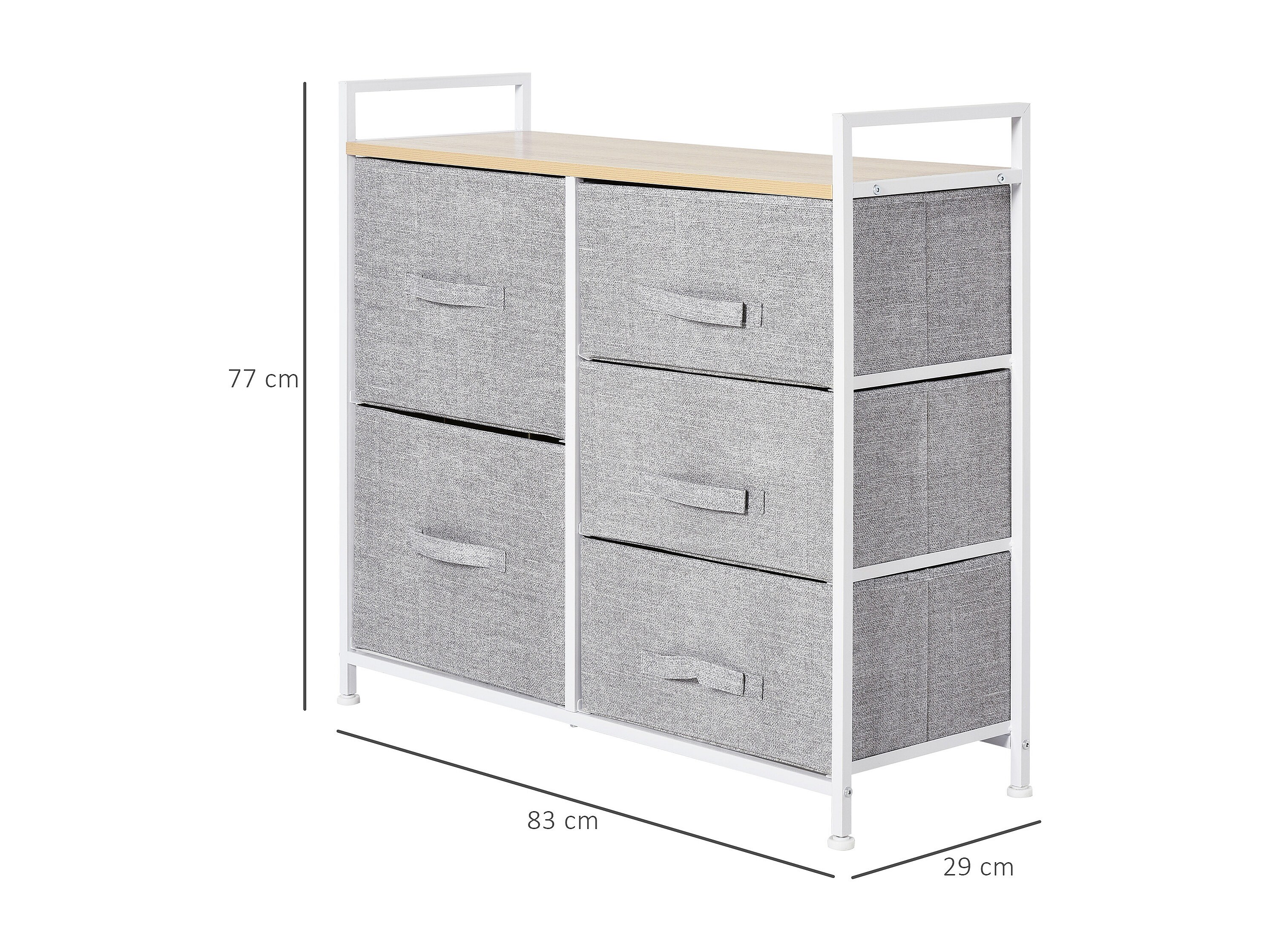 Commode Meuble de Rangement 5 Tiroirs Amovibles pour Chambre Salon Cuisine 83 x 29 x 77 cm Gris