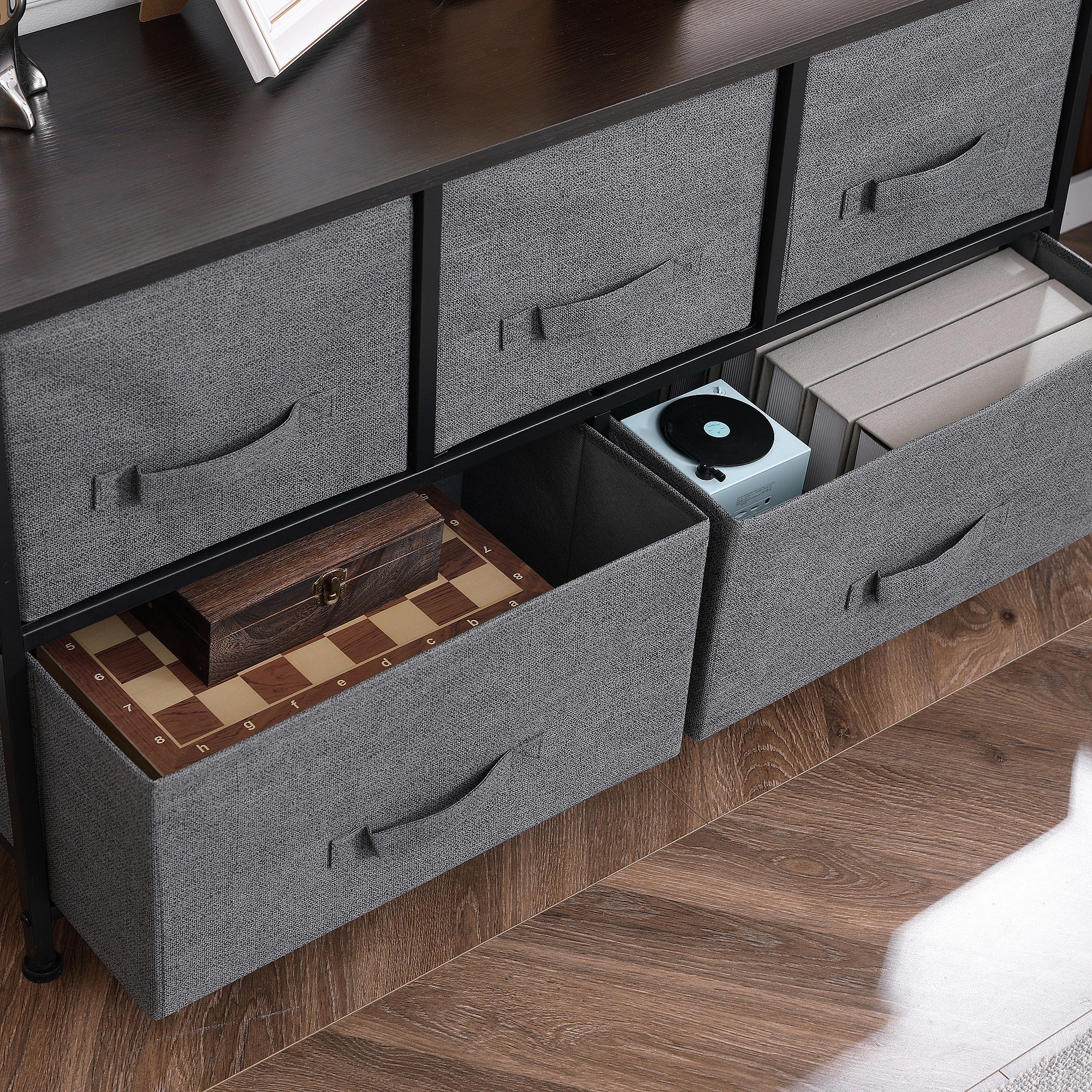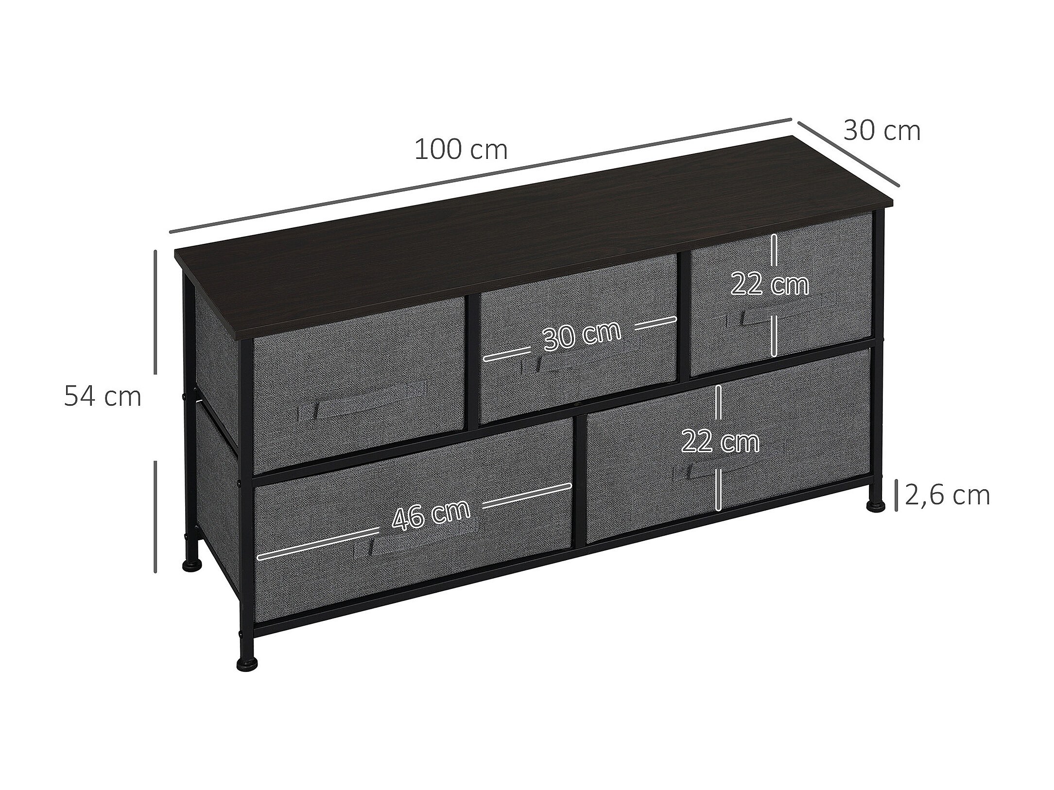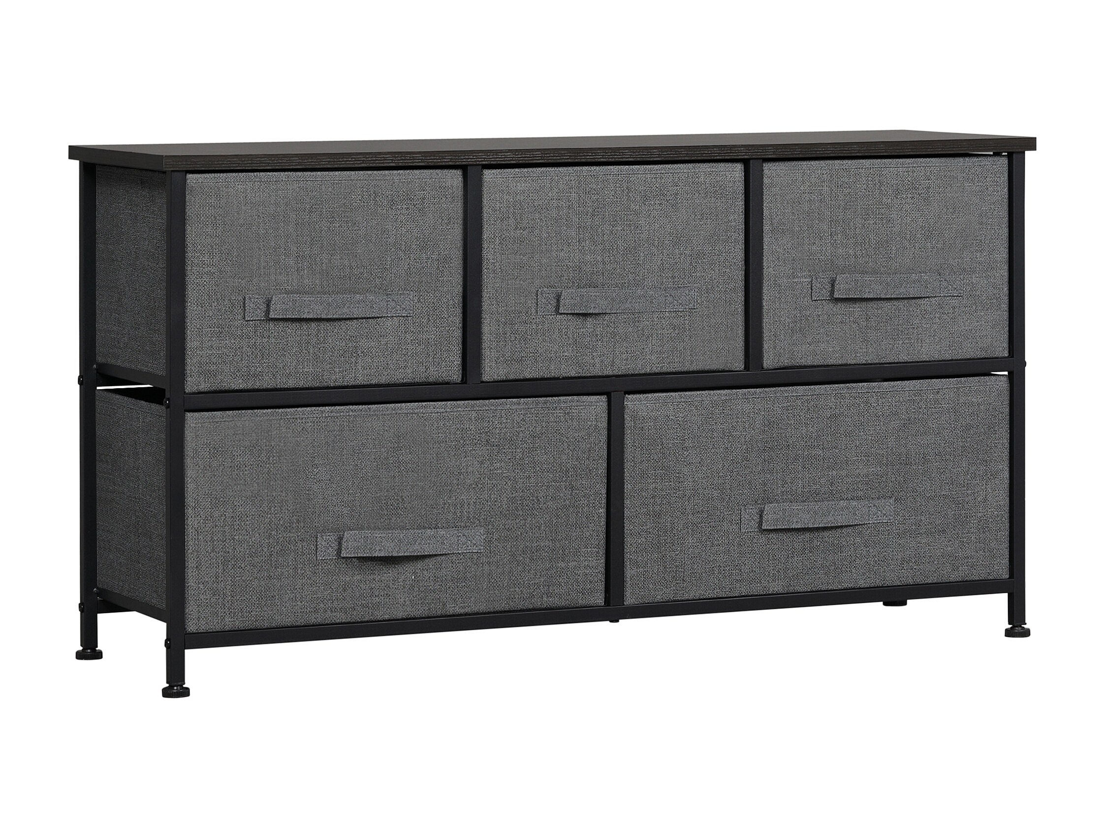 Commode meuble de rangement 5 tiroirs non-tissés anthracite structure métal noir plateau MDF aspect bois
