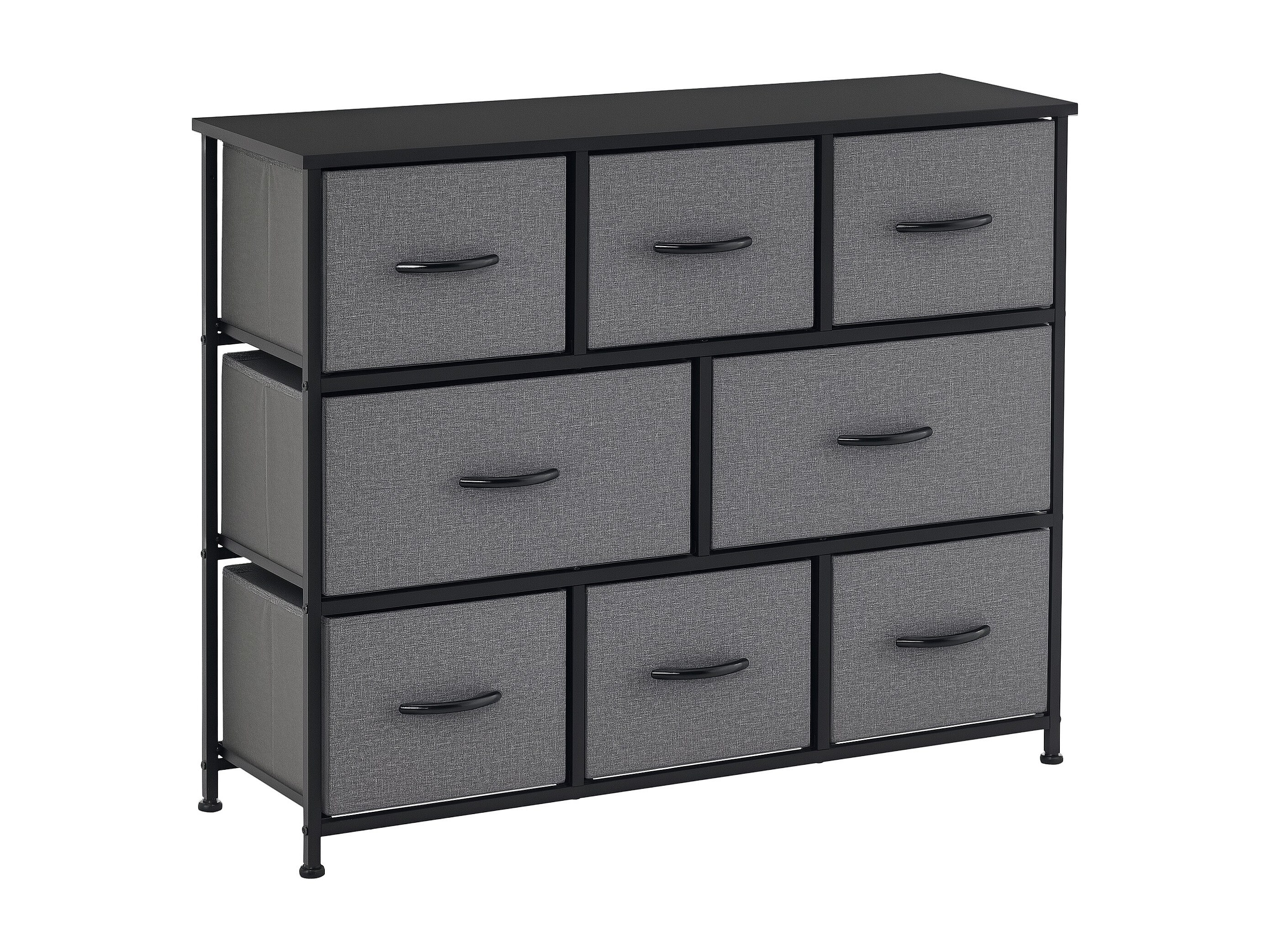 Commode meuble de rangement 8 tiroirs - dim. 100L x 30l x 78H cm - structure acier noir tissu pliant gris
