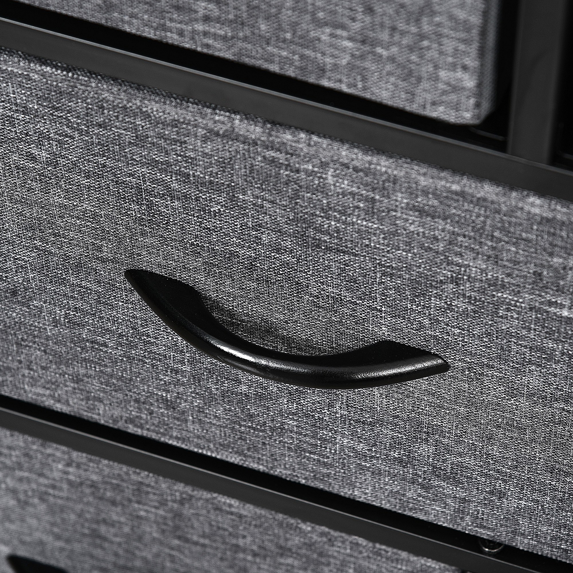 Meuble de rangement commode 7 tiroirs plateau acier MDF noir non tissé gris