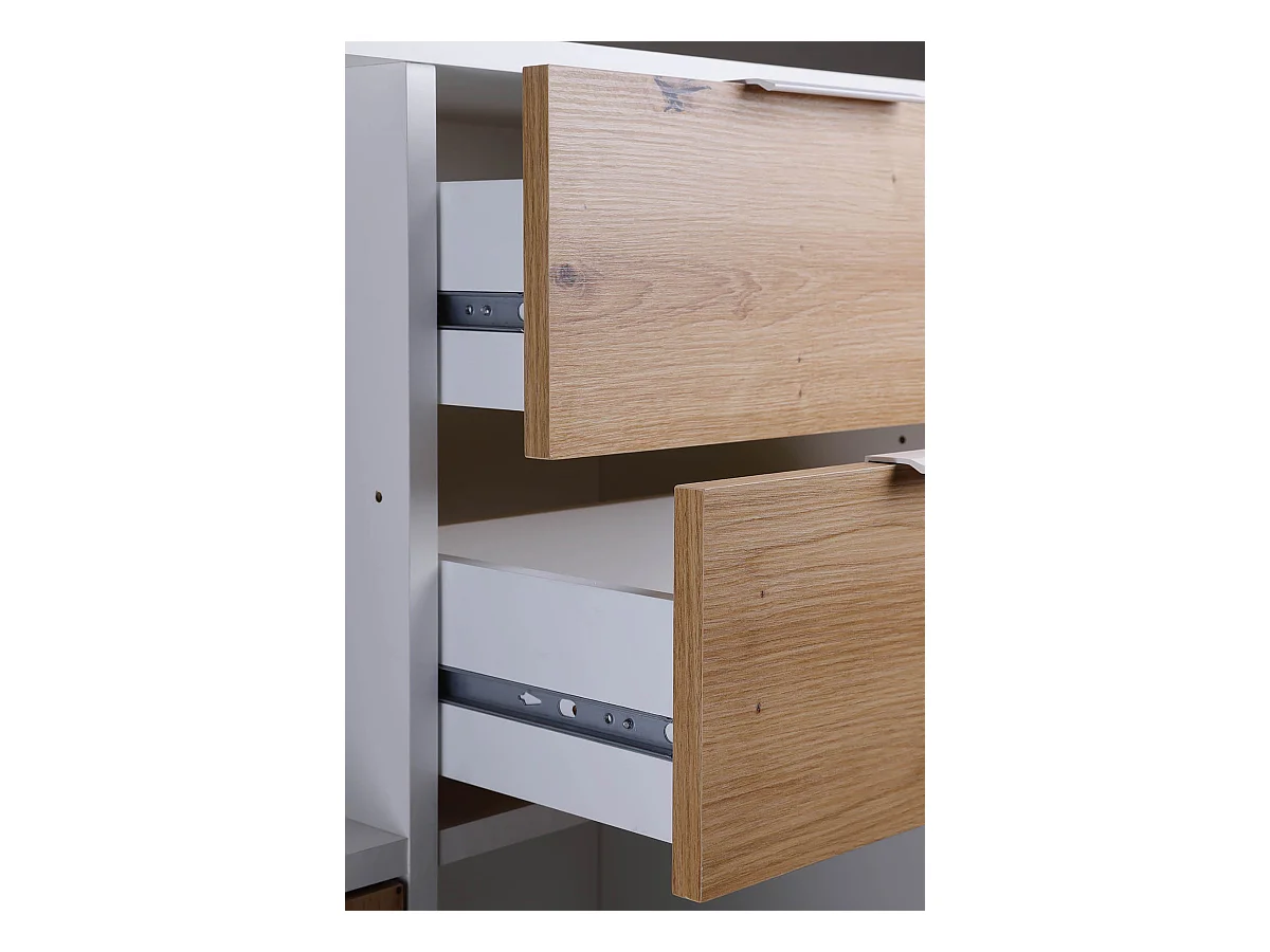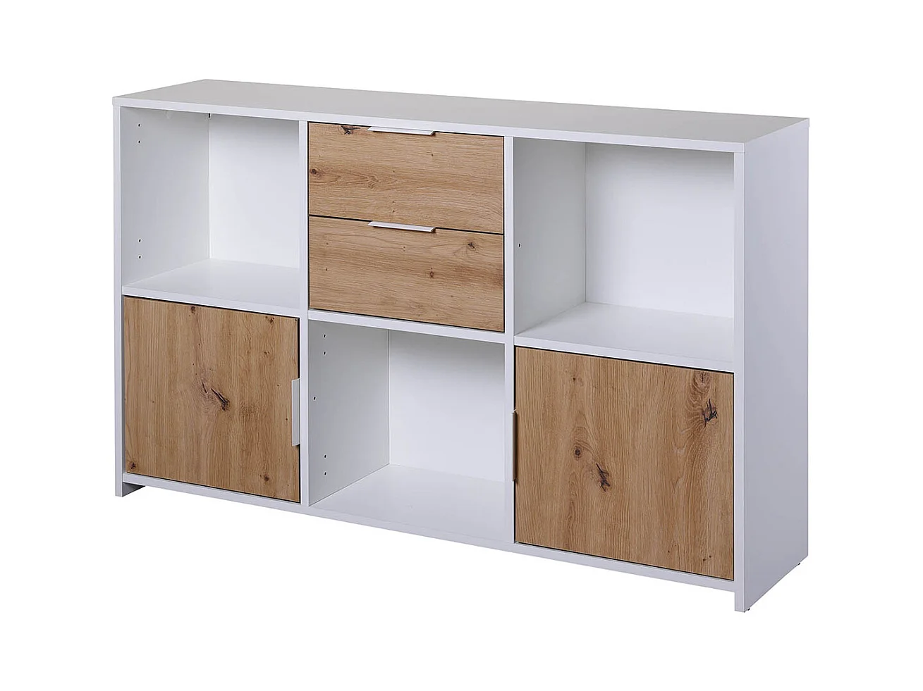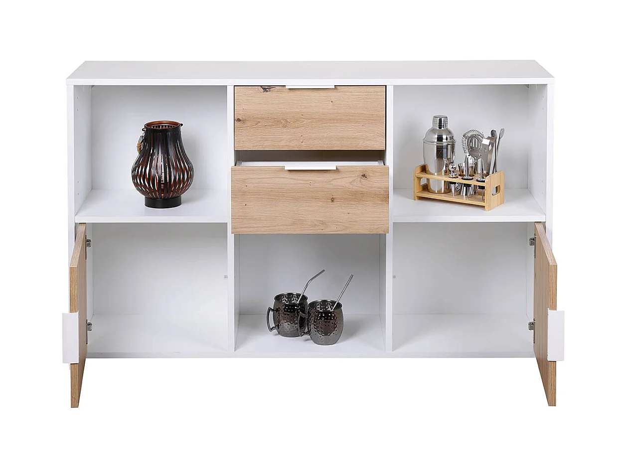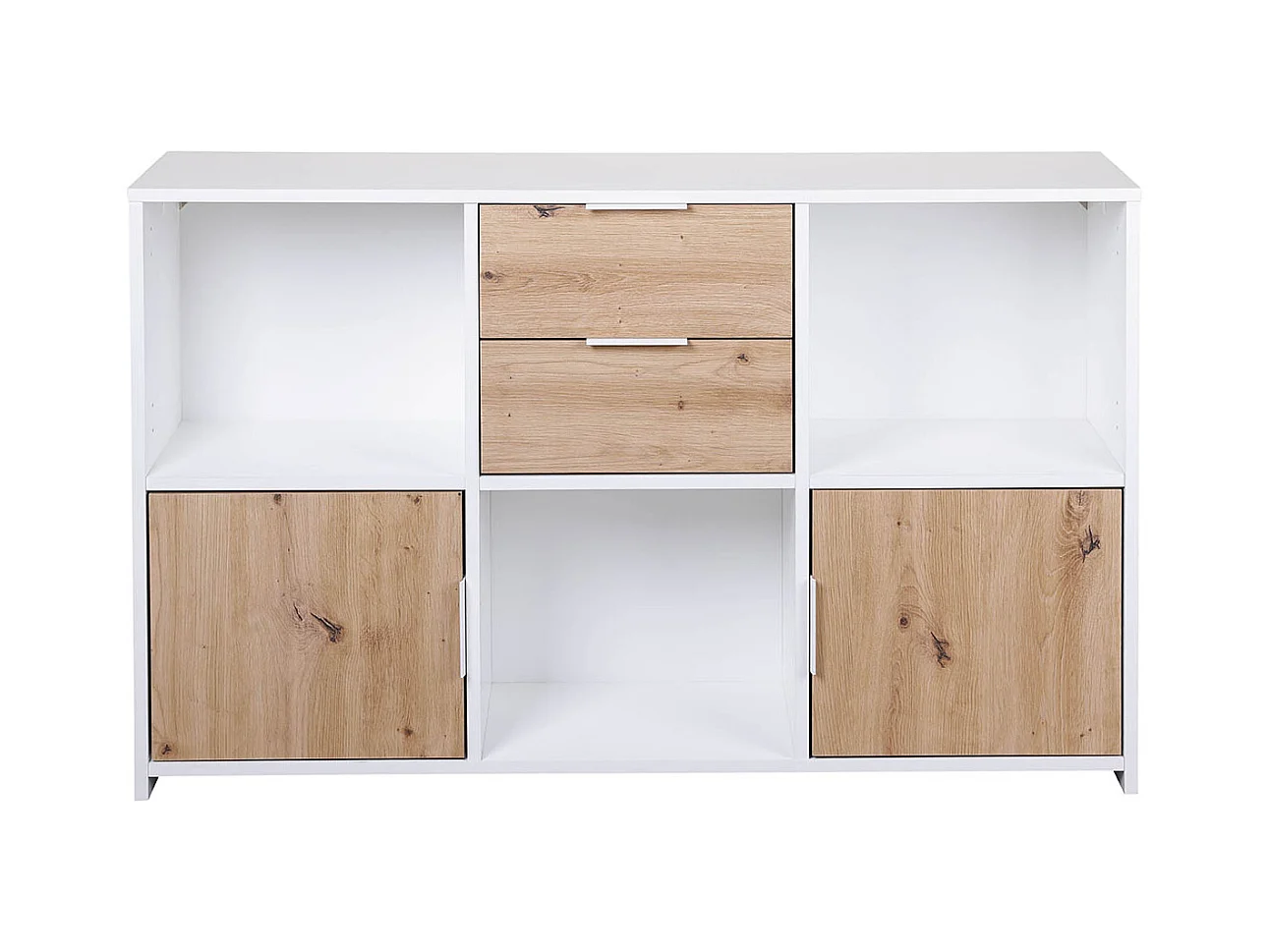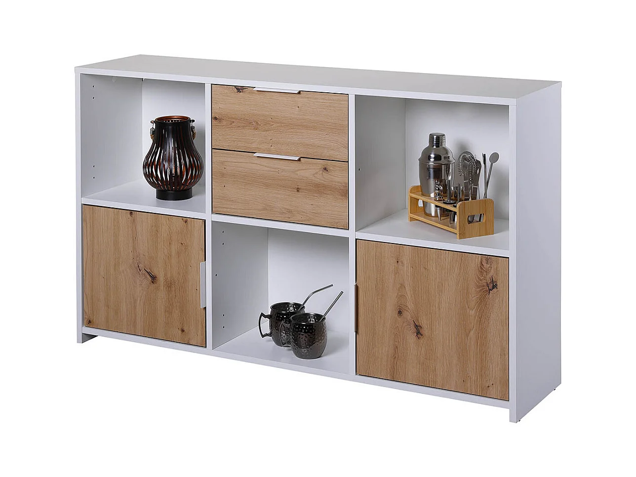Commode, meuble de rangement avec 2 portes et 2 tiroirs coloris chêne Artisan /blanc - longueur 120 x profondeur 30 x hauteur 77 cm