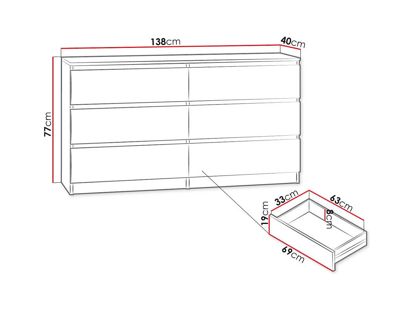 Commode Comfivo 161, Sonoma chêne, Avec tiroirs, Nombre de tiroirs: 6, 77x138x40cm