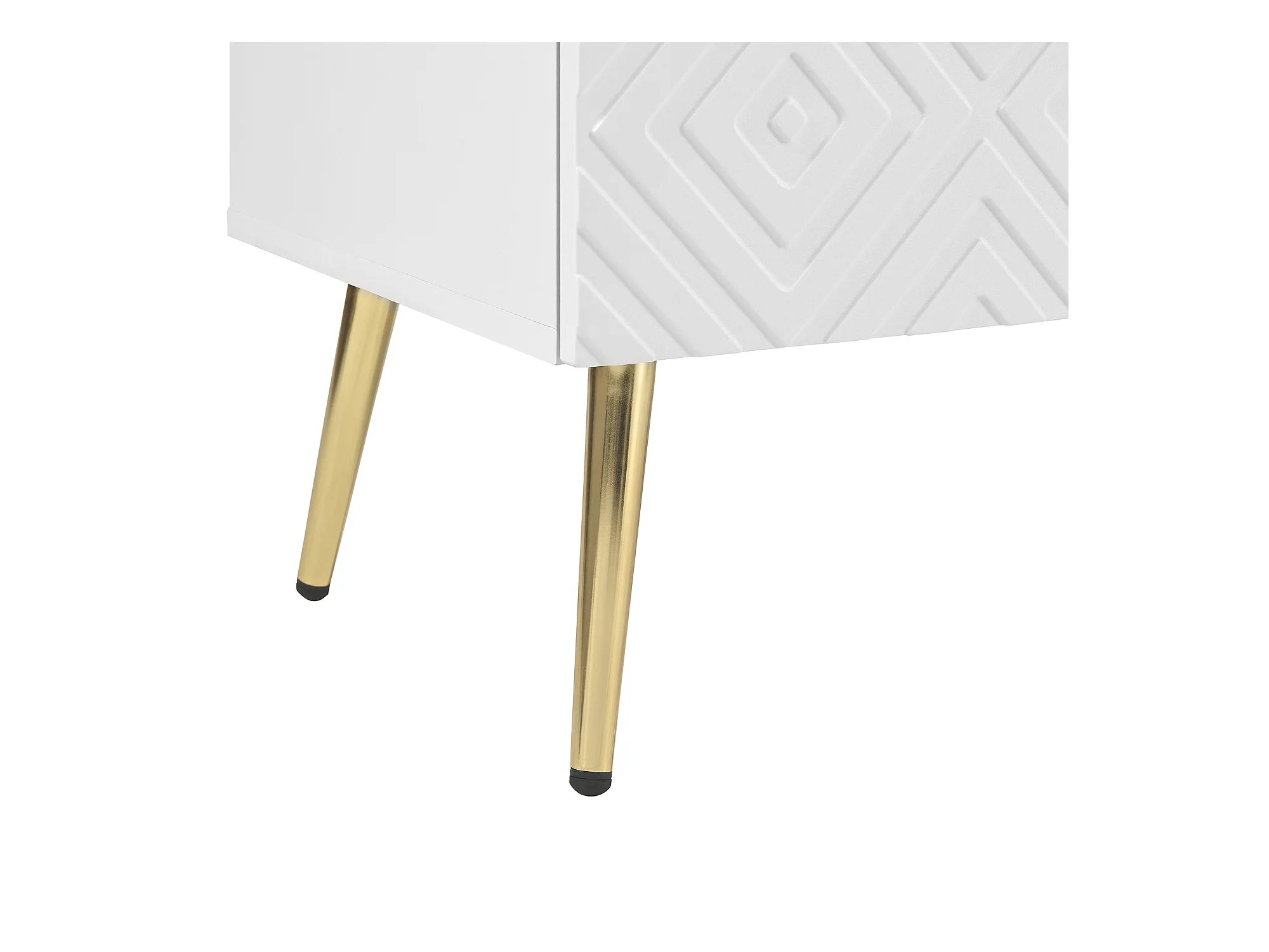 Commode avec 6 tiroirs - 120 x 44x 77 cm - Panneaux de particules et pièds en métal doré - Blanc